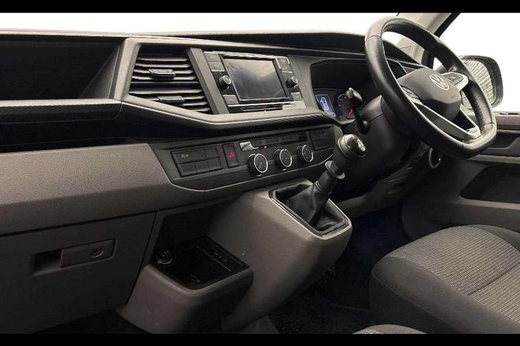 Cross wind assist, Dimmable illuminated instruments, Driver alert with Multi-function display plus, eCall emergency system, Forward collision warning front assist with autonomous emergency braking, Mobile phone interface, Multi function display plus with black and white display, 2 USB interfaces type C in dashboard, 4 speakers with 2 tweeters and 2 woofers, Composition colour radio with 6.5" touchscreen, Digital radio reception (DAB+), Volkswagen app connect, 4 stages windshield wiper intermittent control for windshield wipers, Closing rear wing door with unlatching from the inside, H7 twin halogen headlamps, Heat insulating glass (green) in cab and passenger/load compartment, Heat insulating windshield made of laminated glass, Left convex exterior mirror, Rear wing doors without window apertures, Right convex exterior mirror, Separate Daytime running lights, Transporter nameplate on the rear fender, Unpainted radiator grille with 2 chrome trims, 3 spoke leather wrapped multi function steering wheel, Comfort headliner in cab, hardboard roof trim in passenger and load compartment, Dust/pollen filter, Folding grab handles on roof frame, Front and rear left without window closed side panel in load compartment, Front seats on the right in 1st row of seat, Glove compartment without illumination, Heavy duty tool kit and jack, High partition, Interior plastic loading edge protection, LED Interior lighting in load and passenger compartment, Manual adjustable lumbar support for right single seat in 1st row seats, Standard lower part dashboard in palladium, Without breakaway interior rear view mirror, Without refrigerant, Without right side window apertures in passenger and load compartment, Non smoker pack - Transporter, 3 point height adjustable seat belts on outer seats cab with electric pretensioners, Driver and front passenger airbag with front passenger airbag deactivation, Warning buzzer and light for driver and front passenger seat belt not fastened, Without child safety lock in passenger compartment, Electronic immobiliser, Wheel bolts without wheel locks, 16" chassis with 16" brake system, Diesel particulate filter, Electronic stability control, ABS, ASR with deactivation button, hill start assist and brake assist system, Standard anti drum measures, Start/stop system with regenerative breaking,