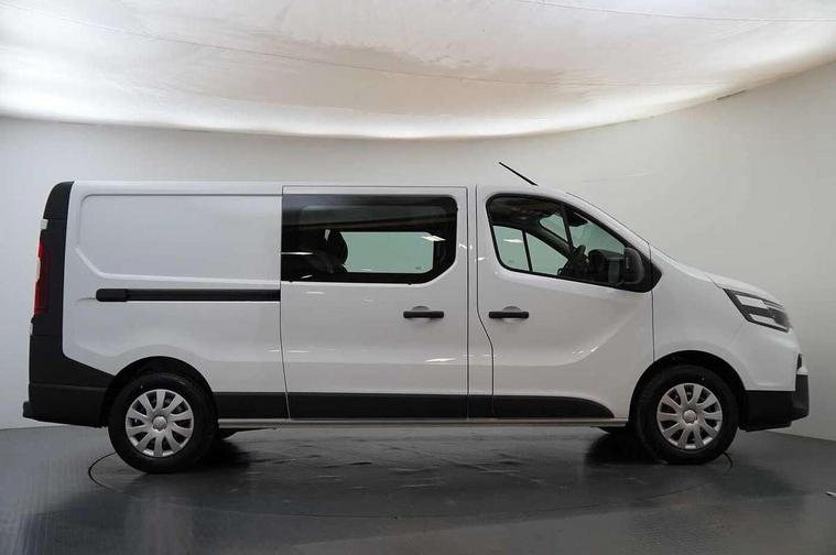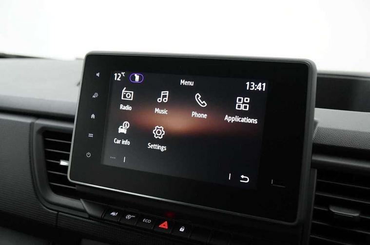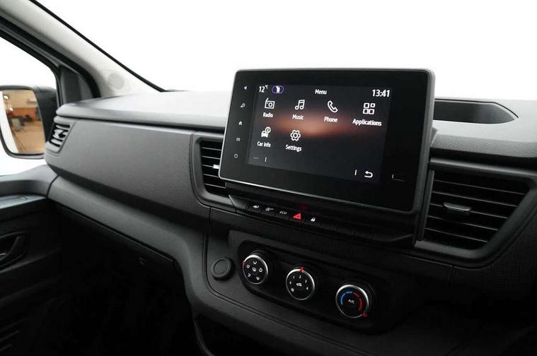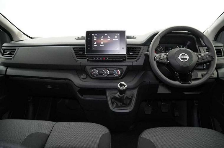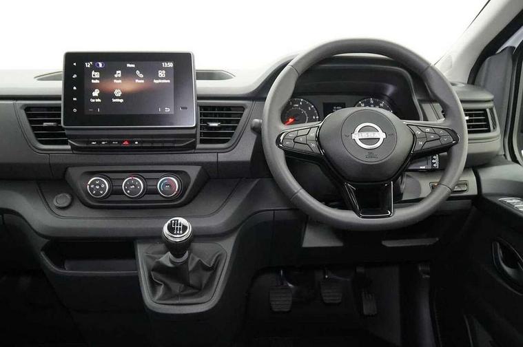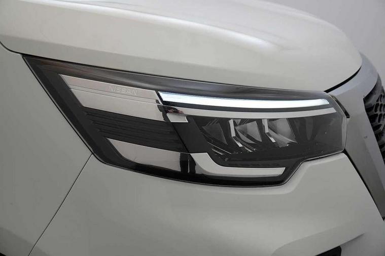 3.5" B&W TFT screen in dials dash, Bluetooth, Car phone pre installed, Driver drowsiness and attention warning, eCall, Intelligent Speed Assist (cruise control with speed limiter and traffic sign recognition), Lane departure warning system, Low fuel level warning light, Nissan connected services, PAS, Rear parking sensor, Service indicator, Trip computer, AM/FM Radio, Apple Carplay/Android Auto, Audio switch on steering wheel, Aux port, Digital radio (DAB), Media center with 8" Touchscreen at centre of dashboard and multi-touch support, USB socket, 180 degree unglazed rear french doors, Automatic headlights and wipers, Black exterior mirrors, Black rear bumper, side moulding and rear columns, Blind spot mirror in sunvisor, Body coloured half painted front bumper, Daytime running lights, Electric front windows with one touch drivers window, Electric heated door mirrors, Glazed left side sliding door, Glazed right sliding side door, LED front fog lights, LED headlights, 2nd row (3 seats), 3 x cargo floor load mounting hooks on each side, Cloth upholstery, Cupholders on dashboard, Drivers armrest, Front head restraints, Front manual AC, Glazed bulkhead, Height adjustable driver seat with lumbar support, Passenger bench with underseat storage, Steering wheel rake adjustment, Steering wheel reach adjustment, Automatic door locking (at 5mph), Driver's airbag, Passenger airbag, Tyre pressure monitoring system, 2 button key, Alcohol interlock predisposition, Deadlocks, Insurance approved immobiliser, Radio frequency remote central locking, Thatcham alarm system, 12V socket in load area, ABS + EBD, Automatic forward emergency braking system (AEBS), ESP, Hill start assist and Extended grip, 16" steel wheels, Full size spare wheel,
