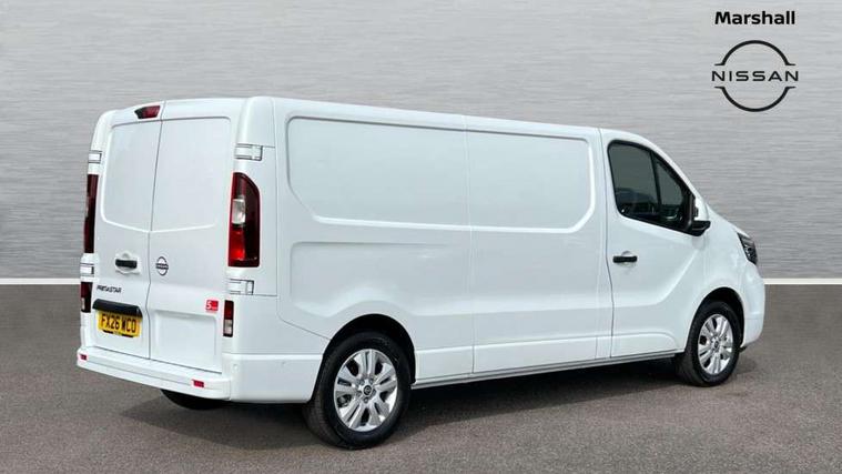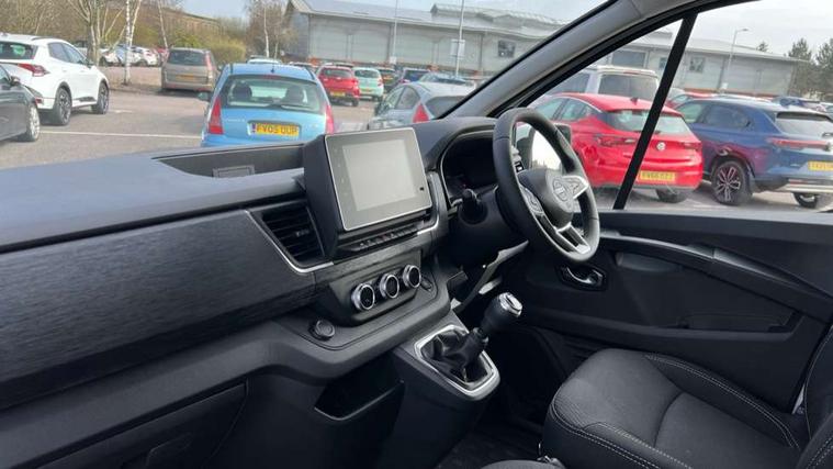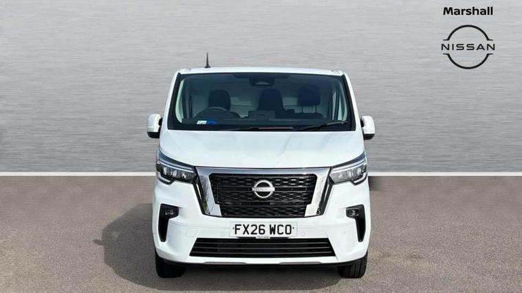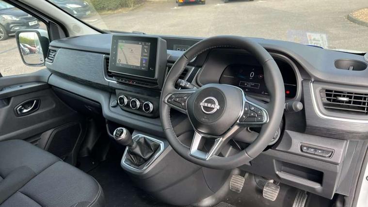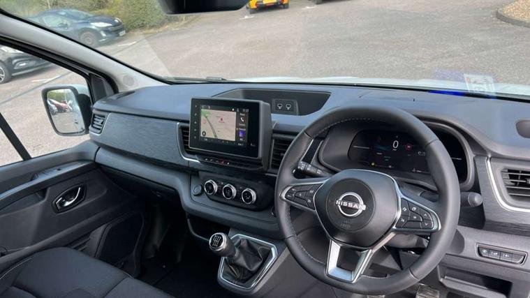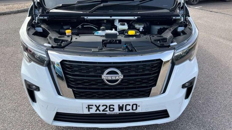 7" Colour TFT screen in dials dash, Blind Spot warning system, Bluetooth, Car phone pre installed, Driver drowsiness and attention warning, eCall, Front parking sensor, Intelligent Speed Assist (cruise control with speed limiter and traffic sign recognition), Lane departure warning system, Low fuel level warning light, Navigation system, Nissan connected services, PAS, Rear parking sensor, Rear view camera, Service indicator, Trip computer, AM/FM Radio, Apple Carplay/Android Auto, Audio switch on steering wheel, Aux port, Digital radio (DAB), Media center with 8" Touchscreen at centre of dashboard and multi-touch support, USB socket, Automatic headlights and wipers, Blind spot mirror in sunvisor, Body coloured exterior mirrors, Body coloured front and rear bumper, side mouldings and rear columns, Daytime running lights, Electric front windows with one touch drivers window, Electric heated and folding door mirrors, High low headlights beam, LED front fog lights, LED headlights, Left side sliding door, 2 x cargo load mounting hooks on each side of C and D pillars, 4 x cargo floor load mounting hooks on each side, Cloth upholstery, Cupholders on dashboard, Drivers armrest, Foldable Passenger bench with fixed table, Front automatic AC, Front head restraints, Full steel bulkhead, Height adjustable driver seat with lumbar support, Imitation leather steering wheel, Loadthrough facility in bulkhead, Passenger bench with underseat storage, Steering wheel rake adjustment, Steering wheel reach adjustment, Automatic door locking (at 5mph), Driver's airbag, Passenger airbag, Tyre pressure monitoring system, Alcohol interlock predisposition, Deadlocks, I Key, Insurance approved immobiliser, Radio frequency remote central locking, Thatcham alarm system, 12V socket in load area, ABS + EBD, Automatic forward emergency braking system (AEBS), ESP, Hill start assist and Extended grip, 17" alloy wheels, Full size spare wheel,