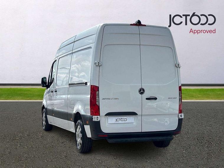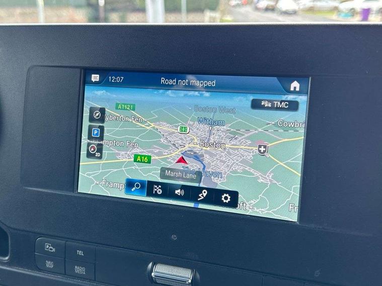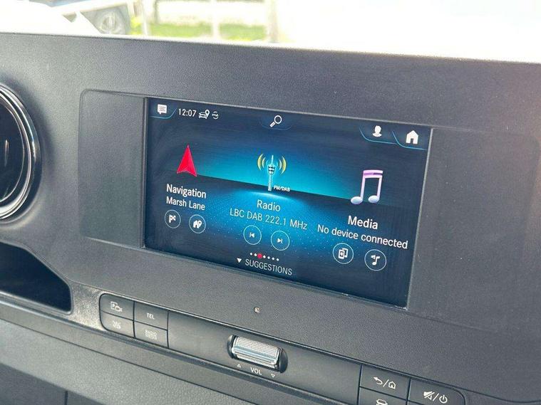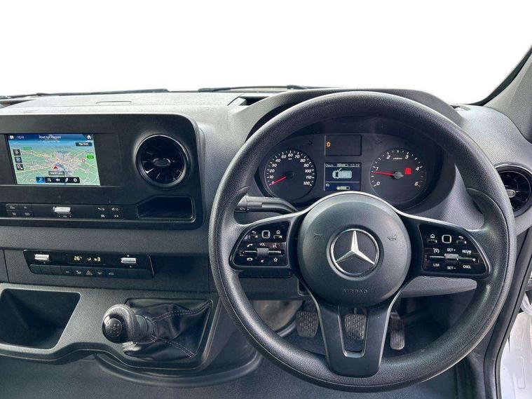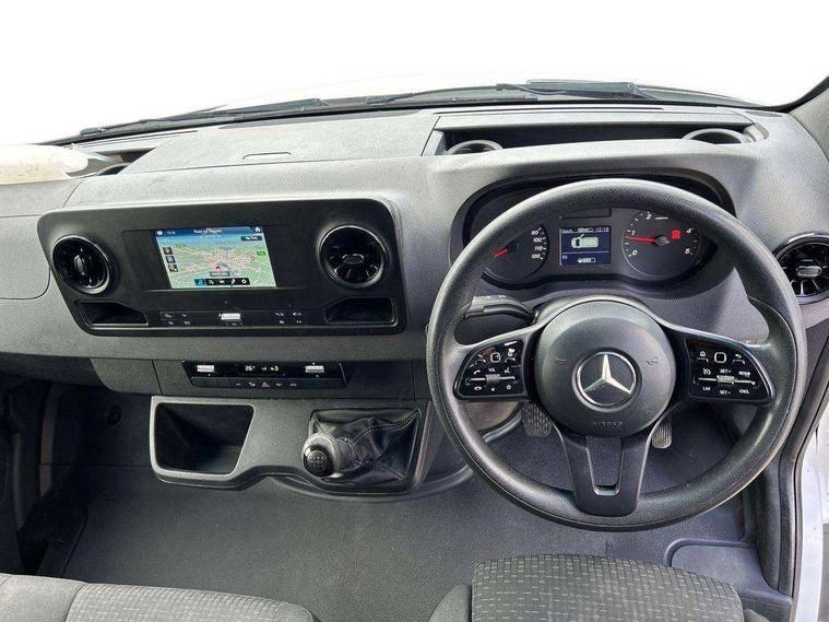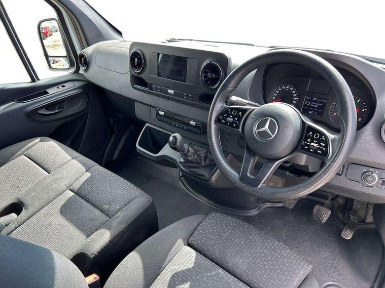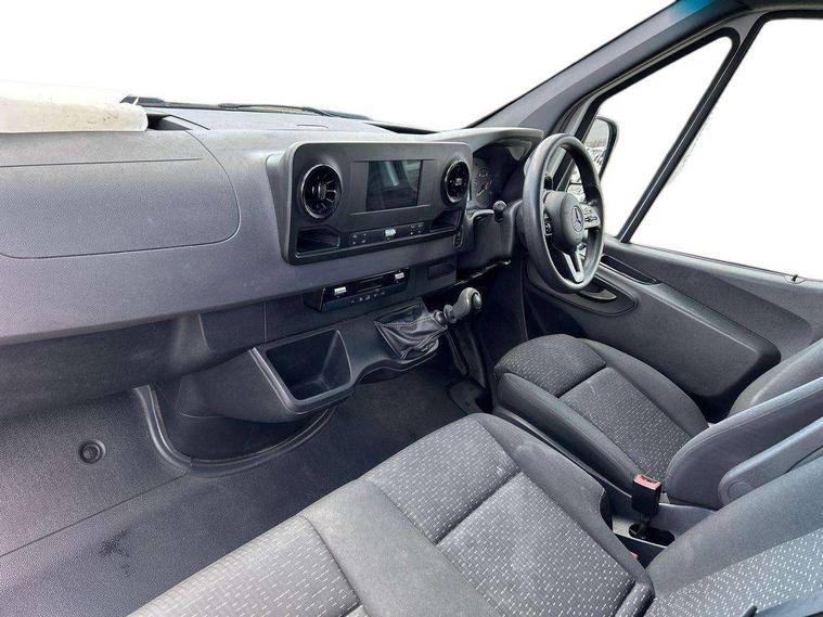 Bluetooth connectivity, Comfort overhead control panel, Communication module (LTE) for digital services, Cruise control, Outside temperature gauge, PAS, Prewiring for parameterizable special module (PSM), Rev counter, Speedometer, Terminal strip for electrical connection, Trip computer, Wifi hotspot, Additional USB-C socket, Apple Carplay/Android Auto, Digital radio (DAB), Adaptive brake lights, Electric front windows, Entrance handle on right rear corner pillar, Headlight assistant, Heat insulated windscreen with filter band, Lights for left hand traffic, Longitudinal member reinforcement, Third rear brake light, Door operated interior courtesy light, Driver's armrest, Grab handle at load compartment sliding door partition, Height and reach adjustable steering wheel, Hinged cover for centre storage compartment, Interior shelf above windscreen, Multi function steering wheel, Pre-installation for switch panel, Storage compartment under cockpit, Attention assist, Breakdown management, Crosswind assist, Driver's airbag, Jack, Mercedes-Benz emergency call system, Seat belt warning for driver's seat, Anti-theft alarm system, Double locking, Keyless start, VIN visible from outside, 6 speed manual transmission, ABS, Active brake assist, Adaptive ESP, Alternator - 14 V / 230A, ASR traction control, EBD, ECO Start/stop function, Front axle with increased load capacity, Fuel filter with water separator, Hill start assist, Jump start contact, Particulate filter (DPF), 225/65 R16 Tyres, Full wheel covers, Resistance-optimised tyres, Spare wheel bracket below frame end,