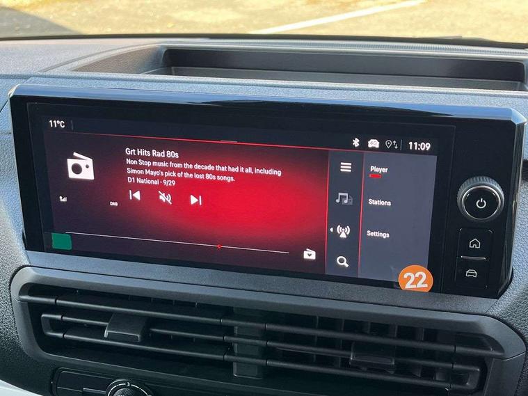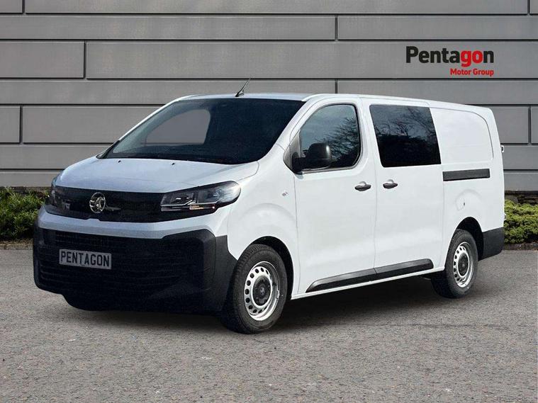 10" digital instrumental cluster, Central fascia display with digital clock, outside air temperature and audio information, Connectivity via BTA with RCA, Driver Attention Alert, level - 3, e-Call and b-Call, Electronic power steering (EPS), Energy absorbing steering column, Forward collision alert, Intelligent Speed Assist, Lane keeping assist, Mobile phone portal - Bluetooth, Vehicle microphone, Phone book access, Smartphone interface with Apple carplay/Android Auto, Multi-function trip computer, Rear parking distance sensor, TPMS (Tyre pressure monitoring system), Vauxhall connect, Audio controls mounted on steering wheel, Flexible short antenna (200mm), Multimedia pro audio system includes Radio AM/FM/DAB, 10" touchscreen with mirror screen(WI-FI), 4G connectivity, Voice control and USB connection, Two speakers and two tweeters, 2nd row glazed with dark tinted acoustic fixed left and right side windows, Automatic headlamps on/off, Black door handles, Black front and rear bumpers, Black side protection mouldings, Black sliding door rail cover, Electrically adjustable + heated door mirrors, Familial vizor, Front electric windows with one touch facility, Glazed nearside and offside sliding side access door, Halogen headlamp with integrated daytime running lights, High beam assist, Laminated acoustic windscreen, Lockable fuel filler cap, Rain sensitive windscreen wipers, Twin solid rear doors, 12V socket in lower glove box (1 only in cabin), 2x USB socket in B-pillar, Air recirculation facility, Chilled glovebox facility, Curitiba cloth upholstery, Driver's seat armrest, Ergonomic 6-way adjustable driver's seat with reach, rake, height and lumbar adjustment, Fixed floor mounted load restraint lashing eyes x6, Full height ABS plastic bulkhead with window, Heated driver's seat with controls on seat, Interior roof trim, Manual air conditioning, Overhead console with 1 ceiling lamp (dome type and 3 lamps), Reach and rake adjustable steering wheel, Removable storage compartment under left and center seats with area for long payload under right seat, Roof grab handles in Row 1, Three individual contoured rear seats with adjustable headrest and 2 armrest, TPO plastic floor in 1st row and painted sheet metal in 2nd row, USB socket in cabin (dashboard), Automatic fuel cut-off and door unlocking in event of accident, Driver and front passenger airbags, Driver and front passengers curtain and side impact airbags, Height adjustable lap and diagonal inertia reel front seatbelts, Passenger airbag deactivation manually, Dashboard mounted central locking push button and auto locking above 7mph, Immobiliser, Remote control central locking and deadlocking, Selective door locking, Two keys with integral remote, 22.5 litres AdBlue tank, 70L fuel tank, ABS, Advanced emergency braking system (AEBS), EBA, Electronic brake force distribution (EBFD), ESC, ESP, Floor mounted handbrake lever, Hill start assist, Manual parking brake, Traction control, Mistral black dashboard trim with liquid paladium decor strip in mid-section, Michelin Agilis 2 tyres - 215/65 R16C,