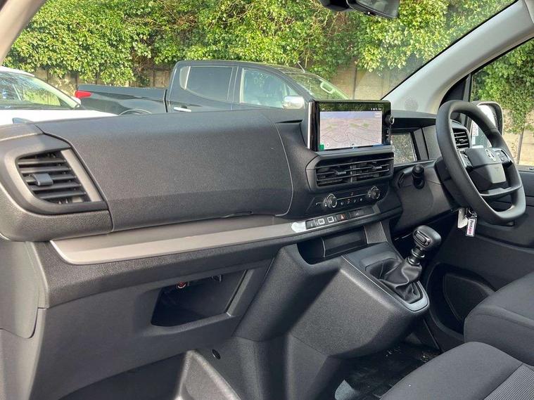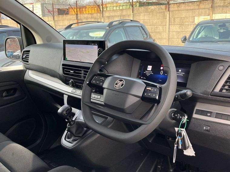 10" digital instrumental cluster, Central fascia display with digital clock, outside air temperature and audio information, Connectivity via BTA with RCE, Cruise control and speed limiter, Driver Attention Alert, level - 4 (Incl driver weariness camera), e-Call and b-Call, Electronic power steering (EPS), Energy absorbing steering column, External temperature sensor, Forward collision alert, Intelligent Speed Assist, Lane keeping assist, Mobile phone portal - Bluetooth, Vehicle microphone, Phone book access, Smartphone interface with Apple carplay/Android Auto, Multi-function trip computer, Multimedia pro nav system with AM/FM/DAB radio, 10" HD touchscreen with wireless mirror screen, 4G connectivity, Voice control and USB connection, Rear parking distance sensor, TPMS (Tyre pressure monitoring system), Vauxhall connect, Audio controls mounted on steering wheel, Flexible multi-functional short antenna (200mm), Two speakers and two tweeters, Automatic headlamps on/off, Automatic two speed and intermittent front wipers, Body colour door handles, Body colour side protection mouldings, Body colour side sliding door rail cover, Body coloured front bumper, Body coloured rear corner bumper with black centre section, Eco LED headlamps with integrated daytime running lights, Electrically adjustable + heated door mirrors, Familial vizor, Flexible roof mounted aerial, Front electric windows with one touch facility, Front windows tinted to 30 percentage opacity, High beam assist, High level third brake light, Laminated acoustic windscreen, Lockable fuel filler cap, Offside and nearside sliding side access doors, Painted decor strips, Painted exterior rear view mirror cover, Rain sensitive windscreen wipers, Rear fog lights, Twin solid rear doors, Twin unglazed rear doors opening to 180 degree, Visible VIN at windscreen base, 12V socket in lower glove box (1 only in cabin), Air recirculation facility, Closed upper and open lower glove boxes, Cup holders for driver and passenger at top of dashboard, Curitiba cloth upholstery, Dashboard storage areas, Driver's seat armrest, Dual front passenger bench seat with under seat storage tray, Ergonomic 6-way adjustable driver's seat with reach, rake, height and lumbar adjustment, Fixed floor mounted load restraint lashing eyes x8, FlexCargo load through bulkhead, Fold flat centre seat backrest with table, Front door pockets with 1.5L bottle holder, Hard plastic floor protection in cabin, Height adjustable front headrests, Manual air conditioning, Overhead console with 1 ceiling lamp (dome type and 3 lamps), Reach and rake adjustable steering wheel, Roof trim in cabin (1st Row), Two-way foldable outer seat, USB socket in cabin (dashboard), City pack with dynamic surround view - Vivaro, Automatic unlocking system in case of crash, Door opening warning and audible lights on warning, Driver and front passenger airbags, Height adjustable 3-point pre-tensioner seatbelts with force limiter, Passenger airbag deactivation manually, Unfastened seat belt warning for driver and passengers, Dashboard mounted central locking push button and auto locking above 7mph, Engine deadlock immobiliser, Perimetric and volumetric, Thatcham category 1 approved alarm, Remote control central locking and deadlocking, Selective cabin and cargo area locking via 3-button plip remote control key (x2), Selective door locking, Two keys with integral remote, 19 litres AdBlue tank, 70L fuel tank, ABS, Advanced emergency braking system (AEBS), EBA, Electric parking brake, Electronic brake force distribution (EBFD), ESC, ESP, Floor mounted handbrake lever, Hill start assist, Traction control, Mistral black dashboard trim with liquid paladium decor strip in mid-section, Michelin Agilis tyres - 215/60 R17C,