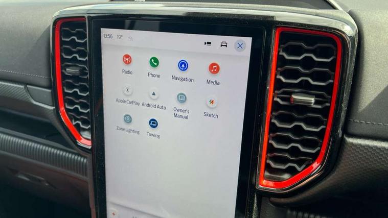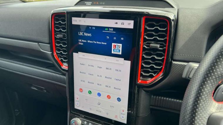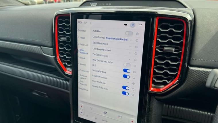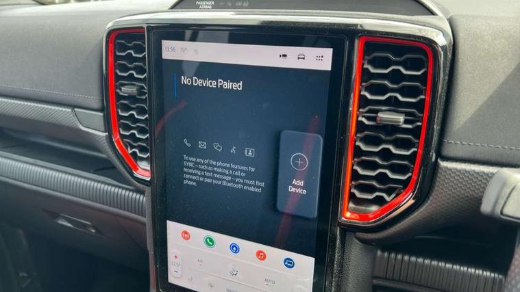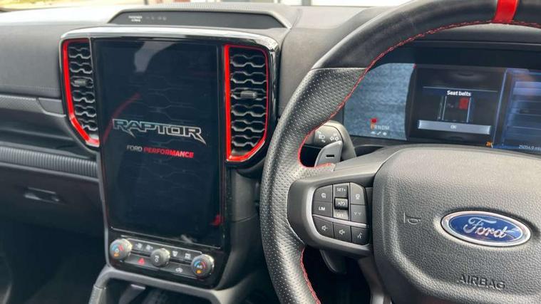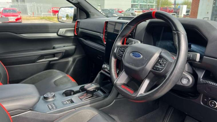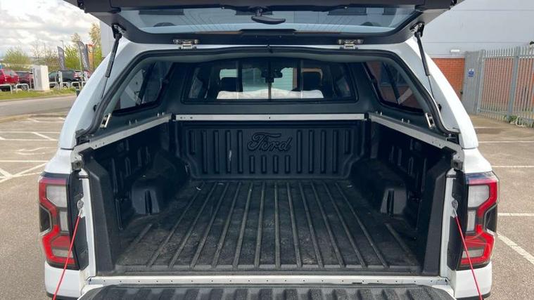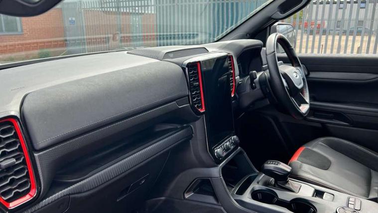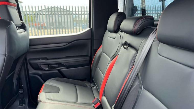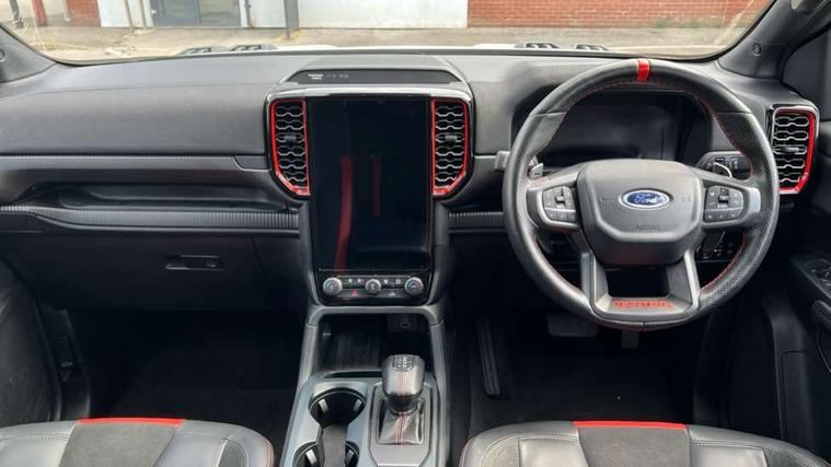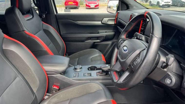 A-pillar assist handle, Electric power assisted steering, Electronic automatic gearshift, Full TFT/LCD instrument cluster, Passenger side roof mounted grab handle, Pro trailer backup assist, Wireless charging pad, 360 lighting, Accent colour HD front bumper, Acoustic laminated windscreen, Assisted conventional tailgate, Automatic headlamp levelling, Automatic headlights, Black front fender grille, Black grille, Body colour exterior mirrors, Body coloured door handles, Cast alloy side step, Daytime running lights, Dual power heated fold back door mirror with puddle lamps, E-marked glass, Electric rear window defroster, Electric windshield defroster, Electrochromic interior mirror, Extra large wheelarch flares, Fog lamp bezel, Front splash guard, Front towing hooks, Fuel tank guard, High mounted stop lamp, LED Front fog lamp, Level 3 Taillamps, Manual liftgate, Metal underbody protection, Non locking capless fuel fill, Power front windows with one touch up/down, Power rear windows, Privacy glass, Rain sensitive windshield wipers, Rear bumper step accent color, Rear fog lamps, Rear splash guard, Rear towing hooks, Self coloured decklid handles, Tempered glass front window, Under hood engine cover, 12v socket in bedliner, Cargo light, Console with double lid, Driver and passenger sunvisor with mirror, Dual control system - Electronic air temperature control (EATC), Fresh air heater, Front premium floor mats, Heated steering wheel, High series air register, LED ambient interior lighting, Load box edge protectors, Locking glove box lid, Non woven carpet, Overhead console with dome lamps, Pollen filter, Pull out cup holder, Radio noise supression, Rear floor ducts, Roof storage for driver sunglasses, Steering wheel with multimedia controls, Super matte leather upholstery, Tie down hooks, Washer tank level warn lamp, Front seat pack 9 - Ranger, Functional upgrade pack 3 - Ranger, Heavy duty terrain pack - Ranger, ICE feature pack 106 - Ranger, Interior trim pack 15 - Ranger, Rear seat pack 15 - Ranger, Wheel pack 19 - Ranger, Breakdown warning triangle, Child proof rear door locks, Driver and passenger airbag, Dual note electric horn, 2 Remote control unit - key fob, Power door dead locks, Stolen vehicle recovery system, Tailgate lock, Thatcham alarm system, Thatcham security system, 400W Power inverter, ABS/ESP brakes with electronic brake boost, Battery management system, Cabin socket and loadbox socket, Electric parking brake, Electrical outlet 3, Engine start/stop system, Front and rear disc brakes, Locking front axle, Locking rear axle, Performance suspension, Rear power point plug, 17" alloy wheels painted in precision grey and all terrain tyres with Ford carbon black centre cap, 17" Aluminium spare wheel, Spare tire lock,