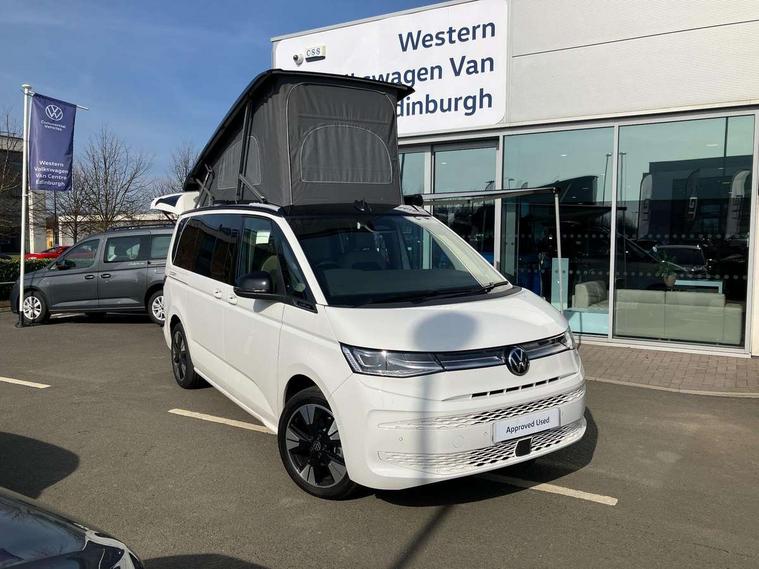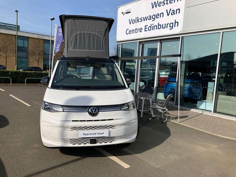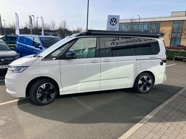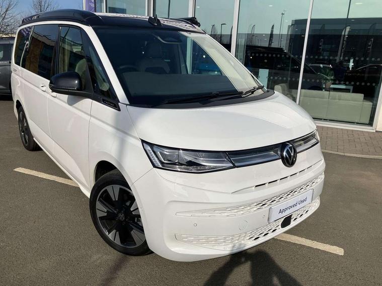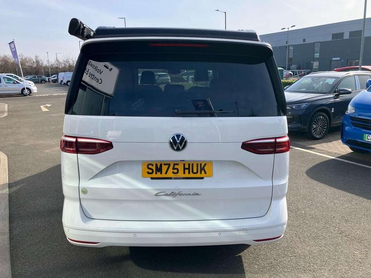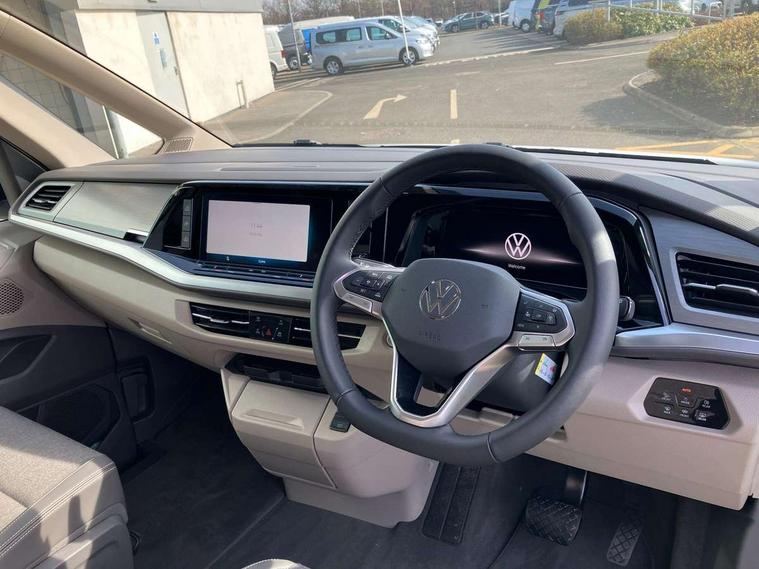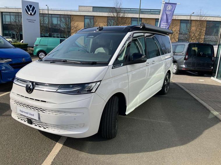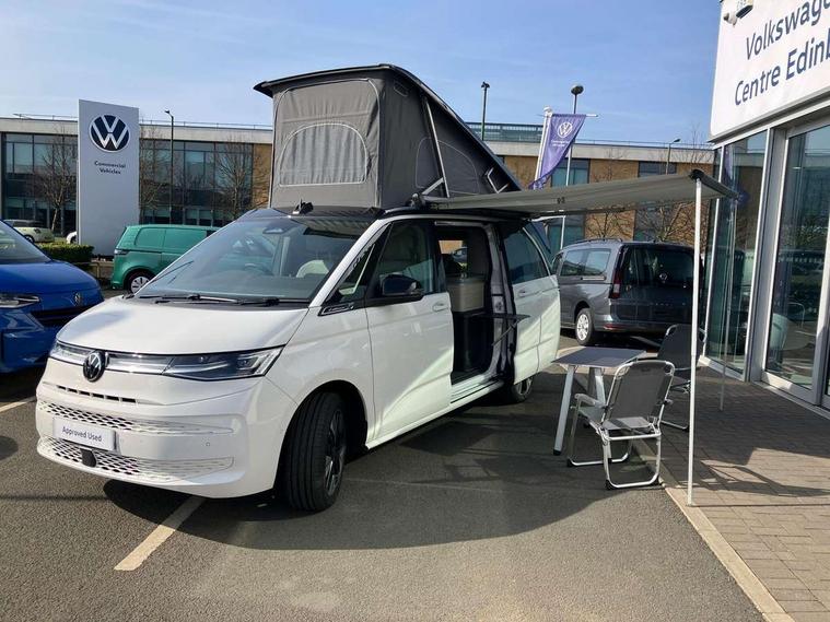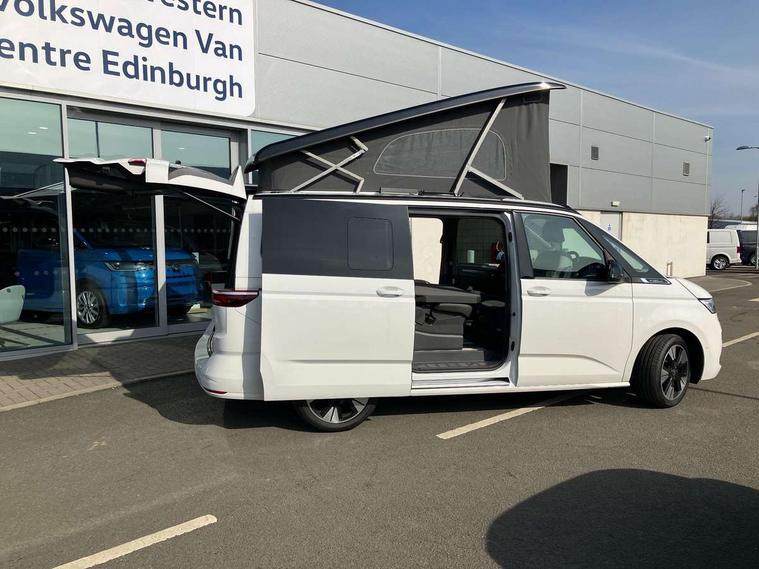 Advanced driver attention and drowsiness monitor, California on tour app, Digital cockpit pro, Discover Pro Navigation system, Driving profile selection, Dynamic road sign display, eCall emergency system, Emergency assist, Front cross traffic assist, Function control unit, IDA voice assistant and voice enhancer, Lane keeping system Lane Assist, Mobile phone interface, Motorhome Registration, Multifunction camera, PAS, Preparation for online services, Preparation for We connect and We connect plus, Servotronic speed sensitive power steering, Speed limiter and predicative speed limiter, Tailgate latching without unlatching function from inside, Tailgate with window aperture and with power latching, Travel assist, Turn assist with evasive assistance, Volkswagen wired and wireless app connect, Alternator 180A, 2nd and 3rd auxiliary batteries with low -voltage converter, Battery 380 A (68 Ah), Battery without capacity specification, Standard battery/generator, Standard suspension and shock absorption, 10.4 inch infotainment system with scalable module options, 2 USB-C ports at the front, 4 USB-C charging sockets in the passenger compartment, 8 Speakers, Digital radio reception (DAB), Dynamic headlight range control, Electro hydraulic elevating roof, with three windows including one front passengers panorama opening, canvas in Basalt Grey, Four speed control for windscreen wipers, Gloss black grille with 2 illuminated chrome trim, Heat and sound insulating laminated safety glass windshield, Heated windscreen, High gloss black door mirrors, Illuminated molding between headlamps, LED 3rd brake light, Nameplate set California, Poor weather light including cornering light, Rear boot, Red LED tail lights, Sliding window in front with fly screen in passenger compartment left/right & including privacy glass in rear, Windscreen wiper intermittent control, 2 single seats with integrated seatbelt and sleeping mat, 230V external inlet with charging feature for vehicle batteries, 230V inverter with socket on driver seat, Additional interior noise attenuation, Ambient interior lighting, Armrest on front swivel seats in both sides with electric lumbar support, Camper parking heater for continuous operation & parking heater for windshield defrosting with radio remote control, Darkening roller blinds and thermo mats, Drawers under the outer seats in the cab and passenger compartment & 2 waste bins, Front and rear headrests, Heated front seats, Heated steering wheel, Kitchen with outdoor folding table for cooking and roof storage box in décor 2, Lockable glove compartment with lighting, Luggage compartment with power latching, Multifunction leather steering wheel with paddle shifters, Reinforced plastic floor covering in wood look, Single front passenger seat, Storage compartment left and right 1st row of seats, Summer kitchen with outside folding table and 230-V outlet for cooking and roof storage box, Surround lighting in door area, Swivel seat on left with height adjustable including drawer, Swivel seat on right with height adjustable including drawer, Velour floor mats in cab, Without loading edge protection, Without luggage compartment cover, Advanced assistance pack - California, Top package - California, 2x3 point automatic seatbelts at the rear outside with ECE label, with/without belt tensioner, Autonomous emergency braking, Child locks, Driver and front passenger airbags with front passenger airbag deactivation button, First aid kit with warning triangle and safety vest, Front Assist with pedestrian and cyclist detection, Front disc brakes, Height adjustable three point automatic seatbelts at front with belt and end fitting tensioners, Occupants detection only display, Side and curtain airbags for driver and front passenger, curtain airbags for outer seats in rear, centre airbag in front, Swerve support and oncoming vehicle braking when turning, Tyre pressure loss indicator, Warning signal and warning lamp for front and rear seat belts not fastened, Anti theft alarm system with interior monitoring in cab, backup horn and towing protection, Central locking + keyless locking and starting system Keyless Advanced with safe lock, Lockable wheel bolts, Preparation for alcohol interlock, 5+ Promise service plan, Dark silver brushed decorative inlays, 235/50 R18 tyres with low rolling resistance, Tool kit, Trims for alloy wheels, Tyre mobility kit, Without spare wheel,