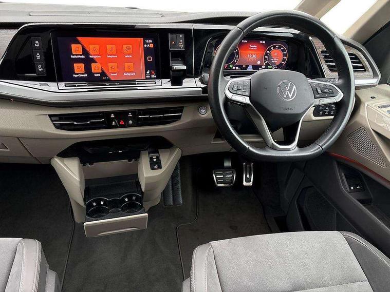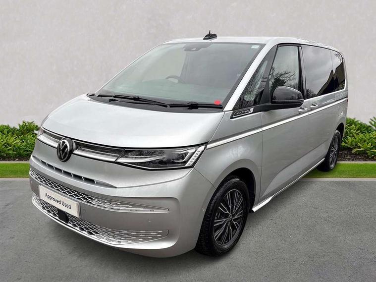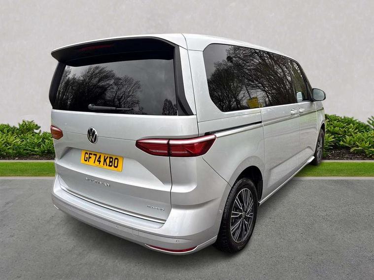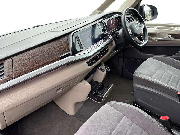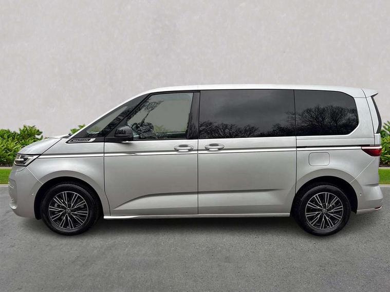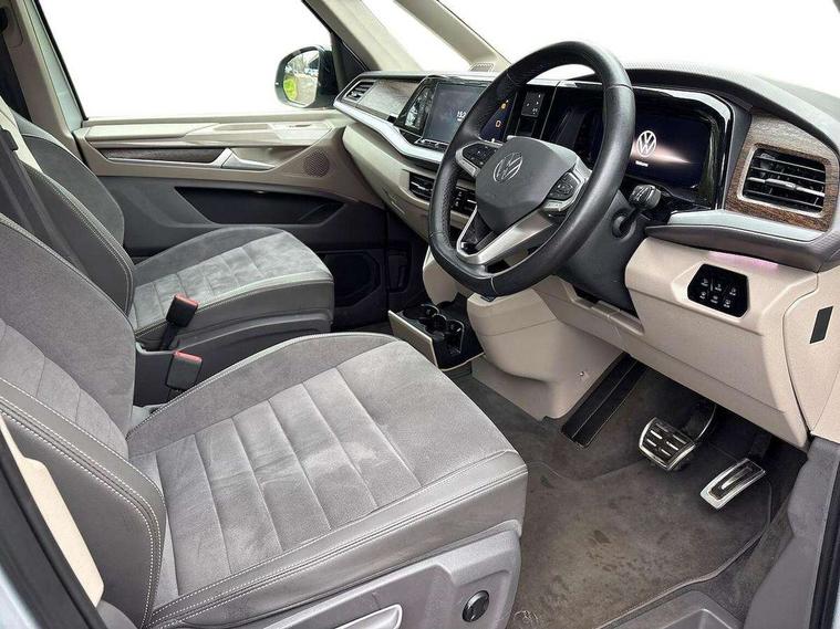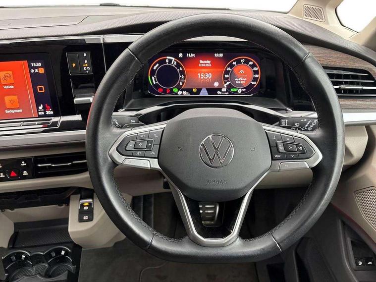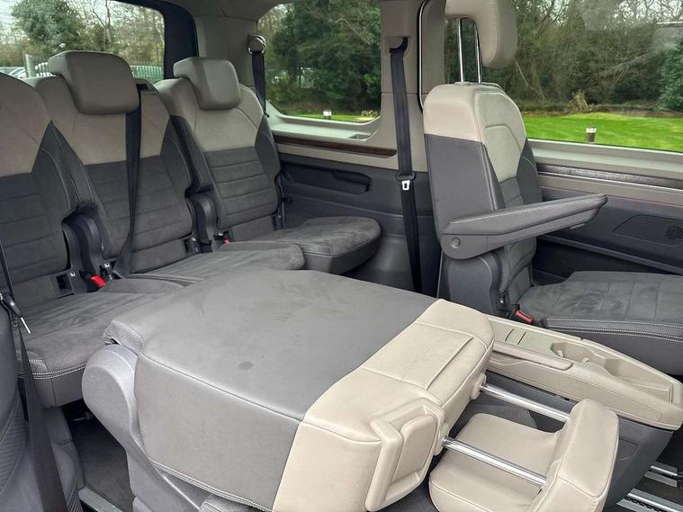 Adaptive cruise control with C2X including front assist and city emergency braking system, App-Connect incl. App-Connect Wireless for Apple CarPlay and Android Auto, Digital Cockpit Pro with 10.25" Display, Driver alert system, Dynamic road sign display, eCall emergency system, Electric tailgate with virtual pedal, Electrically-operated tailgate opening and closing function (Easy open), operated via foot movement under rear tailgate, Emergency assist, Lane change system with side assist including blind spot monitor, rear traffic alert and exit warning system, Lane keeping system Lane Assist, Mobile phone interface, PAS, Rear view camera, Semi-automated driving assistance, Socket AC Type 2, Tailgate, Travel assist, Voice control system including Alexa web app, We connect preparation, 1 x 6 metre charging cables - 16amp AC cable for wallbox chargepoints (mode 3), Electronic differential lock, 2 USB-C ports in front and 4 USB-C ports in passenger compartment, Digital radio reception (DAB+), Additional interior noise reduction measures, Advanced high beam control dynamic light assist for LED matrix headlamps, Automatic headlight control with welcome home lights, Body coloured exterior door handles, Break away auto dimming rear view interior mirror, Dynamic headlight range control with dynamic cornering light, Electric sliding rear side door on the left/right with easy open feature, Electrically adjustable, heated and folding door mirrors, Front fog lights, Glossy black painted radiator grille with 2 illuminated chrome trims, Heated rear window with window wiper and washer system, Heated windscreen, High gloss black exterior mirror housing, IQ.Light LED matrix headlamps with LED separate daytime running light, Laminated safety glass windshield, heat and sound insulating, LED 3rd brake lamp, LED rear combination lamps, Rear wiper, Stainless steel tailgate trim, Surround lighting in door area and tailgate with logo projection in door area, Windshield wiper intermittent control with rain sensor, 1 x 12V sockets on the dash panel, 12V socket in passenger compartment, 3 seat bench in 3rd row, 30 colours ambient interior lighting and tailgate surround lighting, 7 single seats removable/movable, Carpet mats in cab, Climatronic 3 zone air conditioning with 2nd evaporator, auxiliary heater, air conditioned headliner and additional passenger control, Front and rear head restraints, Grab handles on A pillar for access, on driver and front passenger side, Heated steering wheel, Height adjustable seats, Height and longitudinal adjustment steering wheel with gear shift paddles, Illumination lockable glovebox compartment, ISOFIX (including i-size) and top tether in all seats in 2nd and 3rd rows, LED luggage compartment lighting X 2, Load compartment partition to 20kg with bag hooks and luggage net, Luggage compartment lid power latching with unlatching from inside, Multifunction leather steering wheel with tiptronic, Reinforced carpet floor covering in passenger compartment, Removable armrests for front seats with power adjustable lumbar support and folding table for 2nd row passenger seats, Removable armrests in 2nd row passenger seats, Single front passenger seat, Stainless steel pedals, Storage compartment under the 2nd and 3rd row seat and two waste bins, Sun visors with illuminated vanity mirrors and airbag warning label on front passenger sun visors, 3x3 point rear seat belts, ABS, Automatic post collision braking system, Autonomous emergency braking front assist with pedestrian and cyclist monitoring, Driver and front passenger airbag with front passenger airbag deactivation, Electric childproof lock, Electronic stability control (ESC) and Electromechanical brake booster, ESP, First aid kit with warning triangle and safety vest, Front disc brakes, Hill hold assist, Seat belt warning for the drivers and all passengers seats if unfastened, Side and curtain airbags for driver and front passenger, curtain airbags for outer seats in rear, centre airbag in front, Single tone horn, Traction control, Tyre pressure monitoring system, Anti theft alarm system with interior monitoring in cab, backup horn and towing protection, Central locking system keyless entry with touch two stage unlocking, Start/stop button on centre console, Dark woodgrain optic decorative inserts,