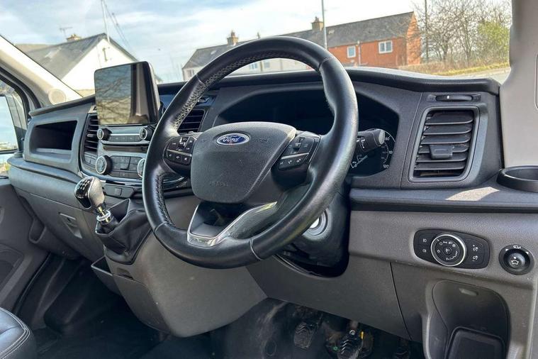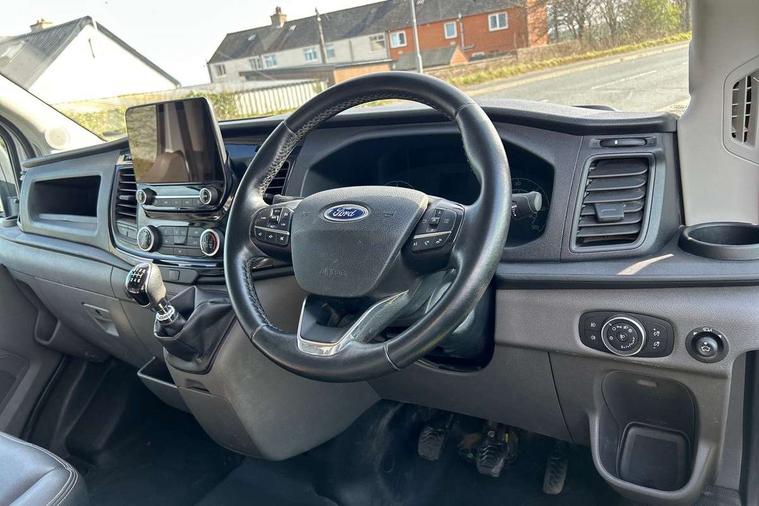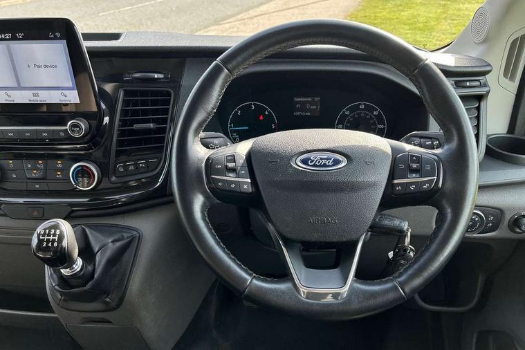 Bluetooth, Curvature Control, Emergency brake warning, PAS, Selectable drive mode, Vehicle maintenance monitor, Warning lights, Audio controls mounted on steering wheel, Automatic lights and wipers, Contrast cladding, FORD grille, Heated windscreen, High mounted stop lamp, Kerbside side load doors, Medium roof line, Power windows, Quickclear windscreen - electric windshield defroster, Rear bumper with integral step, Rear mudflaps, Rear splash guards, Trail badging, Wide bodyside mouldings, Glovebox with A4 file storage, Lockable glove box, Radio with remote stalks, Reach and rake adjustable steering column, Storage box under dual passenger seat, Seatbelt reminder on front seats and fixed rear seats, 2nd remote key, 2 x 12V power outlets, ABS + ESP + Hill start assist, Electronic dynamic cornering control, Extra heavy duty alternator, Mechanical limited slip differential, Side wind mitigation, 16" 10 spoke black alloy wheels, Ful wheel covers, Single rear wheels, Tyre repair kit,