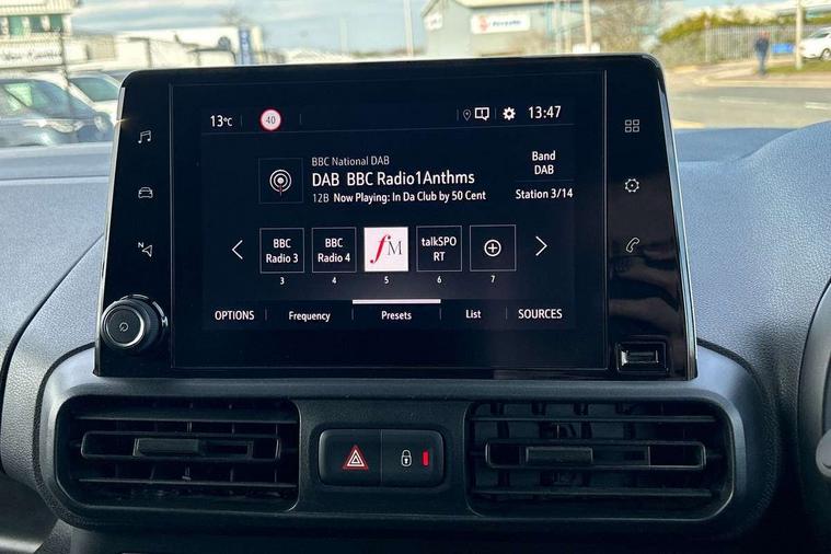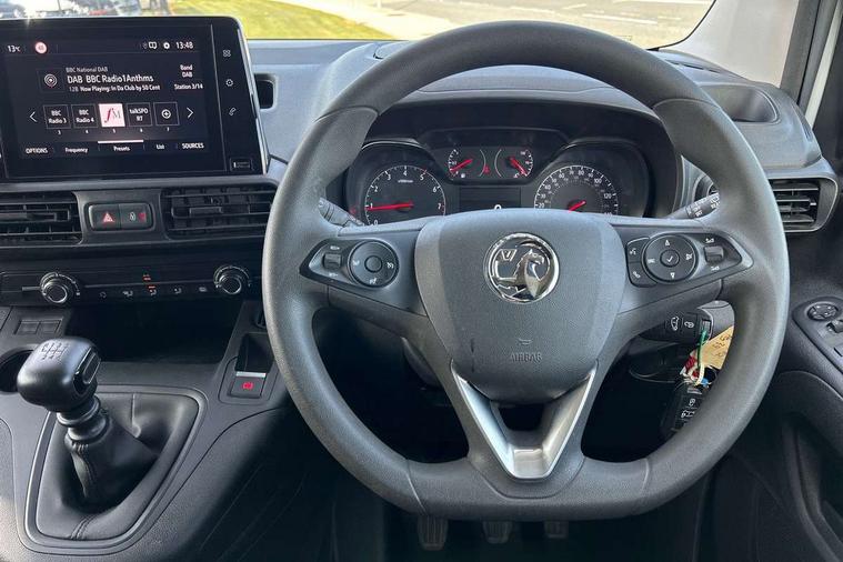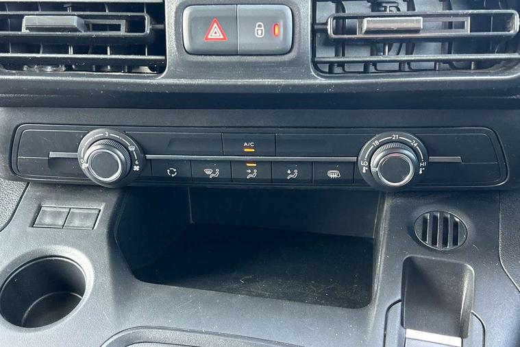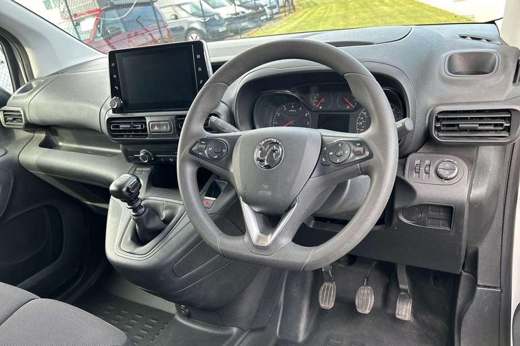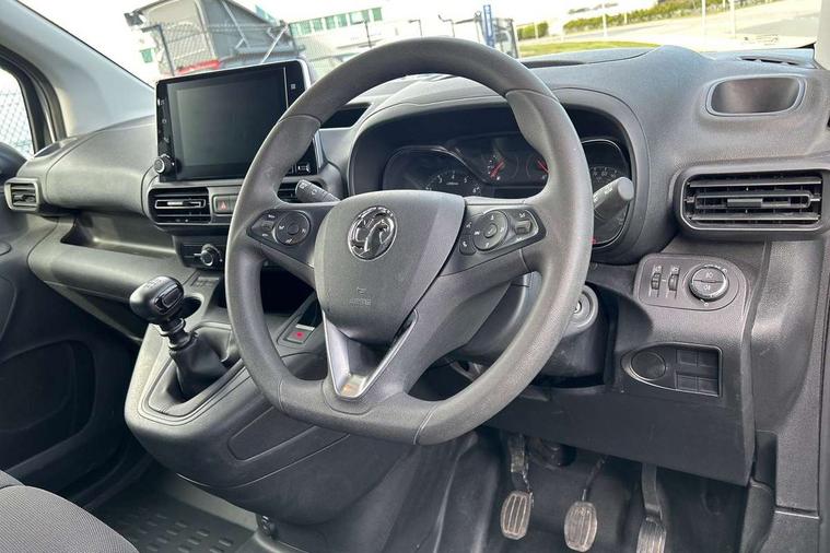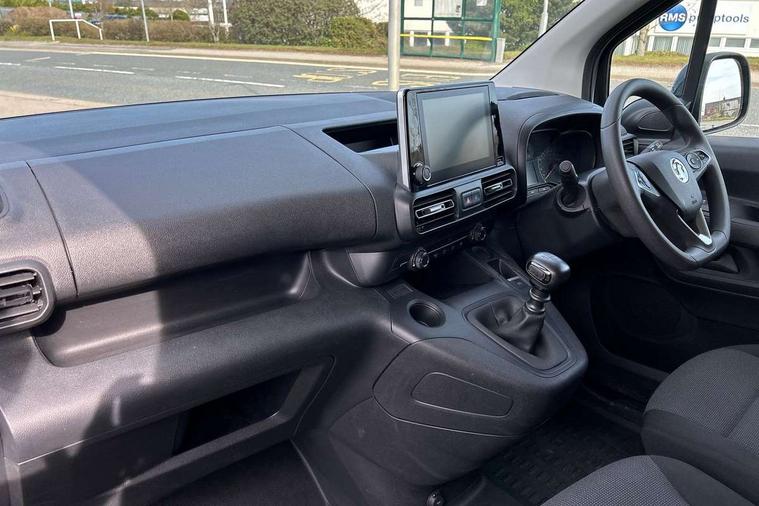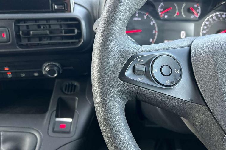 Central facia display with audio information, digital clock, outside temperature with ice warning and additional features about infotainment system, Centrally located instrument cluster with service due indicator and trip computer data, Cruise control with speed limiters, Gearshift indicator light, Instrumentation Speedometer, rev counter, fuel gauge with low fuel warning light and water temperature gauge warning light, Lights on audible warning, Multi-function trip computer with trip mileage, vehicle range, average speed, average and instantaneous fuel economy, Rear view camera, Speed sensitive electric power assisted system, Steering wheel mounted audio controls, Black door handles, Black door mirrors, Body colour front and rear bumpers, Daytime running lights, Dipping rear view mirror, Hazard warning lights, Magic wash system, Manual headlight beam levelling, Offside and nearside sliding side access doors, Rear fog lights, Reversing lights, Side protection moulding, Solar heat absorbing windscreen, Tinted windows, Twin electrically adjustable, heated door mirrors and power folding door mirrors, Two speed windscreen wipers with variable intermittent wipe, 12 volt electrical accessory socket centre console, 6 way adjustable height and reach drivers seats with manual lumbar adjustment and armrest, Air conditioning, Cab heating system with six speed fan, Illuminated controls, four adjustable facia vents, windscreen demist vents and side window demist vents, Driver and front passenger sun visor and vanity mirror on rear of drivers sunvisor, Driver's top lidded glovebox, Fabric upholstery, Full width overhead storage shelf with ambient lighting, Large open storage pocket behind infotainment screen, Mistral grey fabric side bolsters, Open storage compartment below glovebox, Reach and rake adjustable steering column, Six Fixed floor mounted load restraint lashing eyes, Small open storage compartment behind gear lever, Three spoke flat bottomed design steering wheel with satin chrome effect bezel, Two drinks holders in centre console on front compartment, Two facia mounted drinks holders on front compartment, Two large and two small open door pockets, Multimedia nav pro pack - Cargo, Sight and light pack with automatic lighting control - Combo, Deactivation switch for front passenger airbag and side impact airbag, Drivers and front passengers lap belt pretensioner system, Energy absorbing steering column, Side impact protection beams, Reinforced passenger safety cell and front and rear deformation zones, Front body lock diagonal seatbelt pretensioner system, Front seatbelt force limiters, Height adjustable front seatbelts, 2 folding keys with integral remote control function, Central locking activation switch on drivers door, Electronically protected audio, Engine deadlock immobiliser, Remote central locking and deadlocks, Remote control operates on doors and fuel filler or EV charging flap, Remote control ultrasonic security alarm system, Visible Vehicle Identification Number (VIN), Anti-lock braking, Anti-roll bar, Corner stability control, Electronic brake force distribution, Electronic stability programme, Emergency brake assist, Engine drag torque control, Hill start assist, Independent MacPherson front suspension with gas pressure dampers and linear-rate coil springs, Rear torsion beam with gas pressure dampers and variable rate coil springs, Traction control,