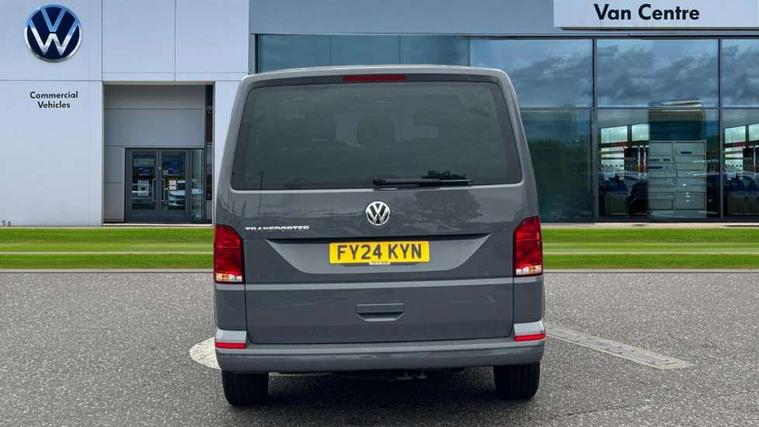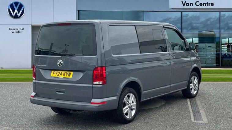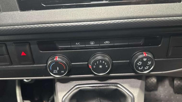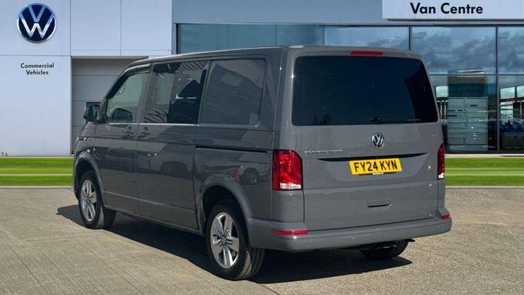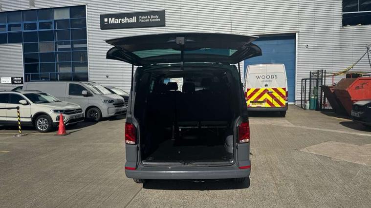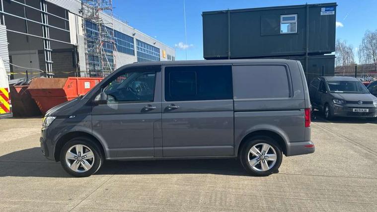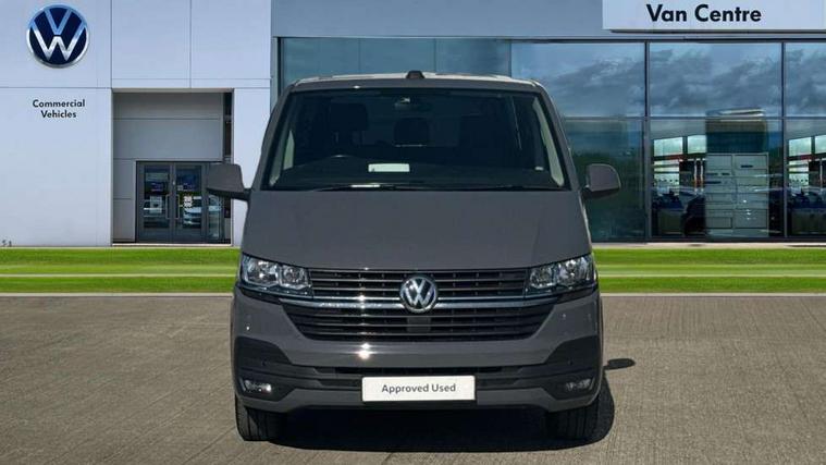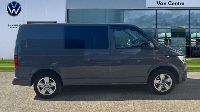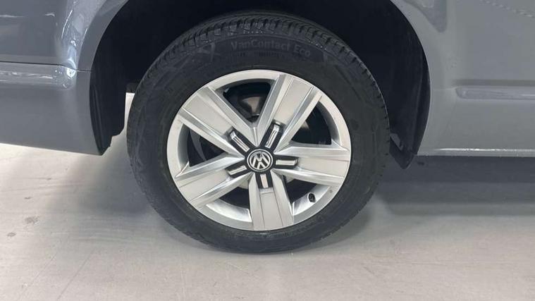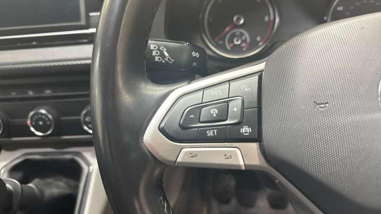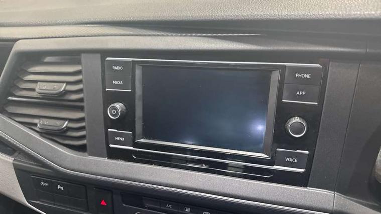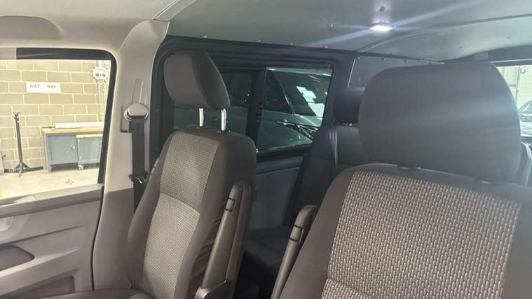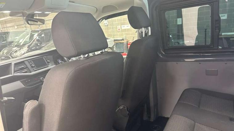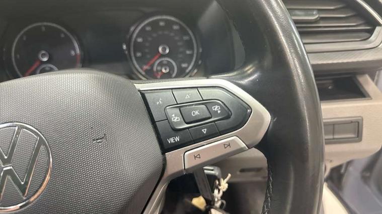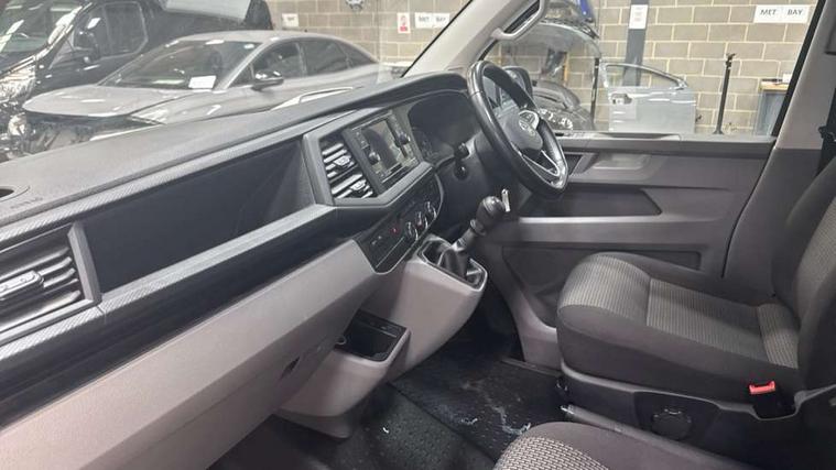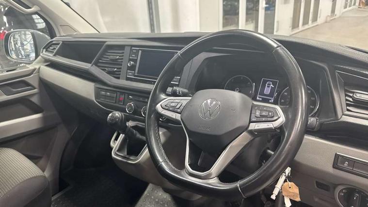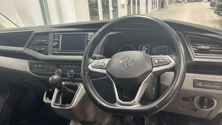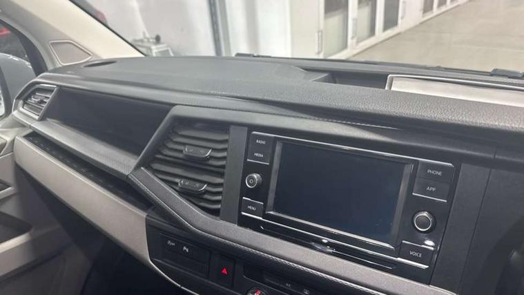 Adaptive cruise control, Child seat anchors ISOFIX and top tether in 2nd row of seats, Cross wind assist, Dimmable illuminated instruments, Driver alert with black and white multi function display plus, eCall emergency system, Forward collision warning front assist with autonomous emergency braking, Headlight range control, Mobile phone interface, Without voice control, 2 USB interfaces type C in dashboard, 4 speakers with 2 tweeters and 2 woofers, Composition colour radio with 6.5" touchscreen, Digital radio reception (DAB+), Volkswagen app connect, Automatic headlight control, leaving home and manual coming home feature, Front fog lamps with cornering light, Green heat insulating glass, Heated front windscreen, Illuminated steps in passenger/load compartment, Left convex exterior mirror, Power folding adjustable door mirrors with separately heated, Privacy glass from the B-pillar and heat-insulating glass in front, Radiator grille with 2 chrome trims, Rear window with heated insulating glass, heated rear window wiper and washer system, Right convex exterior mirror, Tailgate closing with unlatching from the inside, Transporter nameplate on the rear fender, Windshield wiper intermittent control with rain sensor for windshield wipers, Without adhesive film, 3 spoke leather wrapped multi function steering wheel, Additional sound deadening measures in cab and passenger compartment, Auto dimming breakaway interior rear view mirror, Comfort headliner in cab, hardboard roof trim in passenger and load compartment, Dust/pollen filter, Folding grab handles and storage compartments on cab seats, reading light, Front seats on the right in 1st row of seat, Glove compartment with illumination, Heavy duty tool kit and jack, Interior plastic loading edge protection, Lashing rings for load restraint system, LED Interior lighting in load and passenger compartment, Manual height adjustable and lumbar support for driver and single passenger seats, Medium height for vehicles with window aperture hardboard side trim panels in passenger/load compartment, Refrigerant R134a, Standard lower part dashboard in palladium, Without partition, Without seats in 3rd row of seats, Comfort pack - Transporter, Exterior pack without fog light- Transporter, Light and vision pack - Transporter, Non smoker pack - Transporter, 3 point height adjustable seat belts on outer seats cab with electric pretensioners, Driver and front passenger airbag with front passenger airbag deactivation, Power operated child safety lock, Warning buzzer and light for driver seat belt not fastened, Anti theft alarm system with interior monitoring in cab, backup horn and towing protection, Lockable wheel bolts, 16" chassis with 16" brake system, Additional 12V socket, Diesel particulate filter, Electronic stability control, ABS, ASR with deactivation button, hill start assist and brake assist system, Speed limiter, Start/stop system with regenerative breaking, 17" Devonport alloy wheels, Wheel trims,