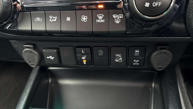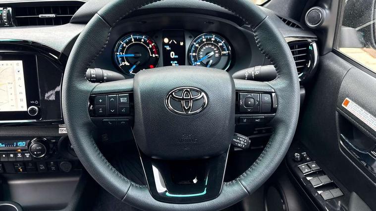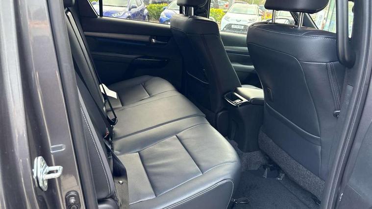 (ACC) Adaptive cruise control switch on steering wheel, 4.2" Multi information display, 8" multimedia system, Black extended surrounds on front fog lamps, Bluetooth connectivity, Colour multi information display, Dynamic guide lines on reversing camera, E-Call emergency call system, Eco driving indicator, Embedded navigation system with cloud connectivity, Front and rear parking sensors, Fuel heater, Intelligent adaptive cruise control, Lane departure alert with brake induced steering, Lane departure warning system, Lane trace assist, Lights on warning buzzer, Multi info, multimedia, telephone, voice recognition switches on steering wheel, MyT connected services, Panoramic view monitor, Power steering, Pre-collision system with pedestrian detection, Reversing camera, Road sign assist, Smart phone integration with Android auto & Apple CarPlay, Tachometer, Tyre pressure warning system (TPWS), Variable flow control (VFC) power steering, Washer fluid level warning, 6 speakers, Digital radio (DAB), MP3 compatibility, Steering wheel mounted audio controls, USB connector, Anti jam protection on front power windows, Auto dimming rear view mirror, Auto Headlights, Automatic headlamp levelling, Automatic high beam, Bi-tone dark grey and grey wheel arch moulding, Black door moulding, Black front spoiler, Black side bar with steps, Body coloured front bumper, Bumper under run protector, C - pillar in black, chrome insert on upper front grille, Dark grey door handles, Dark grey door mirrors, Dark grey front under run, Dark grey insert in headlamps, Dark grey painted lower front grille, Dark grey rear bumper, Dark grey upper front grille surround, Door mirror indicators, Electric front windows with one touch auto up & down function, Electric heated door mirrors, Electronic platform, Emergency brake light assist (EBS), Fixed rear window, Follow me home headlights, Front and rear mudguards, Front and rear power windows, Front spoiler, Front wiper De-icer, Green tinted glass, Headlight cut-off reminder, Heated rear window, Honeycomb black painted front grille, Honeycomb dark grey front grille, Invincible X wide front bumper, LED Daytime running lights, LED dual beam projector headlights, LED front fog lights, LED High mounted stop light, LED Indicators, LED rear brake lights, LED rear combination lights, LED rear lights, Microphone on front personal light, Mud flaps front and rear, Power adjustable door mirrors, Power rear side window, Power retractable door mirrors, Rear doors, Rear fog lights, Rear tailgate, Rear window defogger system, Rear window privacy glass, Shark fin antenna, Silver insert on side doors, Silver surround on multimedia display screen, smoke tinted headlights, Tailgate damper, Trailer sway control, Underbody protection cover, Variable front wipers, Variable intermittent windscreen wipers, Windscreen shadeband, 2 rear coat hooks, 220V power socket, 4 spoke leather steering wheel, 60/40 split tip-up rear bench seat, Adjustable driver seat belt extender, Adjustable rear headrests, Ambient door lighting, Ambient lighting on rear doors, Assist grips in centre pillar, Front pillar and overhead, Auto up and down function on 2nd row, Black centre console, Black front door assist grips, Black insert on centre console, Black upper dashboard, Carpet covered floor, Centre and front room light, Centre console coolbox, Centre console with lid, storage and armrest, Chrome interior door handle, Chrome surround on air conditioning buttons, Clean air filter, Closed upper passenger dashboard storage compartment, Cooler in upper glove box, Driver and passenger seatback pockets, Dual zone automatic air conditioning, Front bottle holders, Front console box, Front cup holders, Front door pockets, Heated driver and front passenger seats, Heated front and rear seats, Illuminated entry system, Inner load hooks on cargo deck, Key reminder warning, Leather gearshift, Leather upholstery, LED Driver and front passenger personal lights, Light blue ambient lighting on front doors, Locking glovebox, Manual telescopic steering wheel, Manual tilt steering wheel, Mirror on passenger sun visor, Multifunction steering wheel, Open tray on passenger dashboard, Pollen filter, Power adjustable drivers seat, Power reclining and sliding driver seat, PTC and viscous heating system, Rear armrest, Rear assist grips, Rear bottle holders, Rear cup holders, Rear door armrest, Rear door pockets, Rear headrests 3, Rear passenger footwell heating, Rear passenger room light, Seatback pockets - shopping bag hooks, silver gear shift surround on centre console, Silver insert on gear shift, Single compartment glove box, Slow opening on lower glovebox, Sunglasses holder, Synthetic leather armrest, Ticket holder on driver sun visor, Under rear passenger bench storage, Child proof rear door locks, Child safety door lock, Front and rear seatbelts reminder, Front passenger airbag detector, Isofix child seat preparation, Passenger airbag on/off switch, Pre tensioners and force limiters, Rear middle 3 point seat belt, Supplement restraint system (SRS) 7 airbags - driver and passenger, knee, side and curtain, Immobiliser, Lockable tailgate, Power door locks, Power passenger window lock, Remote central locking, Smart entry and start system button, Smartphone remote door lock, Smartphone remote hazard lights system, 2 12v sockets, 4x4 rear differential lock, 4x4 steering angle display, Anti lock braking system (ABS), Auto limited slip differntial, Brake assist, Diesel particulate filter, Double wishbone front suspension, Downhill Assist Control (DAC), Hill start assist, Leaf spring rear suspension, Load sensing proportioning system, Pitch and bounce control, Stop/start function, Traction control, Upgraded front and rear differentials, for enhanced torque and drivability, Vehicle stability control, Black chrome deco line on upper dashboard, Black chrome insert on centre air vents, Black chrome side air vent surrounds, Black side air vents, Matt grey 