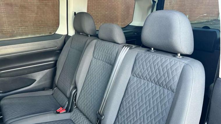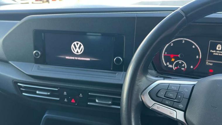 Driver alert system, eCall emergency call system, Lane keeping system, Multi function display, On board computer, Service interval indicator, Start/stop system with regenerative braking, Tailgate with window, We connect plus preparation, Diesel particulate filter, Electronic differential lock, 2 Type C USB, DAB Digital radio, Automatic hazard lights activation under emergency braking, Automatic headlight levelling system, Black painted exterior mirror housings, Body colour bumpers, Body colour door handles, Electric front windows, Exterior mirrors - power adjustable, heated and power folding, Fixed side window in load/passenger compartment, Heat insulating windscreen, Heated rear window, LED rear combination lights, Rear window wiper and washer system with intermittent control, Silver sliding door rail, Third high level brake light, Twin near side and off side sliding doors, Windscreen wiper with variable intermittent delay and wash wipe system, 12V socket in passenger compartment, 2 single seats in 3rd row, 3 seat bench in 2nd row, 5 standard interior lights in passenger compartment, Backrest release for front passenger seat, Carpet floor covering in cab, Carpet floor covering in passenger compartment, Centre console high with armrests adjustable, Centre console with 2 cupholders, Door and side trim panel in fabric, Electrically controlled heating system, Folding table on front seat backrests, Front head restraints, Front passenger seat foldable, Glove compartment cover with light, Height adjustable head restraints, Interior light in headlining, Isofix on 2nd row outer seats, Leather gearshift knob/handle, Leather multifunction steering wheel, Lockable glove compartment with light, Manual adjustable lumbar support in front seats, Manual front seats with height adjustment, Reach and rake adjustable steering column, Rear head restraints, Removable waste bin with cover for cab, Seat occupied recognition for front seats, Sliding trunk cover, Split folding rear seat, Storage drawers under front seats, Sun visors with mirror and airbag label on front passenger, Trialog cloth upholstery, 3-point seat belts in front with pretensioner and height adjustment, 3x3 point rear seatbelts, Anti-lock braking system (ABS), Automatic post collision braking system, Autonomous emergency braking front assist with pedestrian and cyclist monitoring, Brake assist, Child locks on rear doors, Curtain airbag for outer seats in rear, Direct tyre pressure monitoring system, Driver and front passenger airbag with front passenger airbag deactivation, Electric parking brake with auto hold function, Electronic brake force distribution, Engine drag torque control, ESP, First aid kit with warning triangle and safety vest, Front centre airbag, Power operated child safety locks, Seat belt reminder, Side and curtain airbag for driver and front passenger, Traction control system (TCS), Anti theft alarm system with interior monitoring, backup horn and towing protection, Wheel bolts unlockable anti-theft protection, Decorative inserts in beige birch vein,