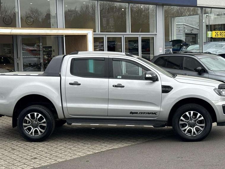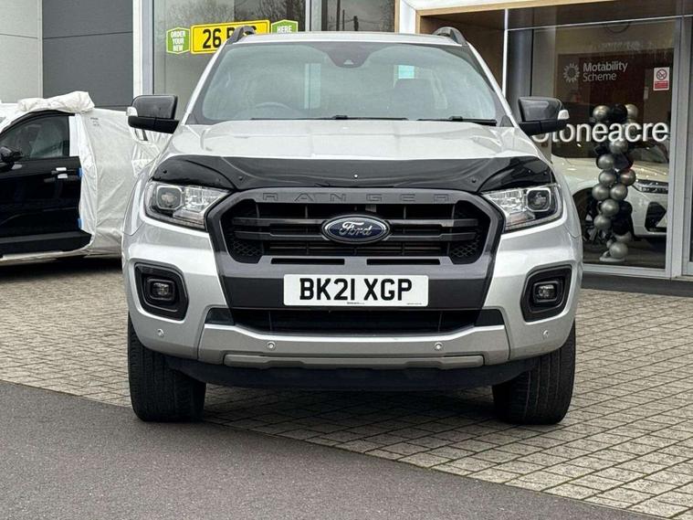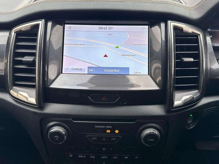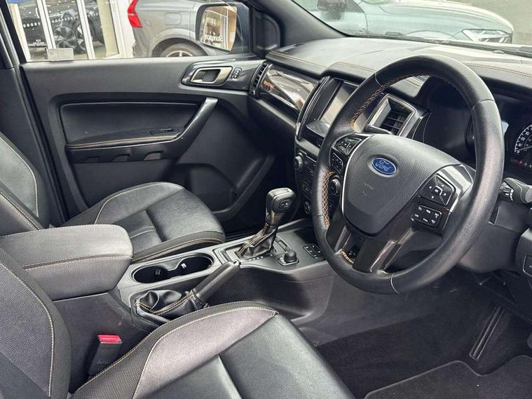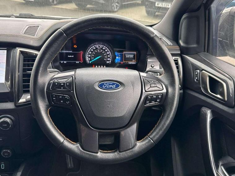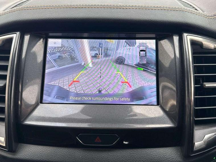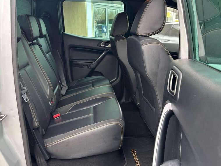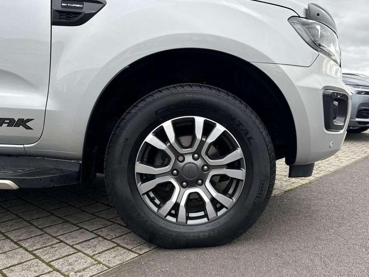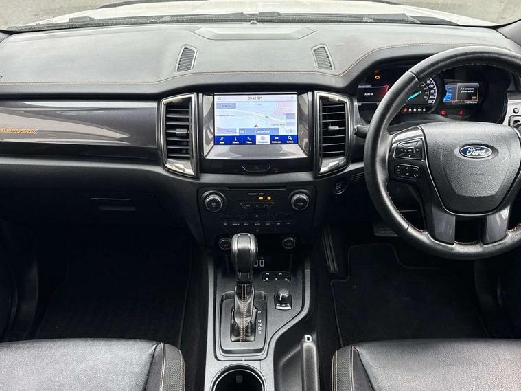 2 key fob, Collision mitigation braking system, Electric power assisted steering, Fixed rear view camera, Intelligent speed assistant, Lane keeping aid, Traffic sign recognition, Trip computer, Body coloured plastic front bumper, Boulder grey exterior door handle, Boulder grey exterior door mirror, Boulder grey radiator grille, Daytime running lights, Dual power heated fold back door mirror with puddle lamp and signal, Dyno grey sports hoop with side rails, Electrically operated windows with one shot driver's window, Electrochromic interior mirror, Front splash guard and mud flaps, Heated windshield and rear window, High mounted stop lamp with cargo area light, LED Front fog lamp, LED projector headlamps, Moulded in colour tailgate handle, Painted front fender grille, Privacy glass, Rain sensitive windshield wipers, Rear bumper chrome under-bar, Rear bumper step in boulder grey, Rear mudflaps, Roof rails, Side step with brushed inserts, Tailgate - Easy-lift/lower mechanism, Under hood engine cover, Underbody protection, Centre console coolbox, Chrome interior door handle, Driver seat back mounted map pocket, Dual control system - Electronic air temperature control (EATC), Ebony headliner, Heated front seat, Journey grain partial leather upholstery with Wildtrak logo, Leather gearknob, LED ambient interior lighting, Power adjustable 8 way driver seat, Premium front and rear floor mats with Wildtrak logo, Reach and rake adjustable steering column, Roof storage for driver sunglasses, Sport leather stitched steering wheel, Tie down rails and rope hooks, Wildtrak door trim panel insert, ICE feature pack 129 - Ranger, Driver and front passenger airbag, side airbag, curtain airbag and driver knee airbag, ISOFIX child safety seat attachment, Tyre pressure sensors, Double locking power door lock with flip key, Immobiliser, Locking wheel nuts, Passive anti theft system, Passive keyless entry and start system, Power tailgate lock, Spare wheel lock, Thatcham category 1 alarm security system, ABS, ESP and roll over mitigation, Emergency brake assist, Engine start/stop system, Locking rear axle, Power converter,