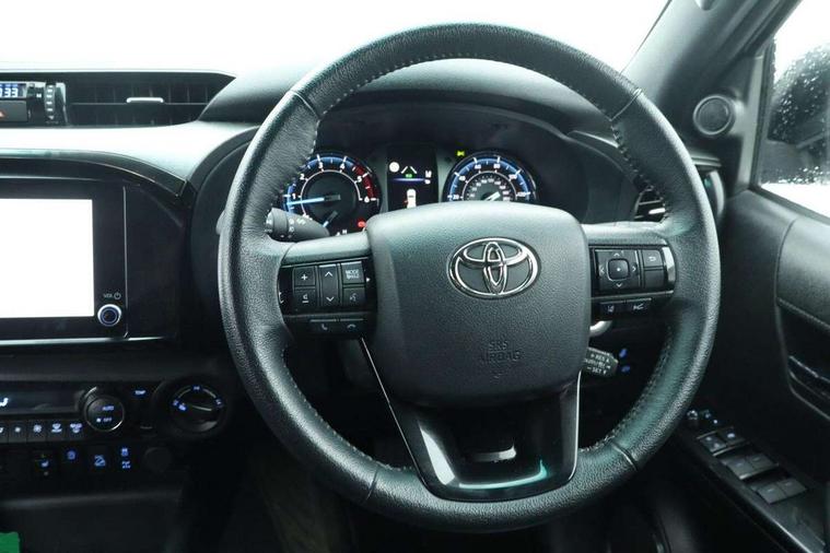 (ACC) Adaptive cruise control switch on steering wheel, 4.2" Multi information display, 8" multimedia system, Black extended surrounds on front fog lamps, Bluetooth connectivity, Colour multi information display, Dynamic guide lines on reversing camera, E-Call emergency call system, Eco driving indicator, Embedded navigation system with cloud connectivity, Front and rear parking sensors, Fuel heater, Intelligent adaptive cruise control, Lane departure alert with brake induced steering, Lane departure warning system, Lane trace assist, Lights on warning buzzer, Multi info, multimedia, telephone, voice recognition switches on steering wheel, MyT connected services, Panoramic view monitor, Power steering, Pre-collision system with pedestrian detection, Reversing camera, Road sign assist, Smart phone integration with Android auto & Apple CarPlay, Tachometer, Tyre pressure warning system (TPWS), Variable flow control (VFC) power steering, Washer fluid level warning, 6 speakers, Digital radio (DAB), MP3 compatibility, Steering wheel mounted audio controls, USB connector, Anti jam protection on front power windows, Auto dimming rear view mirror, Auto Headlights, Automatic headlamp levelling, Automatic high beam, Bi-tone dark grey and grey wheel arch moulding, Black door moulding, Black front spoiler, Black side bar with steps, Body coloured front bumper, Bumper under run protector, C - pillar in black, chrome insert on upper front grille, Dark grey door handles, Dark grey door mirrors, Dark grey front under run, Dark grey insert in headlamps, Dark grey painted lower front grille, Dark grey rear bumper, Dark grey upper front grille surround, Door mirror indicators, Electric front windows with one touch auto up & down function, Electric heated door mirrors, Electronic platform, Emergency brake light assist (EBS), Fixed rear window, Follow me home headlights, Front and rear mudguards, Front and rear power windows, Front spoiler, Front wiper De-icer, Green tinted glass, Headlight cut-off reminder, Heated rear window, Honeycomb black painted front grille, Honeycomb dark grey front grille, Invincible X wide front bumper, LED Daytime running lights, LED dual beam projector headlights, LED front fog lights, LED High mounted stop light, LED Indicators, LED rear brake lights, LED rear combination lights, LED rear lights, Microphone on front personal light, Mud flaps front and rear, Power adjustable door mirrors, Power rear side window, Power retractable door mirrors, Rear doors, Rear fog lights, Rear tailgate, Rear window defogger system, Rear window privacy glass, Shark fin antenna, Silver insert on side doors, Silver surround on multimedia display screen, smoke tinted headlights, Tailgate damper, Trailer sway control, Underbody protection cover, Variable front wipers, Variable intermittent windscreen wipers, Windscreen shadeband, 2 rear coat hooks, 220V power socket, 4 spoke leather steering wheel, 60/40 split tip-up rear bench seat, Adjustable driver seat belt extender, Adjustable rear headrests, Ambient door lighting, Ambient lighting on rear doors, Assist grips in centre pillar, Front pillar and overhead, Auto up and down function on 2nd row, Black centre console, Black front door assist grips, Black insert on centre console, Black upper dashboard, Carpet covered floor, Centre and front room light, Centre console coolbox, Centre console with lid, storage and armrest, Chrome interior door handle, Chrome surround on air conditioning buttons, Clean air filter, Closed upper passenger dashboard storage compartment, Cooler in upper glove box, Driver and passenger seatback pockets, Dual zone automatic air conditioning, Front bottle holders, Front console box, Front cup holders, Front door pockets, Heated driver and front passenger seats, Heated front and rear seats, Illuminated entry system, Inner load hooks on cargo deck, Key reminder warning, Leather gearshift, Leather upholstery, LED Driver and front passenger personal lights, Light blue ambient lighting on front doors, Locking glovebox, Manual telescopic steering wheel, Manual tilt steering wheel, Mirror on passenger sun visor, Multifunction steering wheel, Open tray on passenger dashboard, Pollen filter, Power adjustable drivers seat, Power reclining and sliding driver seat, PTC and viscous heating system, Rear armrest, Rear assist grips, Rear bottle holders, Rear cup holders, Rear door armrest, Rear door pockets, Rear headrests 3, Rear passenger footwell heating, Rear passenger room light, Seatback pockets - shopping bag hooks, silver gear shift surround on centre console, Silver insert on gear shift, Single compartment glove box, Slow opening on lower glovebox, Sunglasses holder, Synthetic leather armrest, Ticket holder on driver sun visor, Under rear passenger bench storage, Child proof rear door locks, Child safety door lock, Front and rear seatbelts reminder, Front passenger airbag detector, Isofix child seat preparation, Passenger airbag on/off switch, Pre tensioners and force limiters, Rear middle 3 point seat belt, Supplement restraint system (SRS) 7 airbags - driver and passenger, knee, side and curtain, Immobiliser, Lockable tailgate, Power door locks, Power passenger window lock, Remote central locking, Smart entry and start system button, Smartphone remote door lock, Smartphone remote hazard lights system, 2 12v sockets, 4x4 rear differential lock, 4x4 steering angle display, Anti lock braking system (ABS), Auto limited slip differntial, Brake assist, Diesel particulate filter, Double wishbone front suspension, Downhill Assist Control (DAC), Hill start assist, Leaf spring rear suspension, Load sensing proportioning system, Pitch and bounce control, Stop/start function, Traction control, Upgraded front and rear differentials, for enhanced torque and drivability, Vehicle stability control, Black chrome deco line on upper dashboard, Black chrome insert on centre air vents, Black chrome side air vent surrounds, Black side air vents, Matt grey 