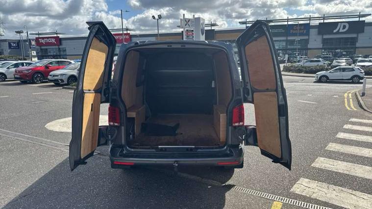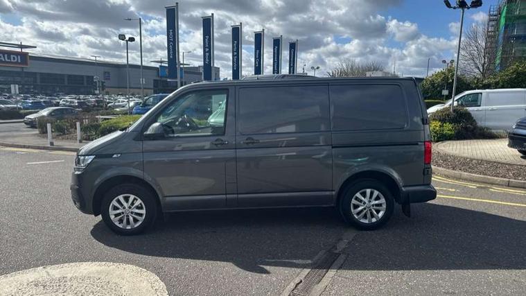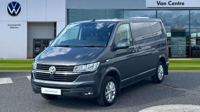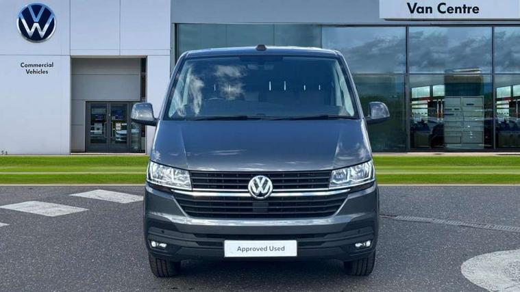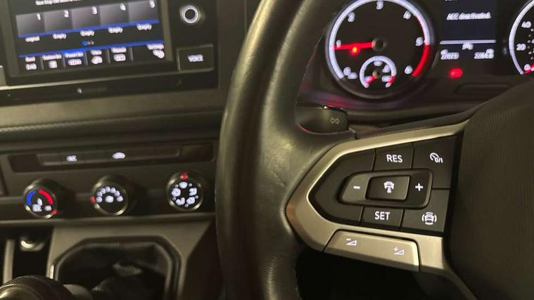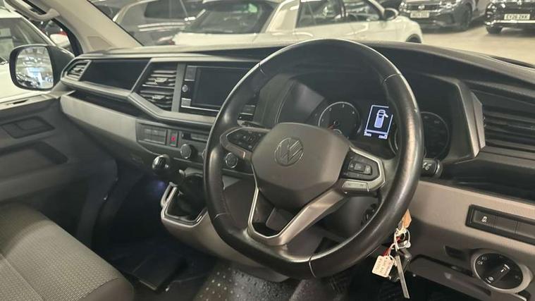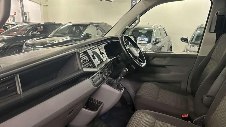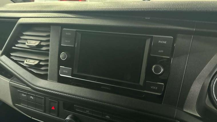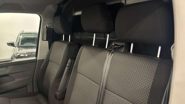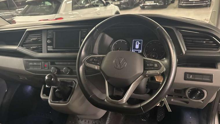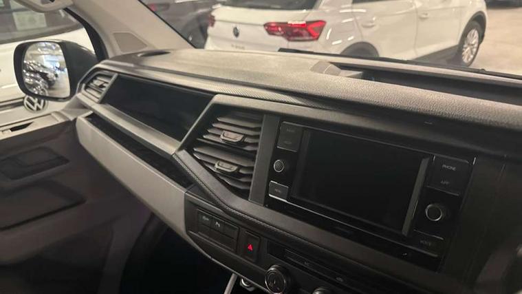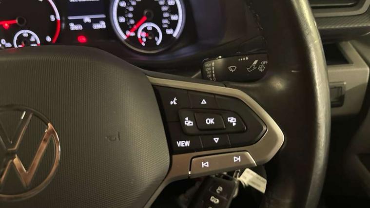 Adaptive cruise control, Cross wind assist, Dimmable illuminated instruments, Driver alert with Multi-function display plus, eCall emergency system, Forward collision warning front assist with autonomous emergency braking, Mobile phone interface, Multi function display plus with black and white display, 2 USB interfaces type C in dashboard, 4 speakers with 2 tweeters and 2 woofers, Composition colour radio with 6.5" touchscreen, Digital radio reception (DAB+), Volkswagen app connect, Automatic headlight control, leaving home and manual coming home feature, Closing rear wing door with unlatching from the inside, Front fog lamps with cornering light, Heat insulating glass (green) in cab and passenger/load compartment, Heated front windscreen, Left convex exterior mirror, Power folding adjustable door mirrors with separately heated, Radiator grille with 2 chrome trims, Rear wing doors without window apertures, Right convex exterior mirror, Transporter nameplate on the rear fender, Windshield wiper intermittent control with rain sensor for windshield wipers, 3 spoke leather wrapped multi function steering wheel, Auto dimming breakaway interior rear view mirror, Comfort headliner in cab, hardboard roof trim in passenger and load compartment, Dust/pollen filter, Front and rear left without window closed side panel in load compartment, Front seats on the right in 1st row of seat, Glove compartment with illumination, Heavy duty tool kit and jack, High partition, Interior plastic loading edge protection, LED Interior lighting in load and passenger compartment, Manual adjustable lumbar support for right single seat in 1st row seats, Refrigerant R134a, Standard lower part dashboard in palladium, Storage compartments on cab seats and reading light, Without right side window apertures in passenger and load compartment, Comfort pack - Transporter, Exterior pack without fog light- Transporter, Non smoker pack - Transporter, 3 point height adjustable seat belts on outer seats cab with electric pretensioners, Driver and front passenger airbag with front passenger airbag deactivation, Warning buzzer and light for driver and front passenger seat belt not fastened, Without child safety lock in passenger compartment, Anti theft alarm system with interior monitoring in cab, backup horn and towing protection, Lockable wheel bolts, 16" chassis with 16" brake system, Diesel particulate filter, Electronic stability control, ABS, ASR with deactivation button, hill start assist and brake assist system, Start/stop system with regenerative breaking, 16" Clayton alloy wheels,