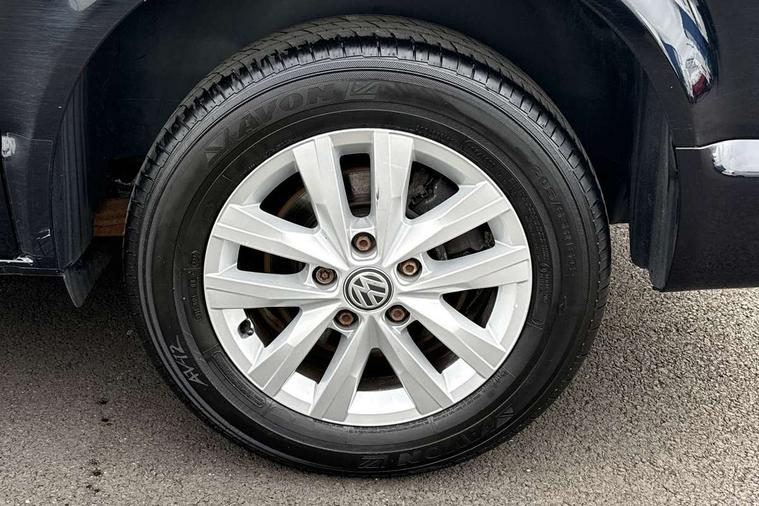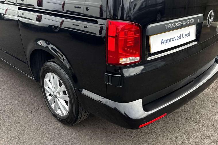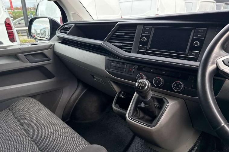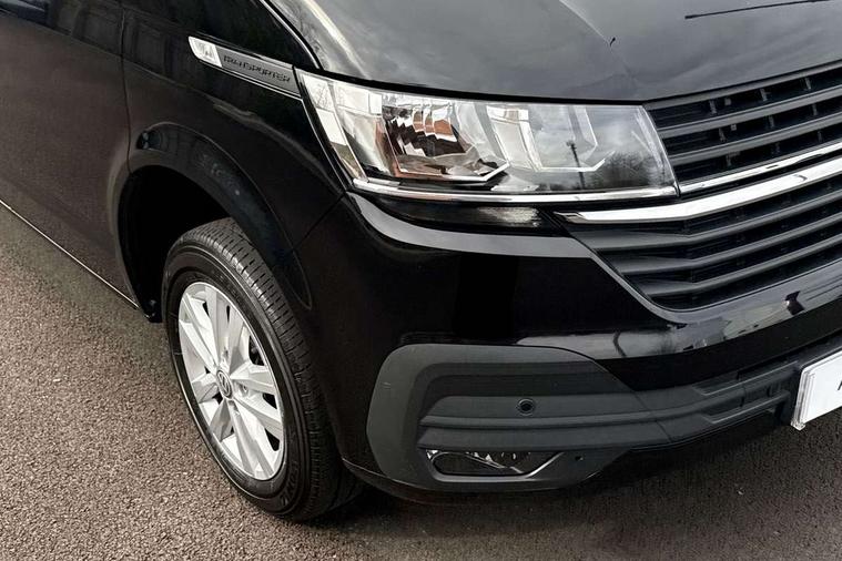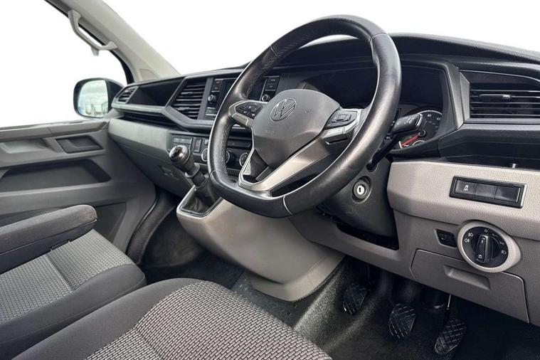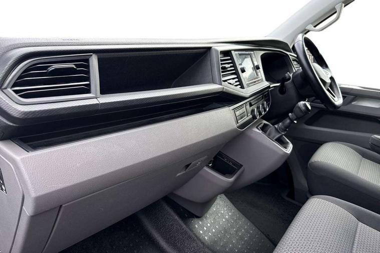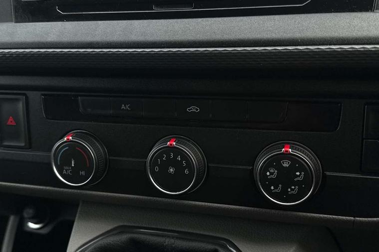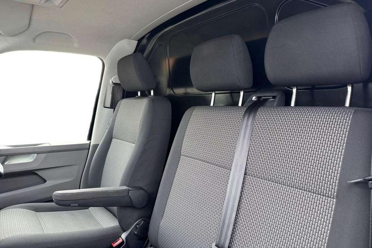 Adaptive cruise control, Cross wind assist, Dimmable illuminated instruments, Driver alert with Multi-function display plus, eCall emergency system, Forward collision warning front assist with autonomous emergency braking, Mobile phone interface, Multi function display plus with black and white display, 2 USB interfaces type C in dashboard, 4 speakers with 2 tweeters and 2 woofers, Composition colour radio with 6.5" touchscreen, Digital radio reception (DAB+), Volkswagen app connect, Automatic headlight control, leaving home and manual coming home feature, Closing rear wing door with unlatching from the inside, Front fog lamps with cornering light, Heat insulating glass (green) in cab and passenger/load compartment, Heated front windscreen, Left convex exterior mirror, Power folding adjustable door mirrors with separately heated, Radiator grille with 2 chrome trims, Rear wing doors without window apertures, Right convex exterior mirror, Transporter nameplate on the rear fender, Windshield wiper intermittent control with rain sensor for windshield wipers, 3 spoke leather wrapped multi function steering wheel, Auto dimming breakaway interior rear view mirror, Comfort headliner in cab, hardboard roof trim in passenger and load compartment, Dust/pollen filter, Front and rear left without window closed side panel in load compartment, Front seats on the right in 1st row of seat, Glove compartment with illumination, Heavy duty tool kit and jack, High partition, Interior plastic loading edge protection, LED Interior lighting in load and passenger compartment, Manual adjustable lumbar support for right single seat in 1st row seats, Refrigerant R134a, Standard lower part dashboard in palladium, Storage compartments on cab seats and reading light, Without right side window apertures in passenger and load compartment, Comfort pack - Transporter, Exterior pack without fog light- Transporter, Non smoker pack - Transporter, 3 point height adjustable seat belts on outer seats cab with electric pretensioners, Driver and front passenger airbag with front passenger airbag deactivation, Warning buzzer and light for driver and front passenger seat belt not fastened, Without child safety lock in passenger compartment, Anti theft alarm system with interior monitoring in cab, backup horn and towing protection, Lockable wheel bolts, 16" chassis with 16" brake system, Diesel particulate filter, Electronic stability control, ABS, ASR with deactivation button, hill start assist and brake assist system, Start/stop system with regenerative breaking, 16" Clayton alloy wheels,
