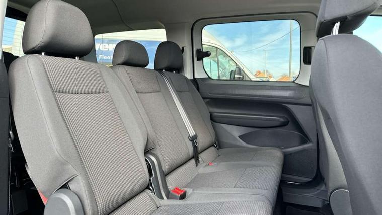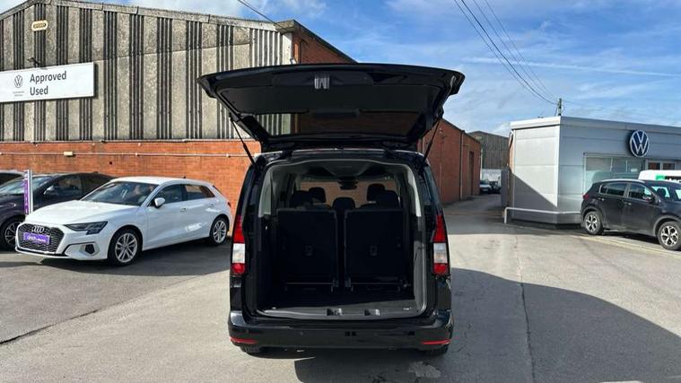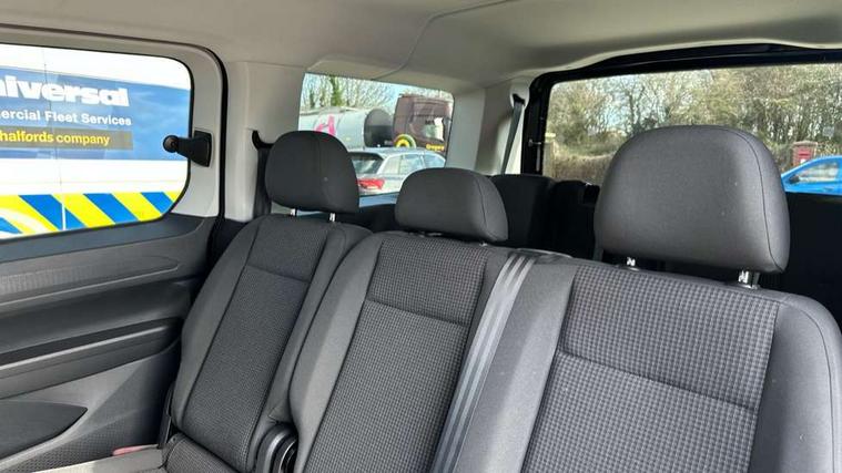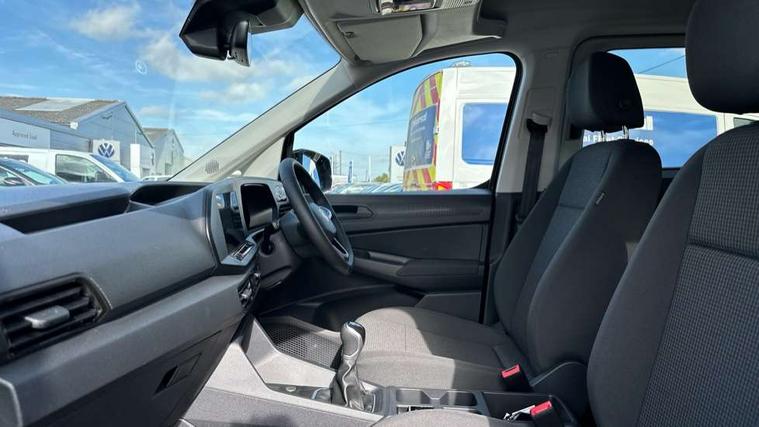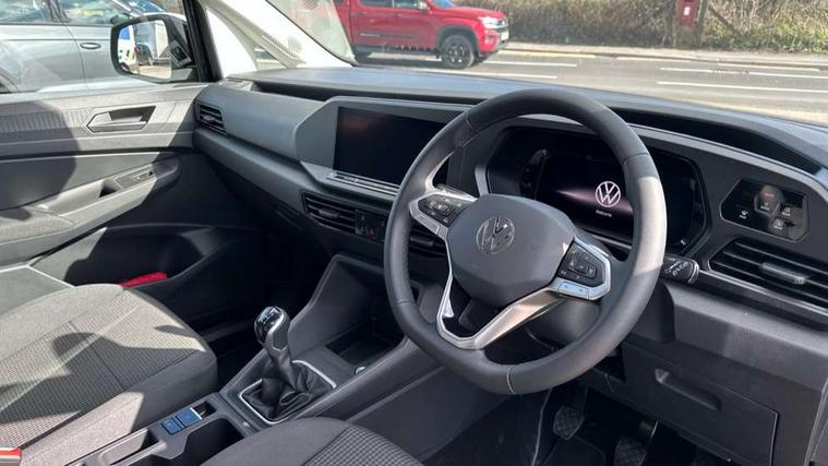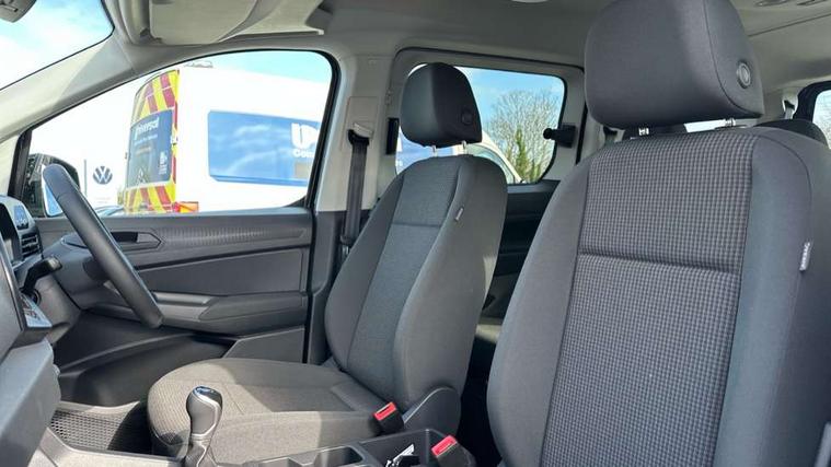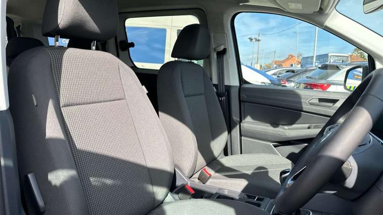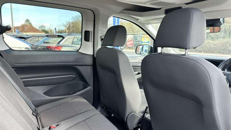 Bluetooth mobile phone interface, Cruise control + speed limiter, Driver alert system, eCall emergency call system, Gesture control, Lane assist, Multi function display, On board computer, Rear parking sensors, Service interval indicator, Start/stop system with regenerative braking, We connect basic preparation, Electronic differential lock, 2 Type C USB, DAB Digital radio, Anti dazzle rear view mirror, Automatic hazard lights activation under emergency braking, Black door mirrors, Body colour bumpers, Body coloured door handles, Electric front windows, Electrically adjustable door mirrors, Fixed side window in load/passenger compartment, Heated rear window, Rain sensor, Rear window wiper and washer system with intermittent control, Roof rails preparation, Silver sliding door rail, Third high level brake light, Twin near side and off side sliding doors, Windscreen wiper with variable intermittent delay and wash wipe system, 12V socket in passenger compartment, 5 standard interior lights in passenger compartment, Air conditioning - Climatic airconditioning system - manual in cab, Carpet floor covering in cab, Carpet floor covering in passenger compartment, Centre console with 2 cupholders, Double grid cloth upholstery, Electrically controlled heating system, Front head restraints, Front passenger seat, Glove compartment cover with light, Height adjustable head restraints, Illumination lockable glovebox compartment, Interior light in headliner incorporating LED technology, Isofix on 2nd row outer seats, Manual front seats with height adjustment, Multifunction steering wheel, Plastic gearshift knob/handle, Reach and rake adjustable steering column, Rear head restraints, Retractable luggage compartment cover, Seat occupied recognition for front seats, Sliding trunk cover, Split folding/removable rear seat, Sun visors with mirror and airbag label on front passenger, 7 seat pack - Caddy, 3-point seat belts in front with pretensioner and height adjustment, 3x3 point rear seatbelts, Anti-lock braking system (ABS), Automatic post collision braking system, Autonomous emergency braking front assist with pedestrian and cyclist monitoring, Brake assist, Child locks on rear doors, Curtain airbag for outer seats in rear, Direct tyre pressure monitoring system, Driver and front passenger airbag with front passenger airbag deactivation, Electric parking brake with auto hold function, Electronic brake force distribution, Engine drag torque control, ESP, First aid kit with warning triangle and safety vest, Front centre airbag, Power operated child safety locks, Seat belt warning if unfastened, front and rear, Side and curtain airbag for driver and front passenger, Traction control system (TCS), Anti theft alarm system with interior monitoring, backup horn and towing protection, Electronic engine immobiliser, Two remote keys, Decorative inserts birch vein,