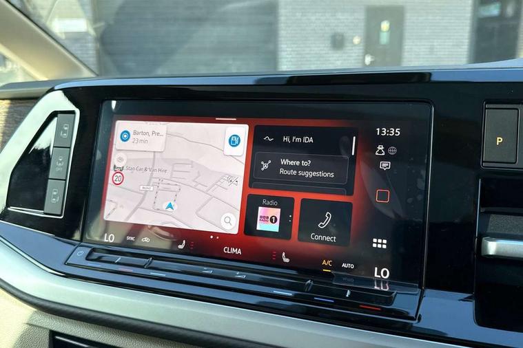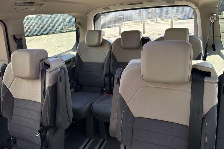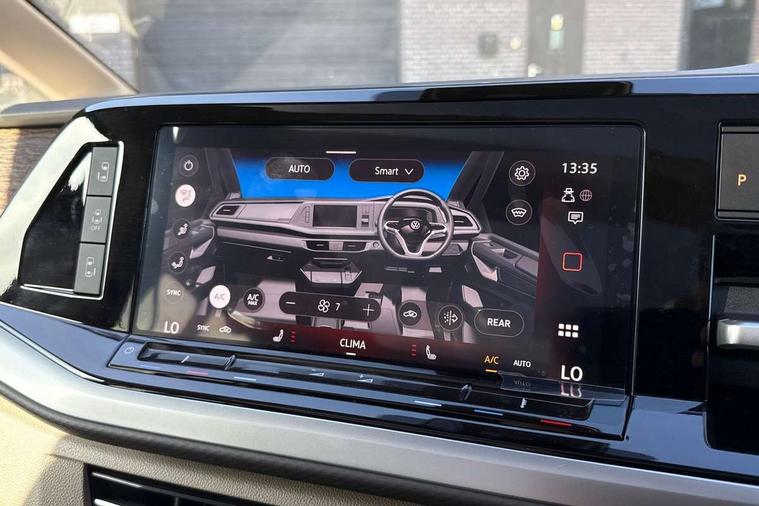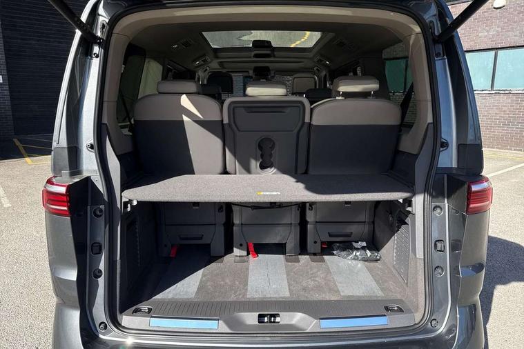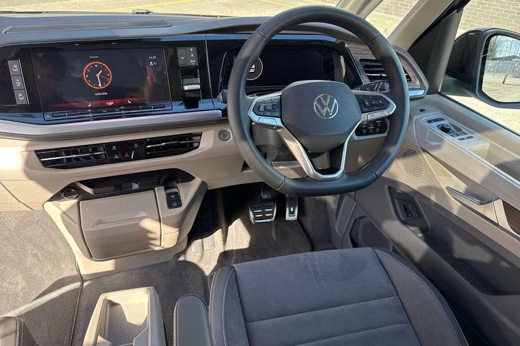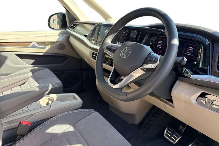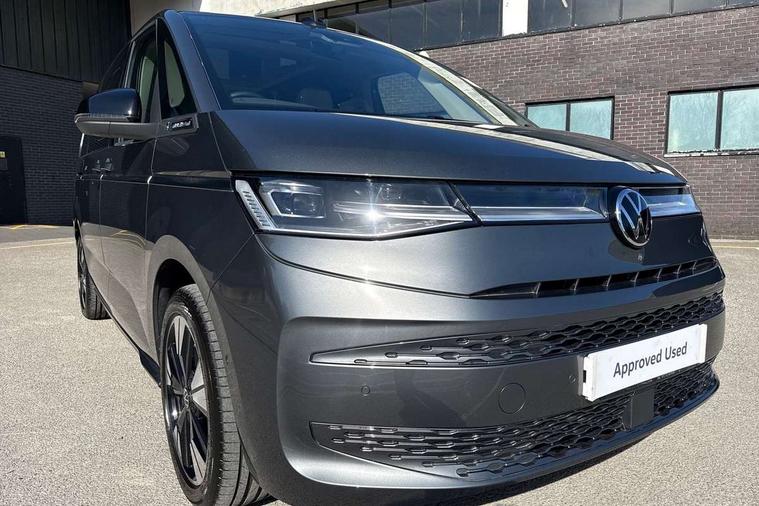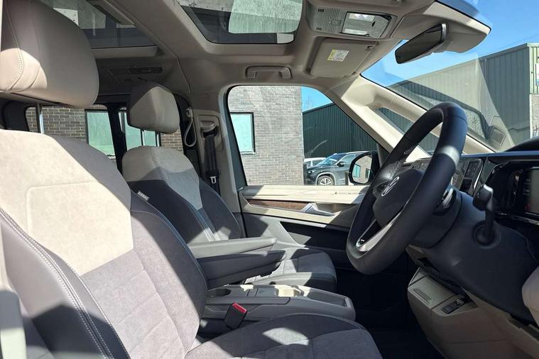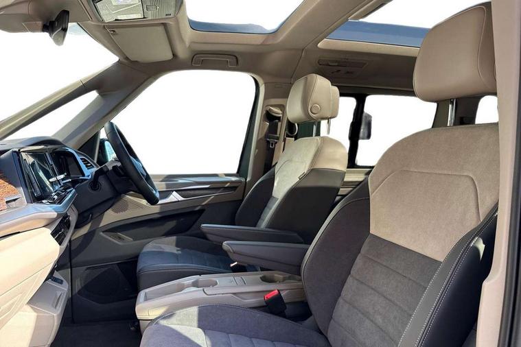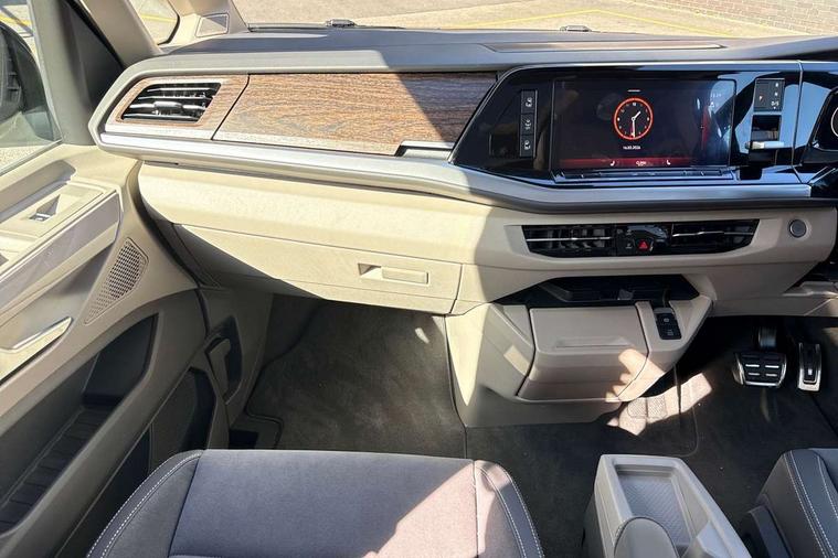 Adaptive cruise control with C2X including front assist and city emergency braking system, Digital Cockpit Pro with 10.25" colour display with adaptable display includes navigation map display, telephone contact images and audio information, Discover media pro navi system with 10" colour touch incl DAB+radio/appconnect for apple carplay/android auto/streaming and internet/gesture control, Driver alert system, Dynamic road sign display, eCall emergency system, Electrically-operated tailgate opening and closing function (Easy open), operated via foot movement under rear tailgate, Emergency assist, Front Cross Traffic Alert, Lane change system with side assist including blind spot monitor, rear traffic alert and exit warning system, Lane keeping system Lane Assist, Mobile phone interface, PAS, Semi-automated driving assistance, Tailgate, Travel assist, Voice control system including Alexa web app, We connect preparation, Electronic differential lock, 2 USB-C ports in front and 4 USB-C ports in passenger compartment, Additional interior noise reduction measures, Advanced high beam control dynamic light assist for LED matrix headlamps, Automatic headlight control with welcome home lights, Body coloured exterior door handles, Break away auto dimming rear view interior mirror, Chrome trim decorative strip mid-way on side and rear, Dynamic headlight range control with dynamic cornering light, Electrically adjustable, heated and folding door mirrors, Front fog lights, Glossy black painted radiator grille with 2 illuminated chrome trims, Heated rear window with window wiper and washer system, Heated windscreen, High gloss black exterior mirror housing, IQ.Light LED matrix headlamps with LED separate daytime running light, Laminated safety glass windshield, heat and sound insulating, LED 3rd brake lamp, LED rear combination lamps, Rear wiper, Stainless steel tailgate trim, Surround lighting in door area and tailgate with logo projection in door area, Windshield wiper intermittent control with rain sensor, 1 x 12V sockets on the dash panel, 12V socket in passenger compartment, 3 seat bench in 3rd row, 30 colours ambient interior lighting and tailgate surround lighting, 7 single seats removable/movable, Carpet mats in cab, Climatronic 3 zone air conditioning with additional control panel in passenger compartment, Front and rear head restraints, Grab handles on A pillar for access, on driver and front passenger side, Height adjustable seats, Height and longitudinal adjustment steering wheel with gear shift paddles, Illumination lockable glovebox compartment, ISOFIX (including i-size) and top tether in all seats in 2nd and 3rd rows, LED luggage compartment lighting X 2, Load compartment partition to 20kg with bag hooks and luggage net, Luggage compartment lid power latching with unlatching from inside, Multifunction leather steering wheel with tiptronic, Reinforced carpet floor covering in passenger compartment, Removable armrests for front seats with power adjustable lumbar support and folding table for 2nd row passenger seats, Single front passenger seat, Slidable multifunction table/centre console with 3 cup holders, Stainless steel pedals, Storage compartment under the 2nd and 3rd row seat and two waste bins, Sun visors with illuminated vanity mirror, ticket holder on driver side with airbag warning label on sunvisor and B-pillar, Easy open package - Multivan, 3x3 point rear seat belts, ABS, Automatic post collision braking system, Autonomous emergency braking front assist with pedestrian and cyclist monitoring, Driver and front passenger airbag with front passenger airbag deactivation, Electric childproof lock, Electronic stability control (ESC) and Electromechanical brake booster, ESP, First aid kit with warning triangle and safety vest, Front disc brakes, Hill hold assist, Seat belt warning for the drivers and all passengers seats if unfastened, Side and curtain airbags for driver and front passenger, curtain airbags for outer seats in rear, centre airbag in front, Single tone horn, Traction control, Tyre pressure monitoring system, Anti theft alarm system with interior monitoring in cab, backup horn and towing protection, Central locking system with interior control and safe lock, Keyless advanced with keyless entry, Start/stop button on centre console, Dark woodgrain optic decorative inserts,