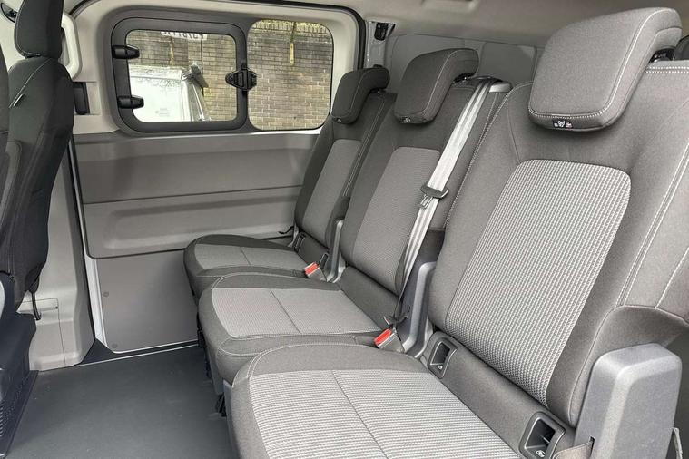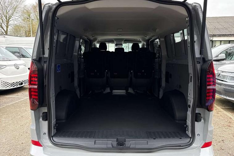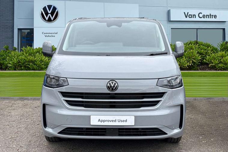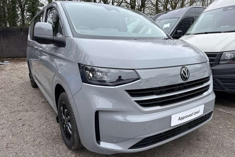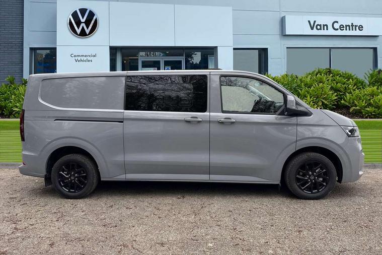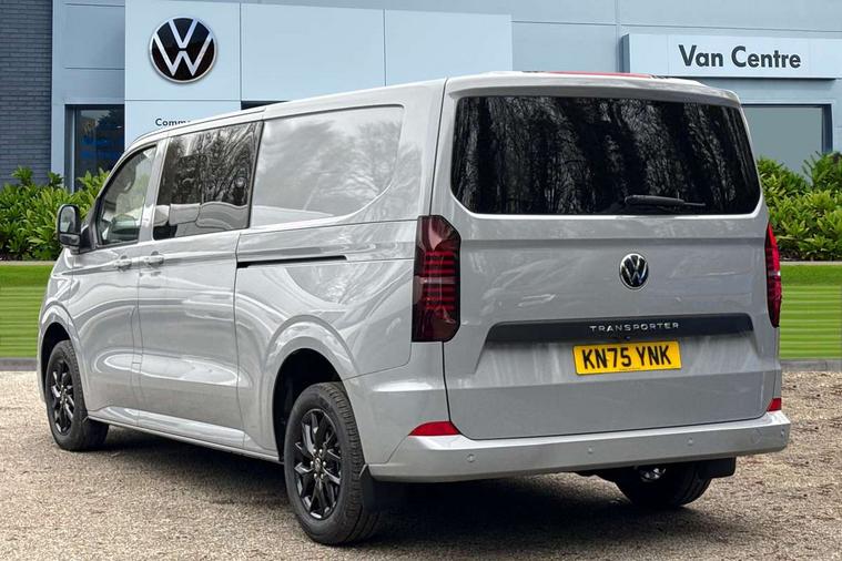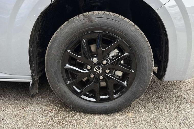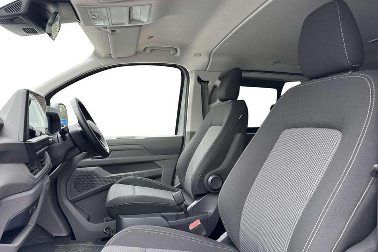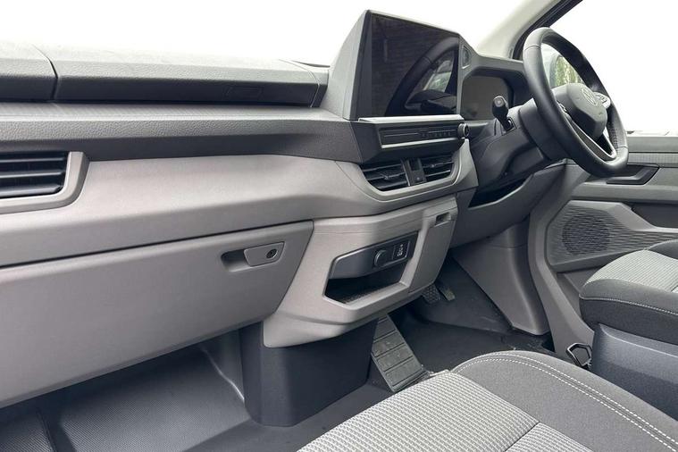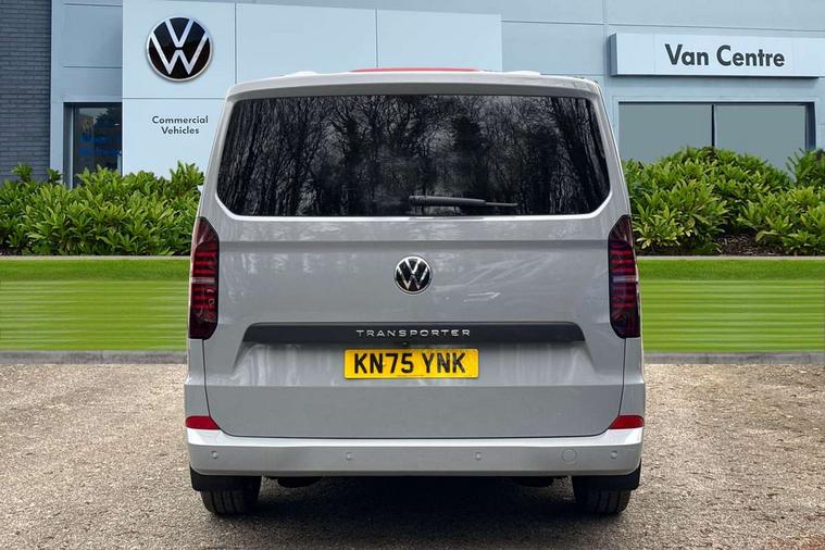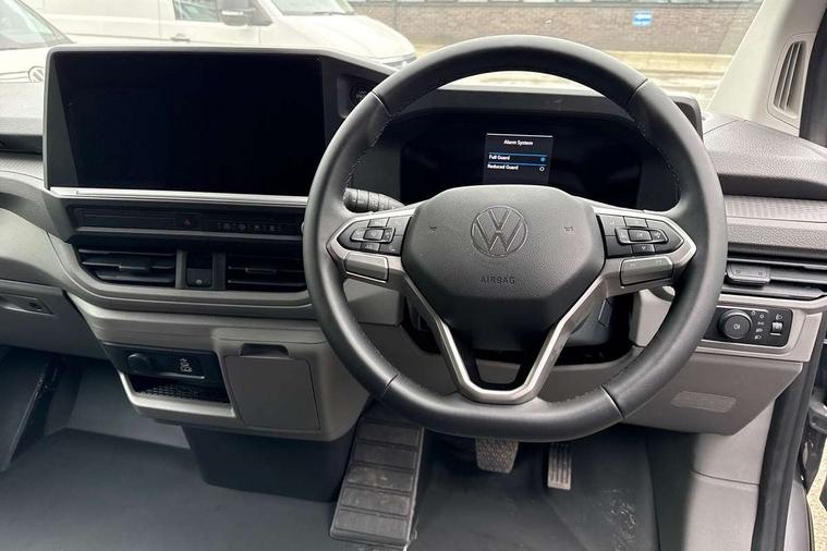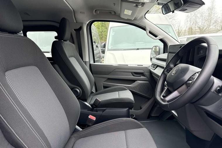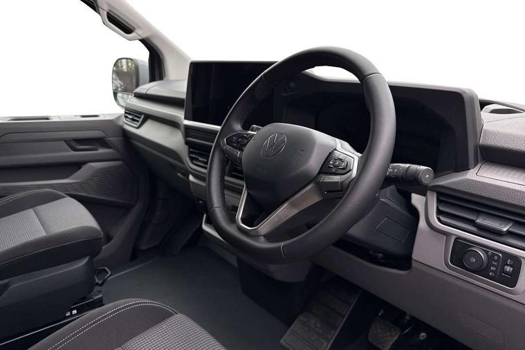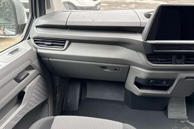 12" digital drivers display, 13" touchscreen infotainment display with wireless app connect and DAB radio, 5G Modem, Adaptive cruise control with predictive speed limiter and traffic jam assist, Dynamic road sign display, eCall emergency system, Front collision warning with braking, Identification label for N1 commercial vehicle registration, Lane assist with blind spot assist and exit warning system, PAS, Preparation of VW connect and connect plus, Wireless mobile phone charging, Wrong way driver warning, 6 speakers, Body colour bumpers front and rear, Body coloured add on parts, Body coloured door handles, Body coloured door mirrors, Body coloured radiator grille, Dual sliding doors with pop-out window vents (left and right) for 2nd row, Electrically heated, adjustable and folding door mirrors, Heat reflecting glass in front side windows, privacy glass in rear side windows and rear window, Heated rear window, Laminated windshield made of heat-reflecting glass, Mud flaps front and rear, Rear tailgate, Rear Transporter nameplate in black grained decorative trim, Rear window wiper with washer system, Sliding doors on driver and front passenger side, Vehicle opening configuration 1x 1st row of seats, 2x all doors, 12 pin terminal block, 12V outlet in centre console and 12V outlet on rear right D-pillar, 2 LED lights in roof of load compartment, 3 single seats in 2nd row, folding and tumbling, 2x isofix and top tether, 3x additional super bright LED lights in load compartment, 4 way height and tilt adjustable head restraints, 6 tie downs for securing goods in the passenger/load compartment, 7x USB in cab and 2x USB in passenger compartment, Black plastic scuff plate for sliding door in cargo, illuminated, Black plastic scuff plate in front without illumination, Covers in the bottom area of all side panels and doors in the load compartment, Dimming breakaway interior rear view mirror, Gear selector lever on steering wheel, Grab handle on A-pillar passenger side, Illuminated glove compartment with lockable lid, LED light units for cab and passenger compartment, Overhead storage compartment, Single driver and single passenger seat in cab, Striped fabric upholstery, Without bulkhead, Without floor covering in load compartment, Driver and front passenger airbag with front passenger airbag deactivation, Dual tone horn, Seat belt pretensioner for front seats, Side and curtain airbags in cab curtain airbags in passenger compartment, Anti theft alarm system with interior monitoring in cab, backup horn and towing protection, Anti-theft wheel bolts, Central locking, Preparation for alcohol ignition interlock, 5+ Promise, Alternator - 230A, Electromechanical brake booster, Electronic Stability Control (ESC),