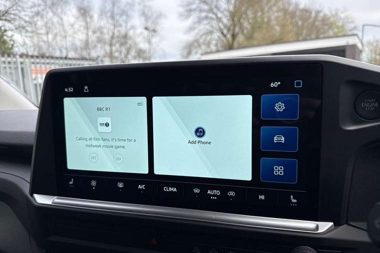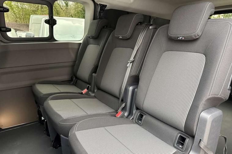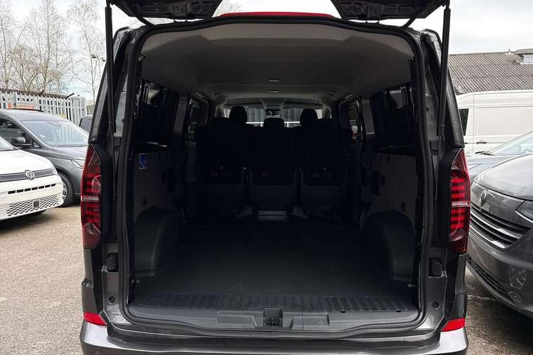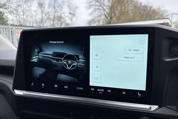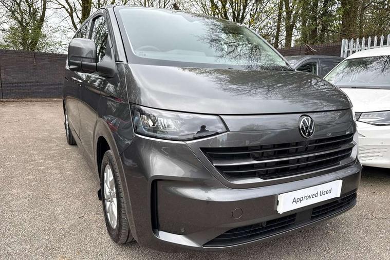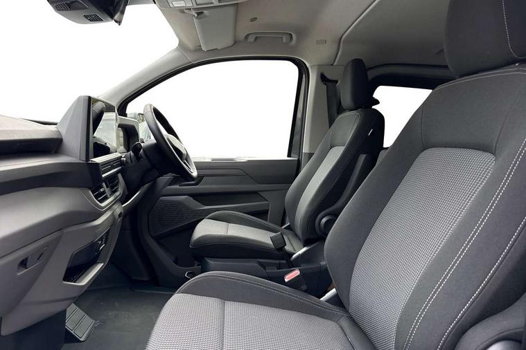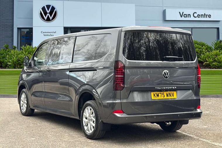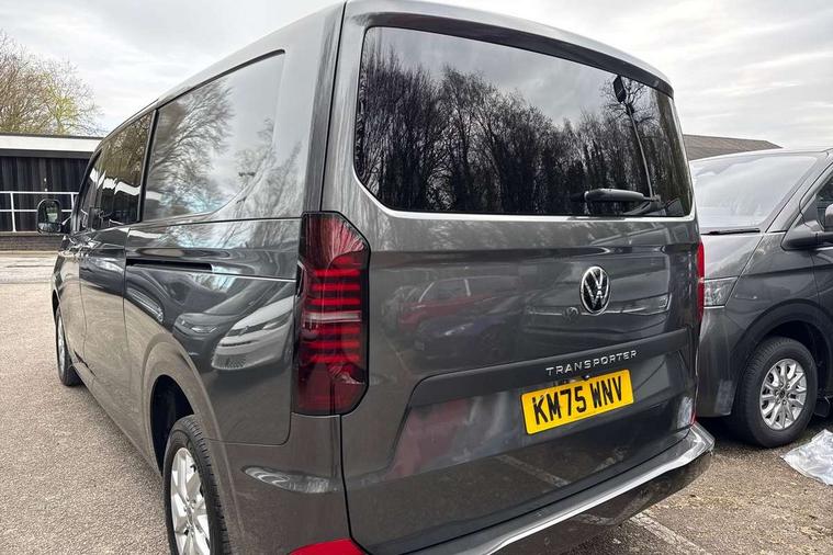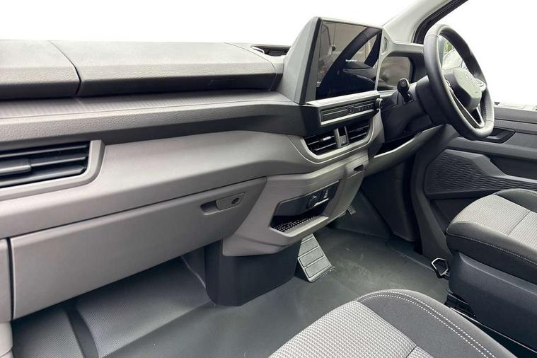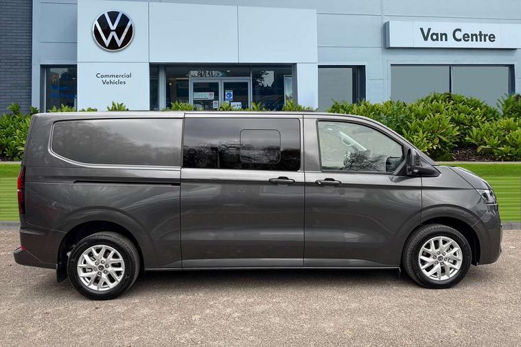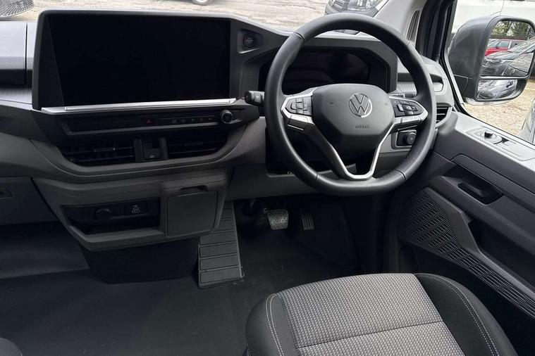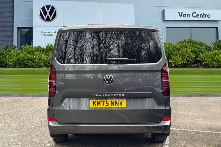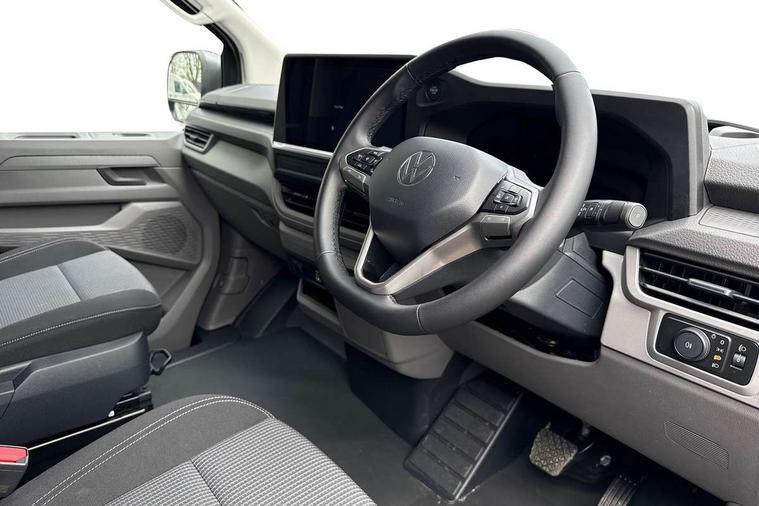 12" digital drivers display, 13" touchscreen infotainment display with wireless app connect and DAB radio, 5G Modem, Adaptive cruise control with predictive speed limiter and traffic jam assist, Dynamic road sign display, eCall emergency system, Front collision warning with braking, Identification label for N1 commercial vehicle registration, Lane assist with blind spot assist and exit warning system, PAS, Preparation of VW connect and connect plus, Wireless mobile phone charging, Wrong way driver warning, 6 speakers, Body colour bumpers front and rear, Body coloured add on parts, Body coloured door handles, Body coloured door mirrors, Body coloured radiator grille, Dual sliding doors with pop-out window vents (left and right) for 2nd row, Electrically heated, adjustable and folding door mirrors, Heat reflecting glass in front side windows, privacy glass in rear side windows and rear window, Heated rear window, Laminated windshield made of heat-reflecting glass, Mud flaps front and rear, Rear tailgate, Rear Transporter nameplate in black grained decorative trim, Rear window wiper with washer system, Sliding doors on driver and front passenger side, Vehicle opening configuration 1x 1st row of seats, 2x all doors, 12 pin terminal block, 12V outlet in centre console and 12V outlet on rear right D-pillar, 2 LED lights in roof of load compartment, 3 single seats in 2nd row, folding and tumbling, 2x isofix and top tether, 3x additional super bright LED lights in load compartment, 4 way height and tilt adjustable head restraints, 6 tie downs for securing goods in the passenger/load compartment, 7x USB in cab and 2x USB in passenger compartment, Black plastic scuff plate for sliding door in cargo, illuminated, Black plastic scuff plate in front without illumination, Covers in the bottom area of all side panels and doors in the load compartment, Dimming breakaway interior rear view mirror, Gear selector lever on steering wheel, Grab handle on A-pillar passenger side, Illuminated glove compartment with lockable lid, LED light units for cab and passenger compartment, Overhead storage compartment, Single driver and single passenger seat in cab, Striped fabric upholstery, Without bulkhead, Without floor covering in load compartment, Driver and front passenger airbag with front passenger airbag deactivation, Dual tone horn, Seat belt pretensioner for front seats, Side and curtain airbags in cab curtain airbags in passenger compartment, Anti theft alarm system with interior monitoring in cab, backup horn and towing protection, Anti-theft wheel bolts, Central locking, Preparation for alcohol ignition interlock, 5+ Promise, Alternator - 230A, Electromechanical brake booster, Electronic Stability Control (ESC),