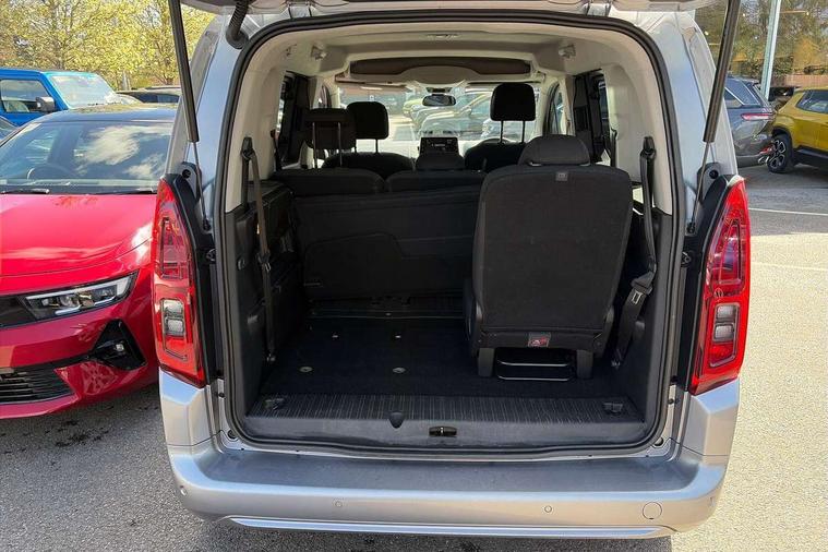 3.5" colour information display, Central facia display with digital clock, outside air temperature and audio information, Driver alert system, Driver information centre with trip computer, Forward collision warning, Front and rear parking sensors, Front camera system, Instrumentation - Speedometer, rev counter, low fuel gauge warning light + water temperature gauge warning light, shift up/down indicate light, Lane departure warning with lane change assist, Multi function trip computer - Trip odometer, vehicle range, average speed and fuel economy, instantaneous fuel economy and driving time, PAS, Remote control boot opening, Service indicator, Speed sign recognition, Steering wheel mounted audio controls, 2 speed wipers+variable intermittent wipe, Automatic lighting control, Body colour bumpers, Body colour bumpers, side protection mouldings and sliding rail cover, Body colour door handles, Body colour door mirrors, Chrome-effect front grille bar, Daytime running lights, Dipping rear view mirror, Electric front windows + drivers one touch, Electrically adjustable and heated door mirrors, Front fog lights, Glazed tailgate, Heated rear windscreen, Nearside and offside sliding side access door with opening windows, Rear wiper, Solar heat absorbing windscreen, Tinted glass including windscreen, Welcome lighting, 12V electrical accessory socket in centre console, 2 folding and removable seats in 3rd row, 2 individual 3rd row seats, 4 way adjustable front head restraints, 4 way manually adjustable passenger seat with height, reach, tilt, backrest and headrest, 6 way manually adjustable drivers seat, 60/40 split/folding 2nd row of seats, Adjustable dashboard illumination, Anti submarining ramps in front seats, Chrome inner door handles, Delay courtesy light function, Drawer under drivers seat, Driver's lumbar support, Driver/passenger reading lights, Driver/passenger sunvisors with illuminated vanity mirrors + covers, Front body-lock seatbelt pretensioners, Front seat back map pockets, Front/rear courtesy lights, Full width overhead storage shelf with ambient lighting, Height/reach adjust steering wheel, Large open storage pocket behind infotainment screen, Luggage compartment cover, Mistral cloth upholstery, Open storage compartment below glovebox, Pollen filter, Rear adjustable/removable headrests, Rear door pockets with bottle holders, Small open storage compartment behind gear knob, Two drinks holder in centre console, Two facia mounted drinks holders, Two foldable table with cupholders, Two large and two small front open door pockets, USB charging and infotainment in rear of centre console, USB charging point in glovebox, Sight and light Pack - Combo Life, ABS, Automatic emergency braking with pedestrian detection, Child locks on rear doors, CSC - Cornering stability control, Deactivation switch for front passenger front and side impact airbags, Deflation detection system, Deformation zones front and rear, Driver drowsiness alert system, Driver/Front Passenger airbags, Drivers and front passenger lap belt pretensioner system, Electronic brake force distribution, Emergency brake assist, Energy absorbing steering column, ESP, Front seat side impact airbags, Front seatbelt force limiters, Front seatbelt unfastened audible warning and warning light, Full size curtain airbags for driver, front passenger and outer rear passenger seats, Hill start assist, ISOFIX child seat mountings incorporating top tether anchor points located on second row rear seats, Manual park brake, Motor Slip Regulation (MSR) - Engine Drag Torque Control, Reinforced passenger safety cell, Seatbelt warning, Side impact protection beams, Three 3 point rear seatbelts, Traction control, Two inertia reel seatbelts - 3rd row, 2 remote folding keys, Electronically protected audio equipment, Engine deadlock and immobiliser, Locking wheel nuts, Remote control central locking, Visible vehicle identification number, Chrome instrument cluster dial rings, 16" 7 spoke alloy wheels,