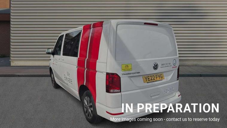 Adaptive cruise control, Child seat anchors ISOFIX and top tether in 2nd row of seats, Cross wind assist, Dimmable illuminated instruments, Driver alert with black and white multi function display plus, eCall emergency system, Electromechanical speed sensitive power steering, height and longitudinally adjustable steering column, Forward collision warning front assist with autonomous emergency braking, Headlight range control, Mobile phone interface, Without voice control, 2 USB interfaces type C in dashboard, 4 speakers with 2 tweeters and 2 woofers, Composition colour radio with 6.5" touchscreen, Digital radio reception (DAB+), Volkswagen app connect, Automatic headlight control, leaving home and manual coming home feature, Front fog lamps with cornering light, Green heat insulating glass, Heated front windscreen, Illuminated steps in passenger/load compartment, Left convex exterior mirror, Power adjustable and heated exterior mirrors, Power folding door mirrors, Privacy glass from the B-pillar and heat-insulating glass in front, Radiator grille with 2 chrome trims, Rear window with heated insulating glass, heated rear window wiper and washer system, Right convex exterior mirror, Tailgate closing with unlatching from the inside, Transporter nameplate on the rear fender, Windshield wiper intermittent control with rain sensor for windshield wipers, Without adhesive film, 3 spoke leather wrapped multi function steering wheel, Additional sound deadening measures in cab and passenger compartment, Auto dimming breakaway interior rear view mirror, Comfort headliner in cab, hardboard roof trim in passenger and load compartment, Dust/pollen filter, Folding grab handles and storage compartments on cab seats, reading light, Front seats on the right in 1st row of seat, Glove compartment with illumination, Heavy duty tool kit and jack, Interior plastic loading edge protection, Lashing rings for load restraint system, LED Interior lighting in load and passenger compartment, Medium height for vehicles with window aperture hardboard side trim panels in passenger/load compartment, Refrigerant R134a, Standard lower part dashboard in palladium, Without partition, Without seats in 3rd row of seats, Comfort pack - Transporter, Exterior pack without fog light- Transporter, Light and vision pack - Transporter, Non smoker pack - Transporter, 3 point height adjustable seat belts on outer seats cab with electric pretensioners, Driver and front passenger airbag with front passenger airbag deactivation, Power operated child safety lock, Single tone horn, Warning buzzer and light for driver seat belt not fastened, Anti theft alarm system with interior monitoring in cab, backup horn and towing protection, Lockable wheel bolts, 16" chassis with 16" brake system, 70 L volume fuel tank, Additional 12V socket, Diesel particulate filter, Electronic stability control, ABS, ASR with deactivation button, hill start assist and brake assist system, Speed limiter, Start/stop system with regenerative breaking, 16" Clayton alloy wheels, Wheel trims,
