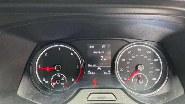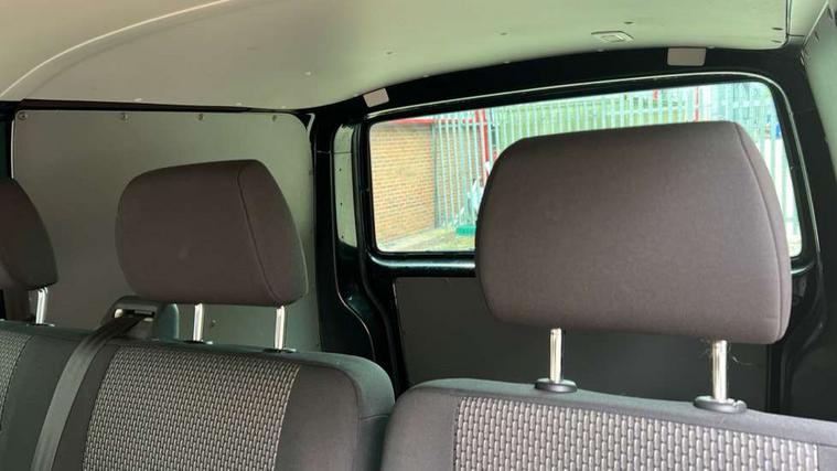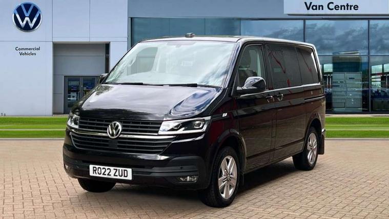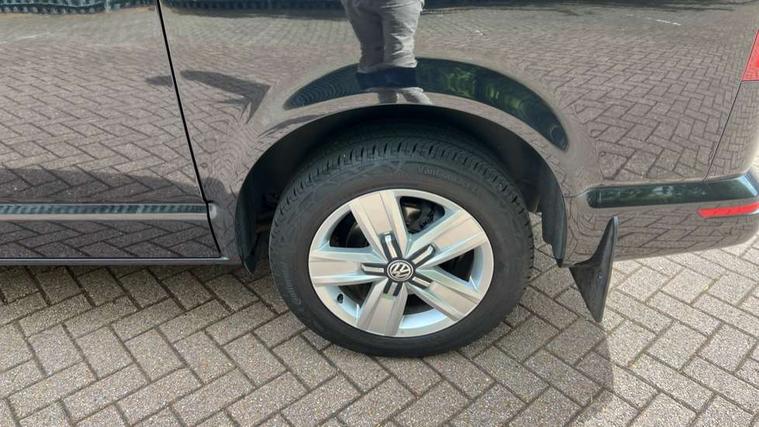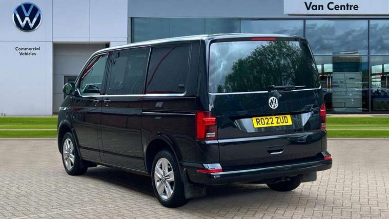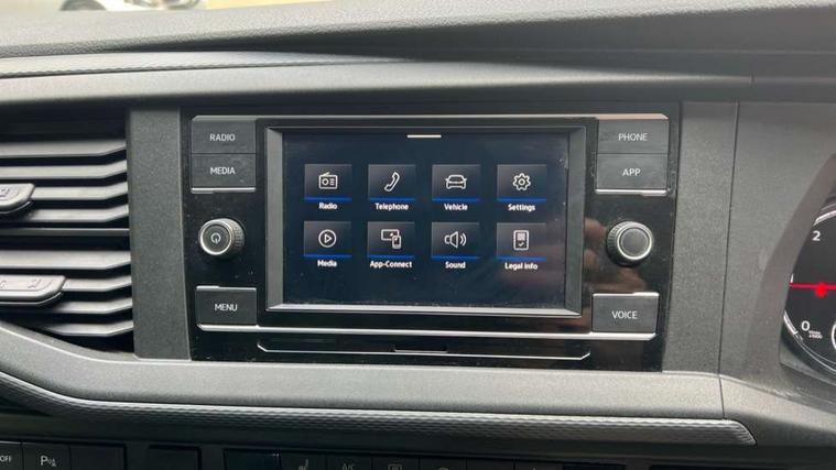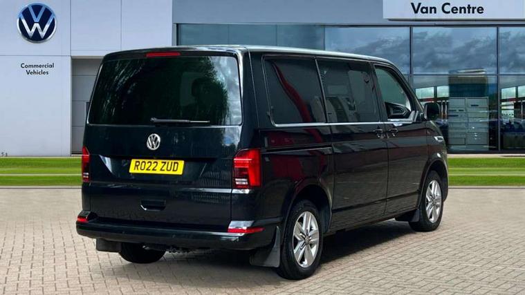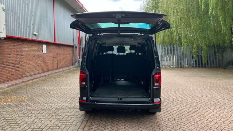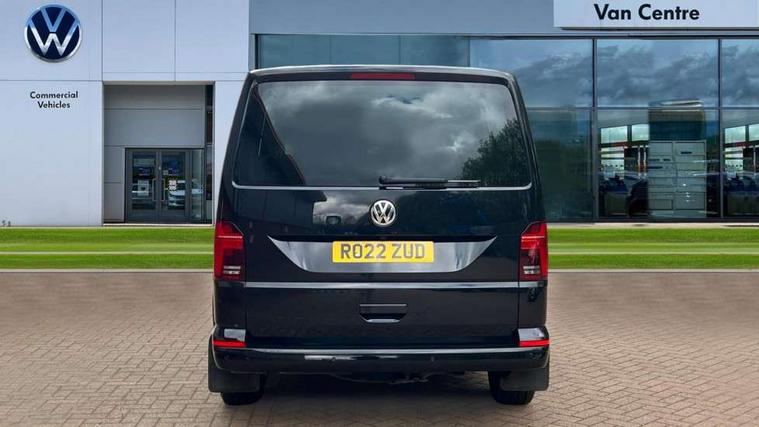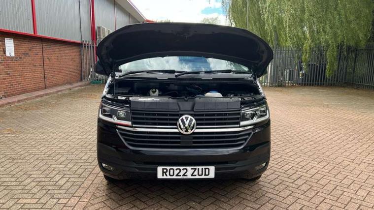 Adaptive cruise control, Child seat anchors ISOFIX and top tether in 2nd row of seats, Cross wind assist, Dimmable illuminated instruments, Driver alert with black and white multi function display plus, eCall emergency system, Electromechanical speed sensitive power steering, height and longitudinally adjustable steering column, Forward collision warning front assist with autonomous emergency braking, Headlight range control, Mobile phone interface, Without voice control, 2 USB interfaces type C in dashboard, 4 speakers with 2 tweeters and 2 woofers, Composition colour radio with 6.5" touchscreen, Digital radio reception (DAB+), Volkswagen app connect, Automatic headlight control, leaving home and manual coming home feature, Front fog lamps with cornering light, Green heat insulating glass, Heated front windscreen, Illuminated steps in passenger/load compartment, Left convex exterior mirror, Power folding adjustable door mirrors with separately heated, Privacy glass from the B-pillar and heat-insulating glass in front, Radiator grille with 2 chrome trims, Rear window with heated insulating glass, heated rear window wiper and washer system, Right convex exterior mirror, Tailgate closing with unlatching from the inside, Transporter nameplate on the rear fender, Windshield wiper intermittent control with rain sensor for windshield wipers, Without adhesive film, 3 spoke leather wrapped multi function steering wheel, Additional sound deadening measures in cab and passenger compartment, Auto dimming breakaway interior rear view mirror, Comfort headliner in cab, hardboard roof trim in passenger and load compartment, Dust/pollen filter, Folding grab handles and storage compartments on cab seats, reading light, Front seats on the right in 1st row of seat, Glove compartment with illumination, Heavy duty tool kit and jack, Interior plastic loading edge protection, Lashing rings for load restraint system, LED Interior lighting in load and passenger compartment, Medium height for vehicles with window aperture hardboard side trim panels in passenger/load compartment, Refrigerant R134a, Standard lower part dashboard in palladium, Without partition, Without seats in 3rd row of seats, Comfort pack - Transporter, Exterior pack without fog light- Transporter, Light and vision pack - Transporter, Non smoker pack - Transporter, 3 point height adjustable seat belts on outer seats cab with electric pretensioners, Driver and front passenger airbag with front passenger airbag deactivation, Power operated child safety lock, Warning buzzer and light for driver seat belt not fastened, Anti theft alarm system with interior monitoring in cab, backup horn and towing protection, Lockable wheel bolts, 16" chassis with 16" brake system, 70 L volume fuel tank, Diesel particulate filter, Electronic stability control, ABS, ASR with deactivation button, hill start assist and brake assist system, Speed limiter, Start/stop system with regenerative breaking, 17" Devonport silver alloy wheels, Wheel trims,