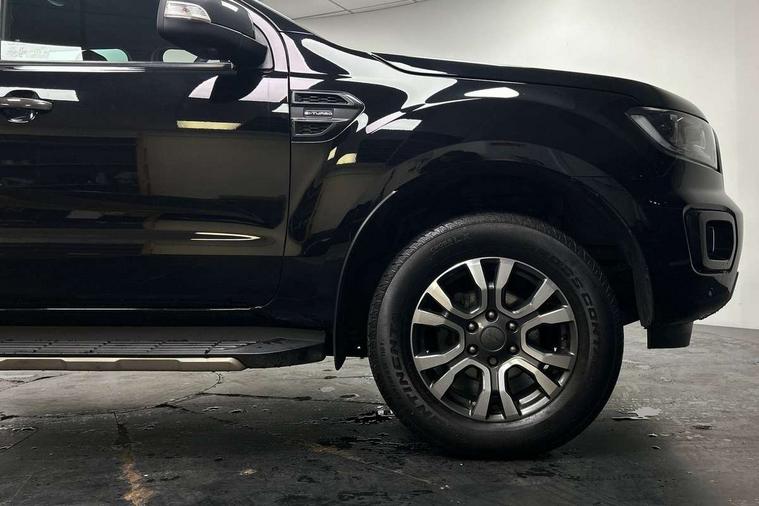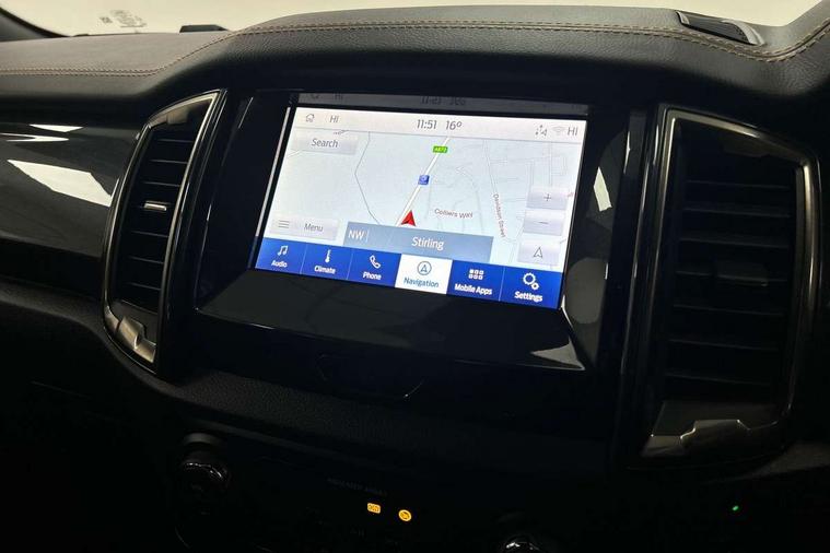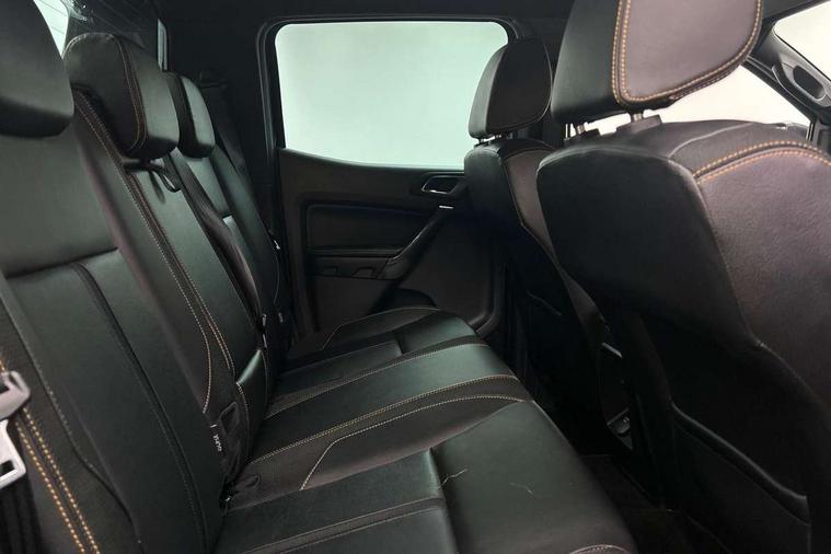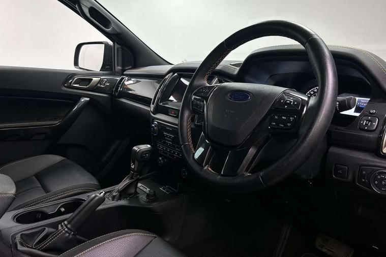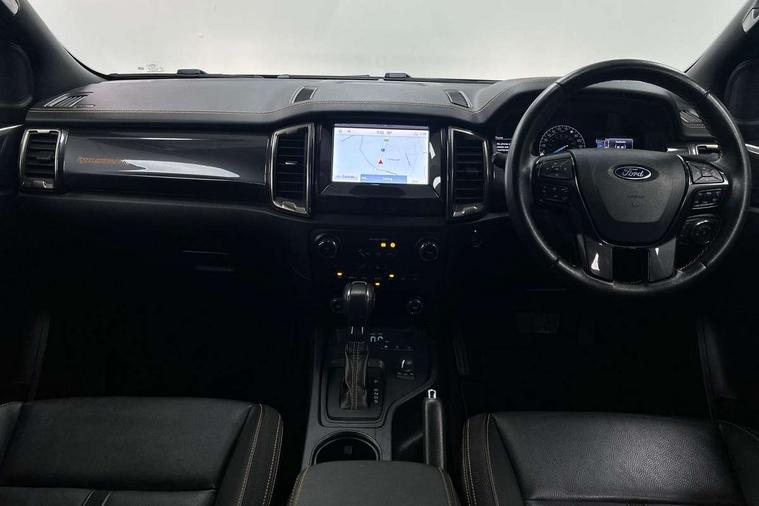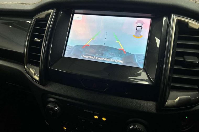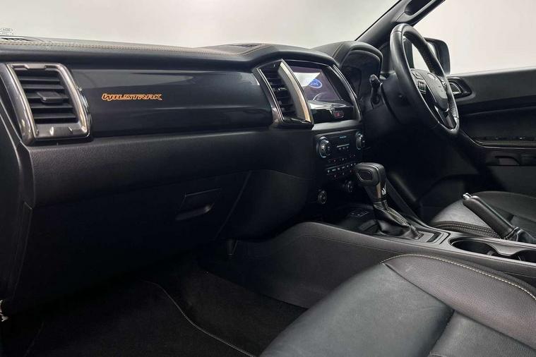 2 key fob, Collision mitigation braking system, Electric power assisted steering, Fixed rear view camera, Intelligent speed assistant, Lane keeping aid, Traffic sign recognition, Trip computer, Automatic headlights, Body coloured plastic front bumper, Boulder grey exterior door handle, Boulder grey exterior door mirror, Boulder grey radiator grille, Daytime running lights, Dual power heated fold back door mirror with puddle lamp and signal, Electrically operated windows with one shot driver's window, Electrochromic interior mirror, Front splash guard and mud flaps, Heated windshield and rear window, High mounted stop lamp with cargo area light, LED Front fog lamp, LED projector headlamps, Moulded in colour tailgate handle, Painted front fender grille, Privacy glass, Rain sensitive windshield wipers, Rear bumper chrome under-bar, Rear bumper step in boulder grey, Rear mudflaps, Roof rails, Side step with brushed inserts, Sports bar, Tailgate - Easy-lift/lower mechanism, Under hood engine cover, Underbody protection, Centre console coolbox, Chrome interior door handle, Driver seat back mounted map pocket, Dual control system - Electronic air temperature control (EATC), Ebony headliner, Heated front seat, Journey grain partial leather upholstery with Wildtrak logo, Leather gearknob, LED ambient interior lighting, Power adjustable 8 way driver seat, Premium front and rear floor mats with Wildtrak logo, Reach and rake adjustable steering column, Roof storage for driver sunglasses, Sport leather stitched steering wheel, Tie down rails and rope hooks, Wildtrak door trim panel insert, ICE feature pack 129 - Ranger, 3 point inertia rear seatbelts, Driver and front passenger airbag, side airbag, curtain airbag and driver knee airbag, ISOFIX child safety seat attachment, Seatbelt reminders for driver and front passenger, Tyre pressure sensors, Double locking power door lock with flip key, Immobiliser, Locking wheel nuts, Passive anti theft system, Passive keyless entry and start system, Power tailgate lock, Spare wheel lock, Thatcham category 1 alarm security system, ABS, ESP and roll over mitigation, Emergency brake assist, Engine start/stop system, Locking rear axle, Power converter,