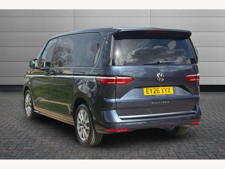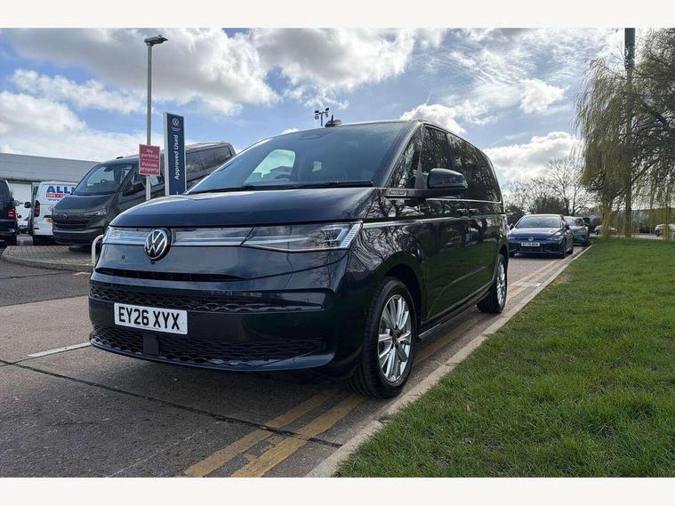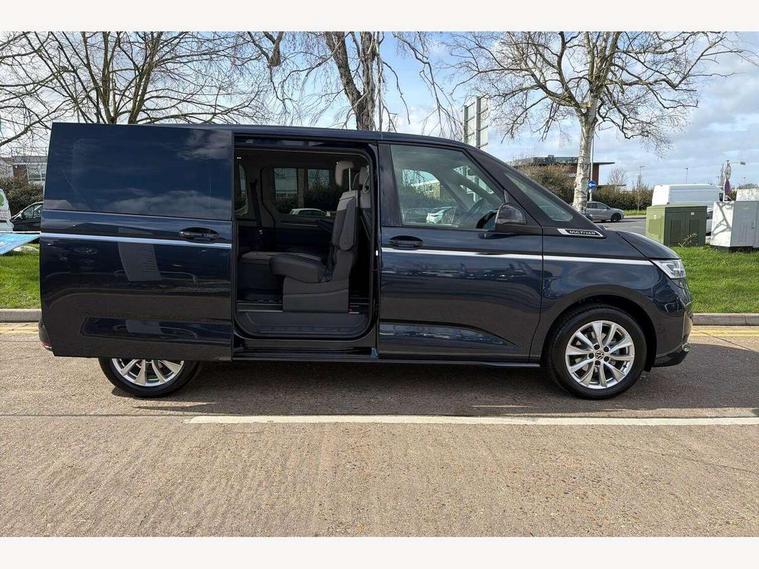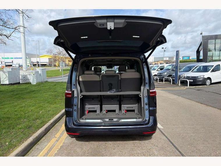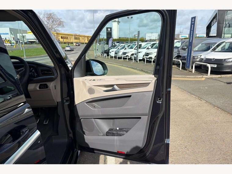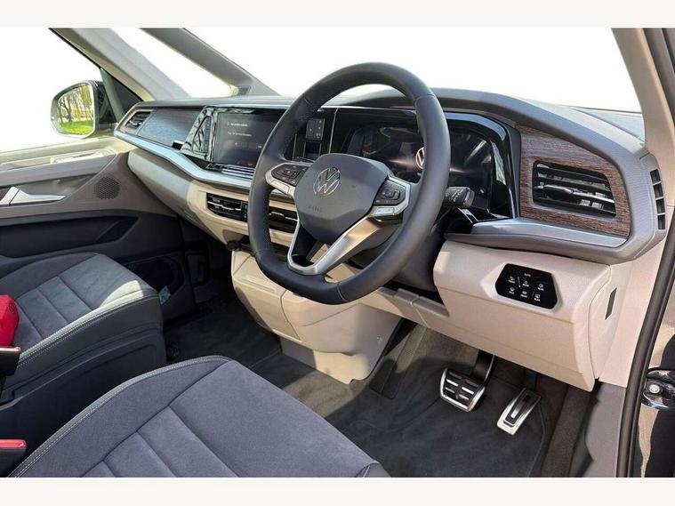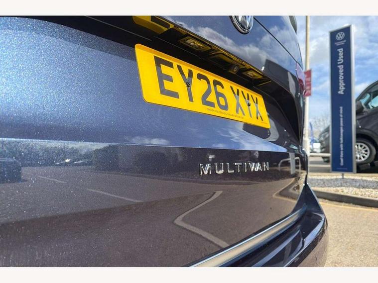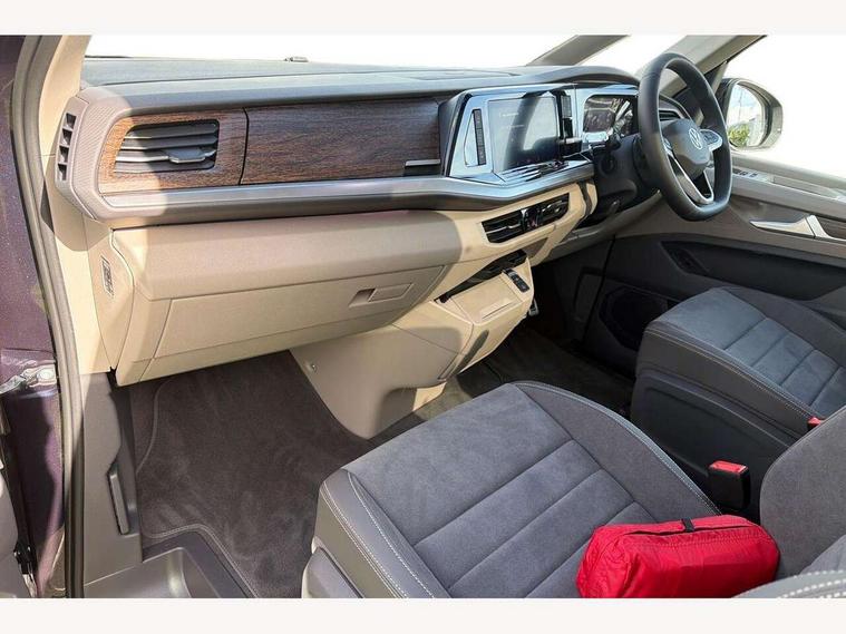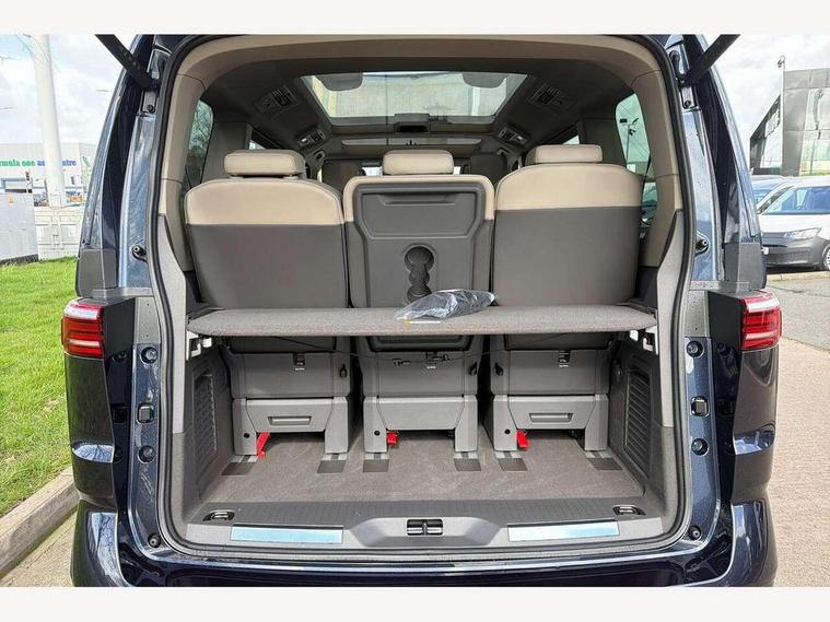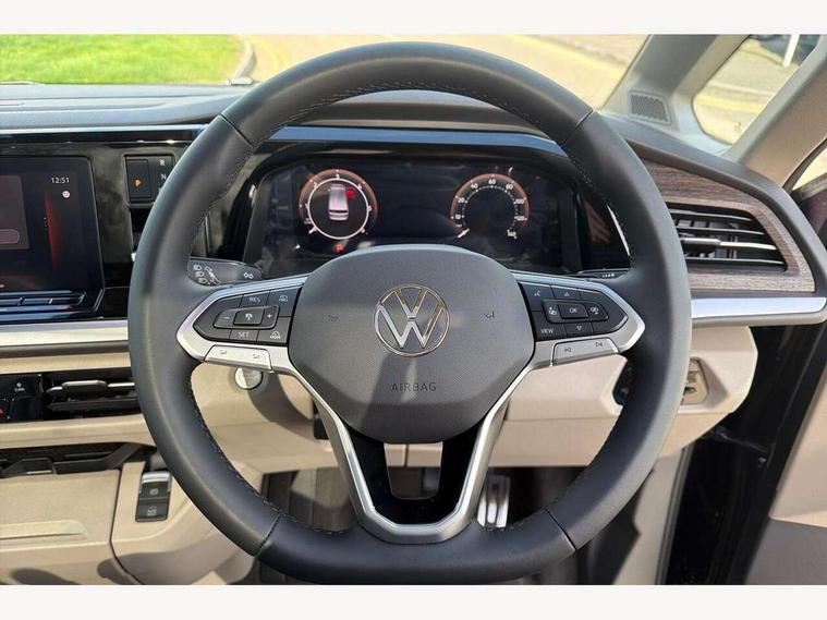 Adaptive cruise control with C2X including front assist and city emergency braking system, Digital Cockpit Pro with 10.25" colour display with adaptable display includes navigation map display, telephone contact images and audio information, Discover media pro navi system with 10" colour touch incl DAB+radio/appconnect for apple carplay/android auto/streaming and internet/gesture control, Driver alert system, Dynamic road sign display, eCall emergency system, Electrically-operated tailgate opening and closing function (Easy open), operated via foot movement under rear tailgate, Emergency assist, Front Cross Traffic Alert, Lane change system with side assist including blind spot monitor, rear traffic alert and exit warning system, Lane keeping system Lane Assist, Mobile phone interface, PAS, Semi-automated driving assistance, Tailgate, Travel assist, Voice control system including Alexa web app, We connect preparation, Electronic differential lock, 2 USB-C ports in front and 4 USB-C ports in passenger compartment, Additional interior noise reduction measures, Advanced high beam control dynamic light assist for LED matrix headlamps, Automatic headlight control with welcome home lights, Body coloured exterior door handles, Break away auto dimming rear view interior mirror, Chrome trim decorative strip mid-way on side and rear, Dynamic headlight range control with dynamic cornering light, Electrically adjustable, heated and folding door mirrors, Front fog lights, Glossy black painted radiator grille with 2 illuminated chrome trims, Heated rear window with window wiper and washer system, Heated windscreen, High gloss black exterior mirror housing, IQ.Light LED matrix headlamps with LED separate daytime running light, Laminated safety glass windshield, heat and sound insulating, LED 3rd brake lamp, LED rear combination lamps, Rear wiper, Stainless steel tailgate trim, Surround lighting in door area and tailgate with logo projection in door area, Windshield wiper intermittent control with rain sensor, 1 x 12V sockets on the dash panel, 12V socket in passenger compartment, 3 seat bench in 3rd row, 30 colours ambient interior lighting and tailgate surround lighting, 7 single seats removable/movable, Carpet mats in cab, Climatronic 3 zone air conditioning with additional control panel in passenger compartment, Front and rear head restraints, Grab handles on A pillar for access, on driver and front passenger side, Height adjustable seats, Height and longitudinal adjustment steering wheel with gear shift paddles, Illumination lockable glovebox compartment, ISOFIX (including i-size) and top tether in all seats in 2nd and 3rd rows, LED luggage compartment lighting X 2, Load compartment partition to 20kg with bag hooks and luggage net, Luggage compartment lid power latching with unlatching from inside, Multifunction leather steering wheel with tiptronic, Reinforced carpet floor covering in passenger compartment, Removable armrests for front seats with power adjustable lumbar support and folding table for 2nd row passenger seats, Single front passenger seat, Slidable multifunction table/centre console with 3 cup holders, Stainless steel pedals, Storage compartment under the 2nd and 3rd row seat and two waste bins, Sun visors with illuminated vanity mirror, ticket holder on driver side with airbag warning label on sunvisor and B-pillar, Easy open package - Multivan, 3x3 point rear seat belts, ABS, Automatic post collision braking system, Autonomous emergency braking front assist with pedestrian and cyclist monitoring, Driver and front passenger airbag with front passenger airbag deactivation, Electric childproof lock, Electronic stability control (ESC) and Electromechanical brake booster, ESP, First aid kit with warning triangle and safety vest, Front disc brakes, Hill hold assist, Seat belt warning for the drivers and all passengers seats if unfastened, Side and curtain airbags for driver and front passenger, curtain airbags for outer seats in rear, centre airbag in front, Single tone horn, Traction control, Tyre pressure monitoring system, Anti theft alarm system with interior monitoring in cab, backup horn and towing protection, Central locking system with interior control and safe lock, Keyless advanced with keyless entry, Start/stop button on centre console, Dark woodgrain optic decorative inserts,