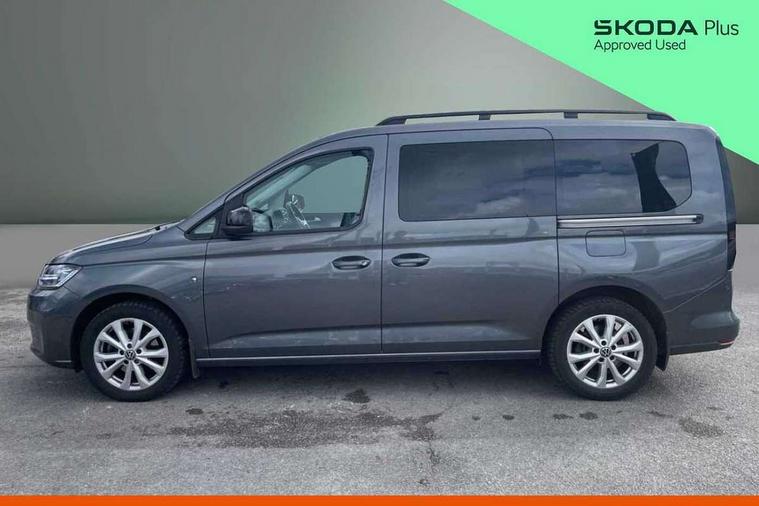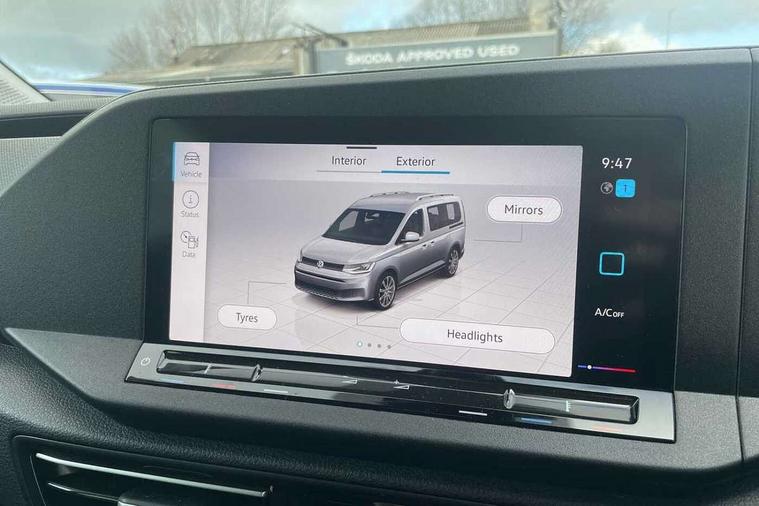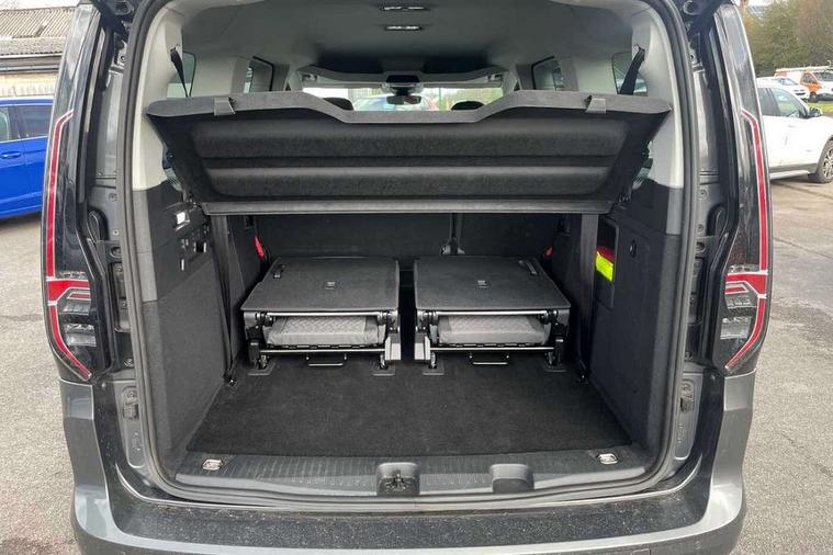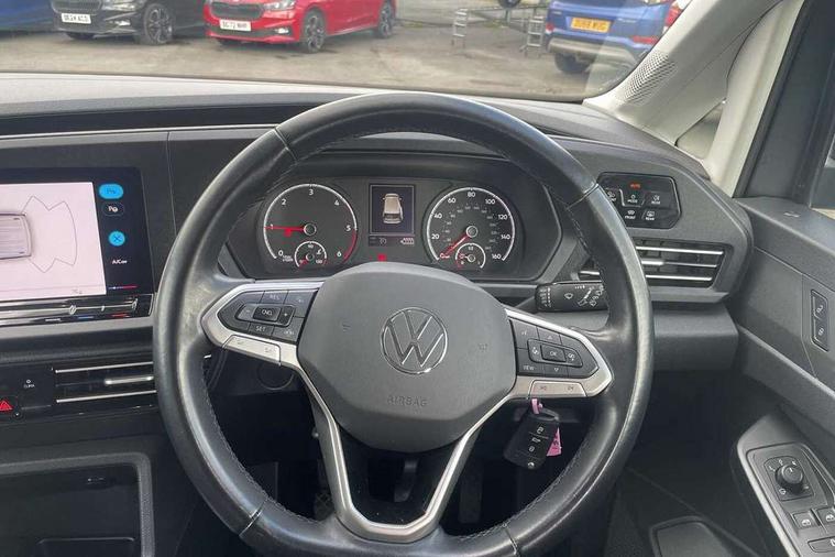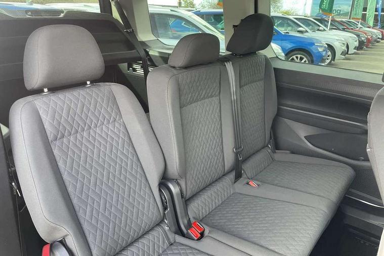 Driver alert system, eCall emergency call system, Lane keeping system, Multi function display, On board computer, Service interval indicator, Start/stop system with regenerative braking, Tailgate with window, We connect plus preparation, Diesel particulate filter, Electronic differential lock, 2 Type C USB, DAB Digital radio, Automatic hazard lights activation under emergency braking, Automatic headlight levelling system, Black painted exterior mirror housings, Body colour bumpers, Body colour door handles, Electric front windows, Exterior mirrors - power adjustable, heated and power folding, Fixed side window in load/passenger compartment, Heat insulating windscreen, Heated rear window, LED rear combination lights, Rear window wiper and washer system with intermittent control, Silver sliding door rail, Third high level brake light, Twin near side and off side sliding doors, Windscreen wiper with variable intermittent delay and wash wipe system, 12V socket in passenger compartment, 2 single seats in 3rd row, 3 seat bench in 2nd row, 5 standard interior lights in passenger compartment, Backrest release for front passenger seat, Carpet floor covering in cab, Carpet floor covering in passenger compartment, Centre console high with armrests adjustable, Centre console with 2 cupholders, Door and side trim panel in fabric, Electrically controlled heating system, Folding table on front seat backrests, Front head restraints, Front passenger seat foldable, Glove compartment cover with light, Height adjustable head restraints, Interior light in headlining, Isofix on 2nd row outer seats, Leather gearshift knob/handle, Leather multifunction steering wheel, Lockable glove compartment with light, Manual adjustable lumbar support in front seats, Manual front seats with height adjustment, Reach and rake adjustable steering column, Rear head restraints, Removable waste bin with cover for cab, Seat occupied recognition for front seats, Sliding trunk cover, Split folding rear seat, Storage drawers under front seats, Sun visors with mirror and airbag label on front passenger, Trialog cloth upholstery, 3-point seat belts in front with pretensioner and height adjustment, 3x3 point rear seatbelts, Anti-lock braking system (ABS), Automatic post collision braking system, Autonomous emergency braking front assist with pedestrian and cyclist monitoring, Brake assist, Child locks on rear doors, Curtain airbag for outer seats in rear, Direct tyre pressure monitoring system, Driver and front passenger airbag with front passenger airbag deactivation, Electric parking brake with auto hold function, Electronic brake force distribution, Engine drag torque control, ESP, First aid kit with warning triangle and safety vest, Front centre airbag, Power operated child safety locks, Seat belt reminder, Side and curtain airbag for driver and front passenger, Traction control system (TCS), Anti theft alarm system with interior monitoring, backup horn and towing protection, Wheel bolts unlockable anti-theft protection, Decorative inserts in beige birch vein,
