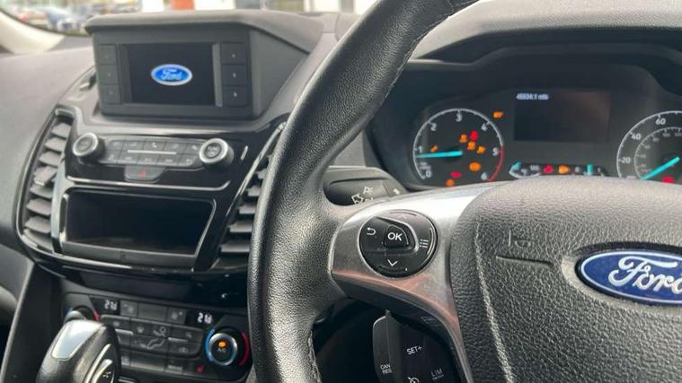 Easy fuel capless refuelling system, Ford Eco mode, On board modem with FordPass Connect, PAS, Trip computer, Steering wheel mounted audio controls, Active grille shutter, Body colour side protection mouldings, Body coloured door handles, Body coloured door mirrors, Body coloured front bumper, Body coloured rear bumper end caps, Electrically folding and heated door mirrors, Front electric windows with power up and down, Quickclear heated windscreen, Rain sensitive wipers and auto headlights, Static cornering lights including front fog lights, Cargo area tie down loops, Easy clean floor, Glovebox with lid, Interior roof rack / Interior Overhead stowage, Ligne cloth upholstery, Load box LED lights, Plastic cargo area lining, Reach and rake adjustable steering column, Driver seatbelt reminder, Driver's airbag, 2nd remote key, Configurable Unlocking, Immobiliser, Keyless start, Remote central double locking, Thatcham category 1 alarm with 2nd remote key, ABS + EBD, Auto start/stop system, ESC, Heavy duty battery, Hill start assist, 16" 5 spokes sparkle silver alloy wheels,