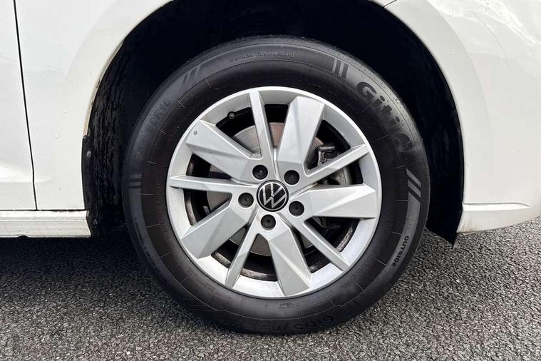 Bluetooth - Mobile phone interface, Car2X technology, Driver alert system, eCall emergency system, Intelligent Speed Assist, Lane assist, Seatbelt warning indicator, Service indicator, Start-stop system with regenerative braking, 2 USB interfaces type C in dashboard, App-Connect - Wireless for Apple CarPlay, DAB Radio, We Connect Plus Preparation, Automatic hazard light activation under emergency braking, Black painted exterior mirror housings, body-colored door handles and Silver sliding door rail, Body coloured bumpers, Electric front windows, LED rear combination lights, LED rear tail lights, Roof rail preparation, Windscreen wiper with variable intermittent delay and wash-wipe system, Dimming breakaway interior rear view mirror, Electronically controlled heating system, ergoComfort seats for driver, Interior light in headliner incorporting LED technology, Lockable glove compartment door with light, Manual heating and ventilation system, Manual height adjustment for front seats and seat cushion inclination and depth adjustment on drivers seat, Multi function leather steering wheel, Power-adjustable lumbar support for drivers seat, Reach and rake adjustable steering column, Six lashing points for securing loads, Steering wheel paddle shift, Storage compartments under driver and front passenger seats, Sun visors with mirror, airbag label on front passenger sun visor, Winter pack plus - Caddy, 3-point seat belts in front, with pretensioner and height adjustment, Driver and front passenger airbag with front passenger airbag deactivation, Tyre pressure monitoring system, Anti-theft alarm system, interior monitoring, backup horn, and towing protection, Electronic engine immobiliser, Remote central locking with deadlocks, interior locking, Anti locking braking system (ABS), Automatic post collision braking system, Brake assist, Diesel particulate filter, Electric parking brake with auto hold function, Electronic brake force distribution (EBD), Electronic differential lock (EDL), Electronic stabilisation programme (ESP), Engine drag torque control (MSR), Hill hold assist, Traction control system (TCS), Decorative beige birch vein inserts, Wheel bolts with anti-theft protection (unlockable),