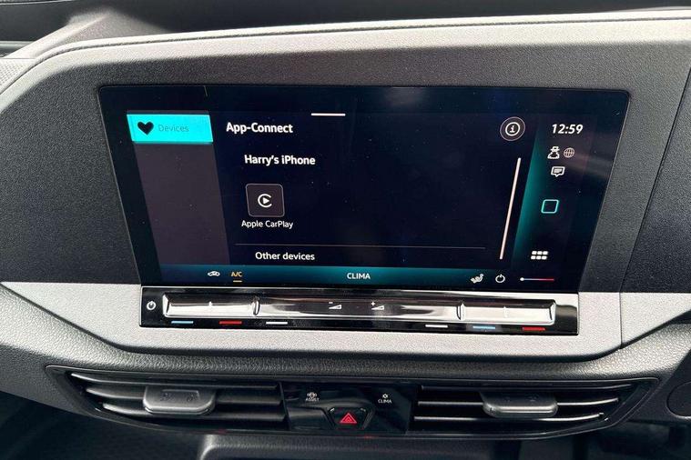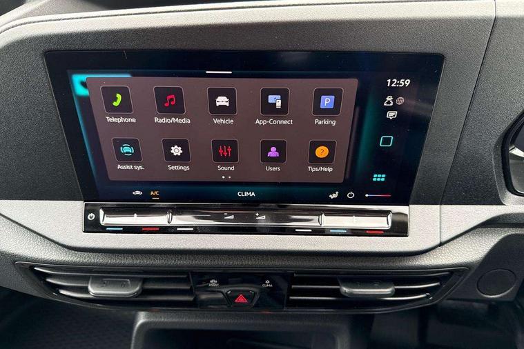 Bluetooth - Mobile phone interface, Car2X technology, Driver alert system, eCall emergency system, Intelligent Speed Assist, Lane assist, Seatbelt warning indicator, Service indicator, Start-stop system with regenerative braking, 2 USB interfaces type C in dashboard, DAB Radio, We Connect Basic Preparation, Automatic hazard light activation under emergency braking, Electric front windows, Heat insulating windscreen, Roof rail preparation, Windscreen wiper with variable intermittent delay and wash-wipe system, Dimming breakaway interior rear view mirror, Electronically controlled heating system, ergoComfort seats for driver, Interior light in headliner incorporting LED technology, Lockable glove compartment door with light, Manual heating and ventilation system, Manual height adjustment for front seats and seat cushion inclination and depth adjustment on drivers seat, Multi function leather steering wheel, Power-adjustable lumbar support for drivers seat, Reach and rake adjustable steering column, Six lashing points for securing loads, Steering wheel paddle shift, Storage compartments under driver and front passenger seats, Sun visors with mirror, airbag label on front passenger sun visor, 3-point seat belts in front, with pretensioner and height adjustment, Driver and front passenger airbag with front passenger airbag deactivation, Tyre pressure monitoring system, Anti-theft alarm system, interior monitoring, backup horn, and towing protection, Electronic engine immobiliser, Remote central locking with deadlocks, interior locking, Anti locking braking system (ABS), Automatic post collision braking system, Brake assist, Diesel particulate filter, Electric parking brake with auto hold function, Electronic brake force distribution (EBD), Electronic differential lock (EDL), Electronic stabilisation programme (ESP), Engine drag torque control (MSR), Hill hold assist, Traction control system (TCS), Decorative beige birch vein inserts, Full size wheel trims,