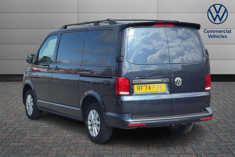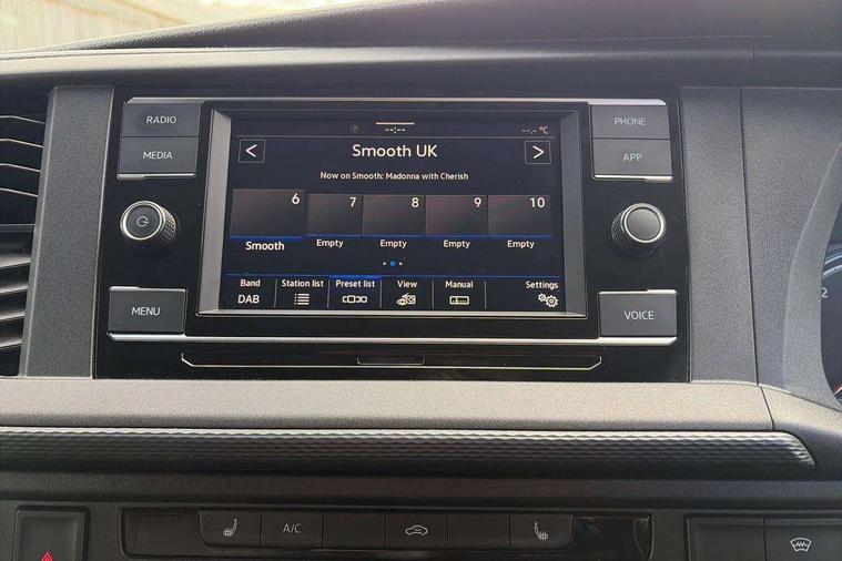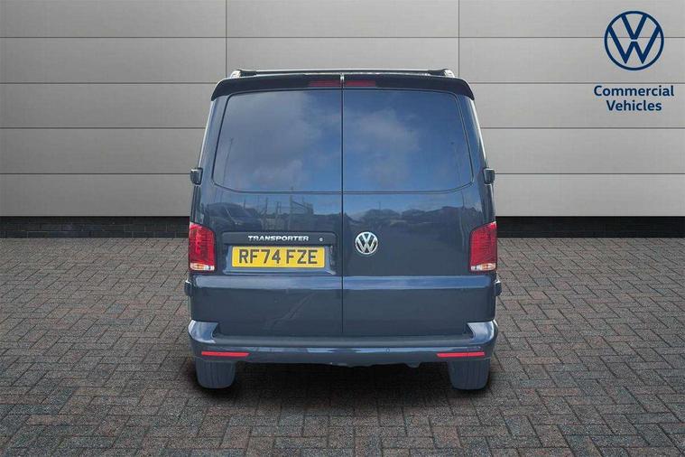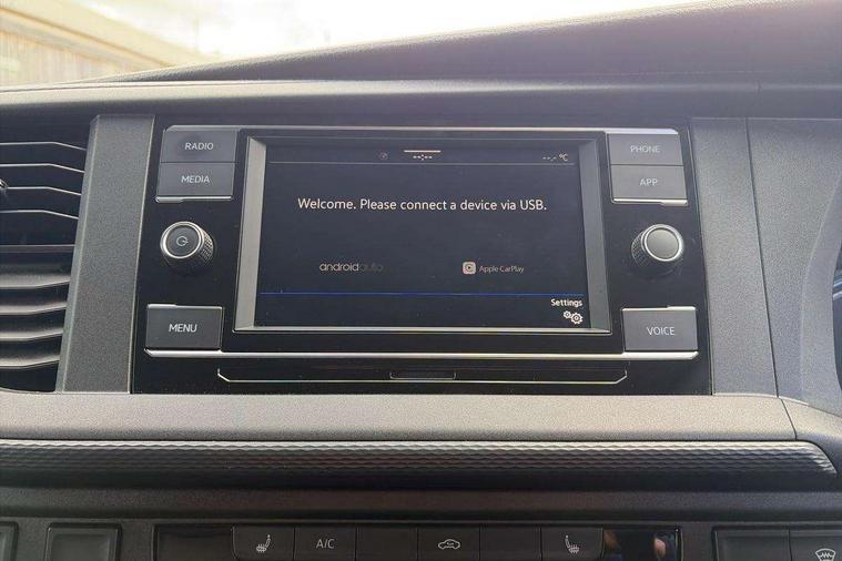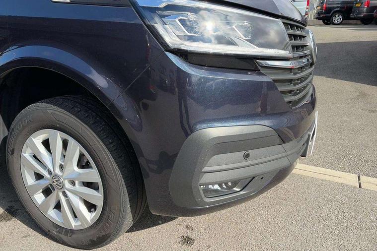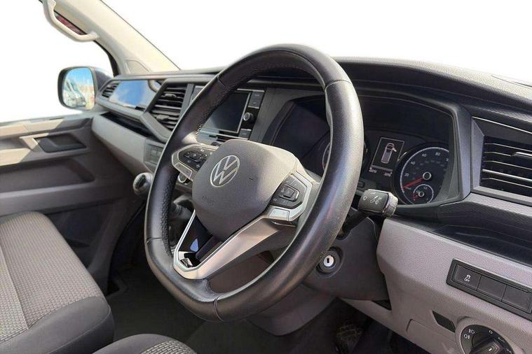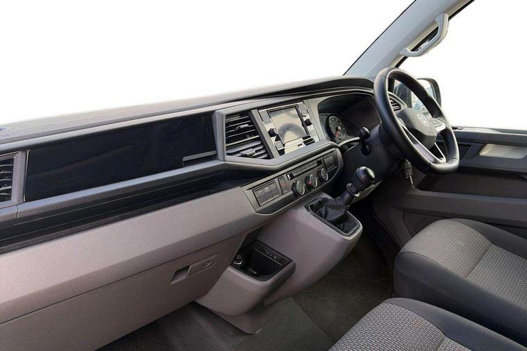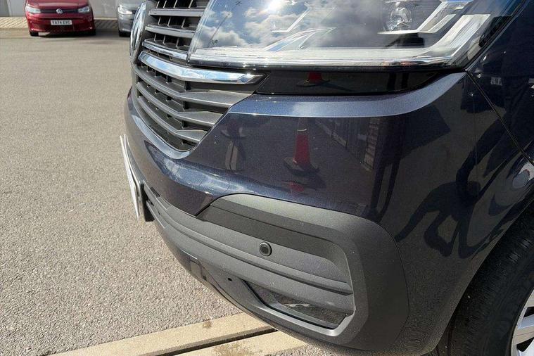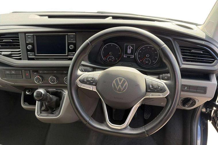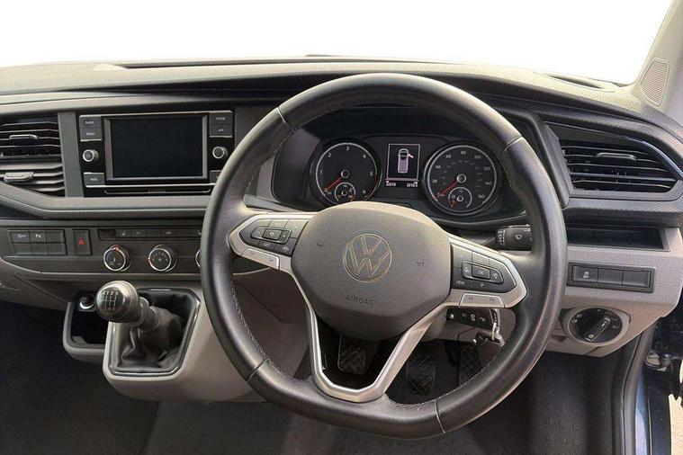 Adaptive cruise control, Cross wind assist, Dimmable illuminated instruments, Driver alert with Multi-function display plus, eCall emergency system, Forward collision warning front assist with autonomous emergency braking, Mobile phone interface, Multi function display plus with black and white display, 2 USB interfaces type C in dashboard, 4 speakers with 2 tweeters and 2 woofers, Composition colour radio with 6.5" touchscreen, Digital radio reception (DAB+), Volkswagen app connect, Closing rear wing door with unlatching from the inside, Front fog lamps with cornering light, Heat insulating glass (green) in cab and passenger/load compartment, Heated front windscreen, Left convex exterior mirror, Power folding adjustable door mirrors with separately heated, Radiator grille with 2 chrome trims, Rear wing doors without window apertures, Right convex exterior mirror, Transporter nameplate on the rear fender, 3 spoke leather wrapped multi function steering wheel, Comfort headliner in cab, hardboard roof trim in passenger and load compartment, Dust/pollen filter, Front and rear left without window closed side panel in load compartment, Front seats on the right in 1st row of seat, Heavy duty tool kit and jack, High partition, Interior plastic loading edge protection, LED Interior lighting in load and passenger compartment, Refrigerant R134a, Standard lower part dashboard in palladium, Storage compartments on cab seats and reading light, Without right side window apertures in passenger and load compartment, Comfort pack - Transporter, Exterior pack without fog light- Transporter, Light and vision pack - Transporter, Non smoker pack - Transporter, 3 point height adjustable seat belts on outer seats cab with electric pretensioners, Driver and front passenger airbag with front passenger airbag deactivation, Warning buzzer and light for driver and front passenger seat belt not fastened, Without child safety lock in passenger compartment, Anti theft alarm system with interior monitoring in cab, backup horn and towing protection, Lockable wheel bolts, 16" chassis with 16" brake system, Diesel particulate filter, Electronic stability control, ABS, ASR with deactivation button, hill start assist and brake assist system, Start/stop system with regenerative breaking, 16" Clayton alloy wheels,