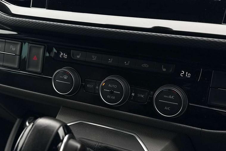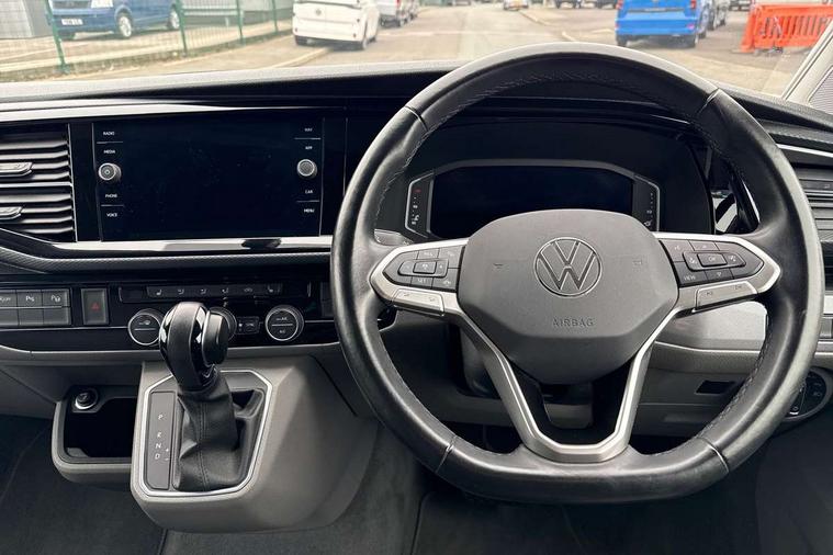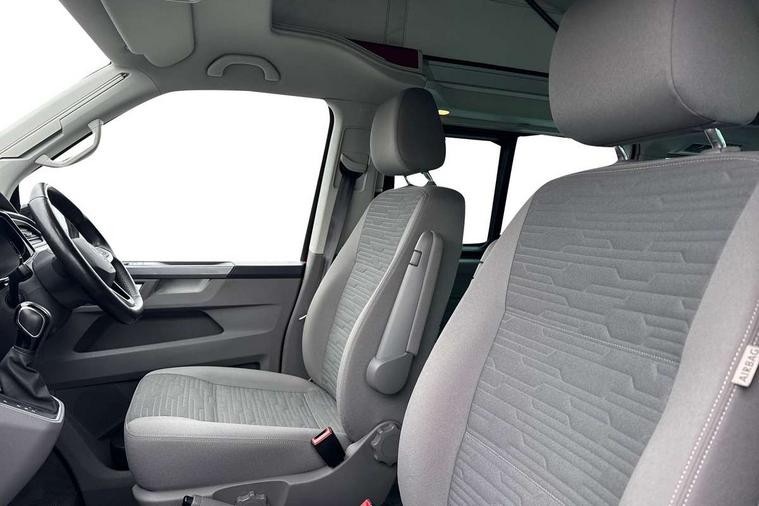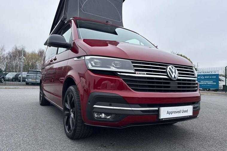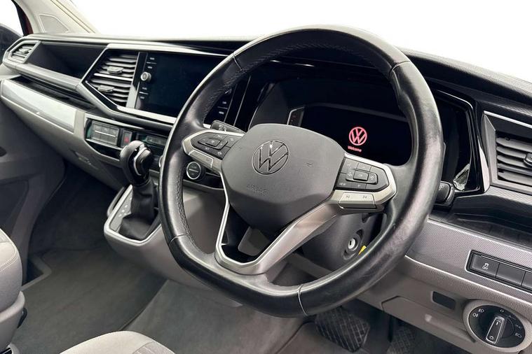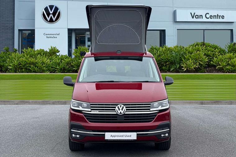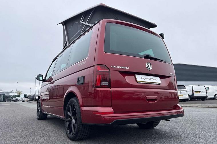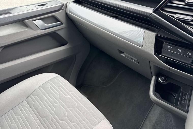 8" touch screen, Cross wind assist, Digital cockpit and driver alert system, eCall emergency system, Lane assist with side assist, Mobile phone interface, Navigation system preparation, Service interval indicator, Speed limiter, Start/stop system with regenerative braking, Tailgate latch without unlocking function from inside, Tailgate with window aperture and with power latching, Voice control system, Wired and wireless app connect, 17 inch chassis with 17 inch disc brakes in front and 16 inch disc brake in rear, 2 additional batteries with free maintanace including 1 additional battery with cut-off relay, 2 (type C) USB interfaces in dashboard, 8 speakers (4 tweeters + 4 woofers), Digital radio reception (DAB+), Regional code ECE for radio, Additional dust seals on the outside, Automatic headlight range control, Body colour bumpers, Body coloured door handles, California nameplate on the fender and on the rear, Electrically adjustable, heated, folding exterior mirrors, Electrohydrolic operated pop up roof with 3 windows and 1 front aperture, Front fog lights with cornering function, Heat insulating cab side windows, passenger compartment side windows tinted and with double glazing, Heated washer nozzles in front and washer fluid level indicator, High level 3rd brake light, LED headlamps with LED separate daytime running light, Left convex exterior mirror, Mounting rails on the roof (preparation for movable roof rack), Privacy glass with heat insulation, Radiator grille painted in black with 5 chrome trims, additional chrome trim at lower radiator grille, Rear boot, Rear window with insulating glass, rear window wiper and washer system, Right convex exterior mirror, Sliding window in front with fly screen and fixed window in rear in load passenger compartment left, Without left sliding door in load/passenger compartment, 1 waste bin in door storage compartment of the cab, 12V outlets in dashboard X 2, 2 velour floor mats, 2-seater bench/bed, movable along rail system and folds down into a two person bed, 230V inlet with charging feature for vehicle batteries and 230V outlet in the interior, 3 spoke leather wrapped multifunction steering wheel, Allergen filter, Armrest for both cab seats, Camping table for inside/outside in sliding door and 2 folding chairs in tailgate, Child seat anchors ISOFIX and top tether for Multivan/California in 2nd to 4th row of seats, Climatronic 3 zone air conditioning with 2nd evaporator, auxiliary heater, air conditioned headliner and additional passenger control, Dimmable illuminated instruments, Electromechanical speed sensitive power steering, height and longitudinally adjustable steering column, Front head restraints, Fully functional kitchen with gas hob, sink and 42 litre compressor cool box, Glove compartment with illumination, Grab handles on A pillar for access, on driver and front passenger side, Heated driver and front passenger seats, Illuminated steps in passenger/load compartment, Illuminated sun visors with mirror and airbag label on front passenger sun visor, Interior light concept for camper with comfort in passenger compartment incl additional LED light in the pop up roof for the loft bed, in the tailgate, Interior loading edge protection in plastic, Jack and tool kit, Manually adjustable lumbar supports for left and right single seat in the 1st row of seats, Operating voltage 12V including 230V outlet on driver seat, Plastic floor covering in passenger/load compartment, Programmable parking heater with radio remote control and auxiliary heater, Rear head restraints, Refrigerant R1234yf, Roof bed (2000 x 1200 mm) with spring plates and mattress, Soft folding grab handles on roof frame, Special interior noise suppression measures, Special sound deadening measures in cab and passenger compartment, Step illumination with California lettering, Swivel seat on the left, with lumbar support in 1st row of seats, Swivel seat on the right, with lumbar support in 1st row of seats, Waeco compressor fridge, Without height adjustment for driver and single passenger seats, Lights and vision pack - California Ocean, Smokers pack - California, Airbags - Drivers and front passengers side and curtain airbags, Driver/Front Passenger airbags, Electronic stability control, ABS, ASR, EDL, brake assist system, Front assist with Autonomous emergency braking for Adaptive cruise control (ACC), Height adjustable 3 point seat belts on outer seats in cab with electric pretensioners, Hill start assist, Manual passenger airbag deactivation function, Power operated child safety locks, Single tone horn, Warning buzzer and light for driver seat belt not fastened, Anti theft alarm system with interior monitoring in cab, backup horn and towing protection, Central locking system with radio remote control, system controls inside and safelock, Lockable wheel bolts, Comfort dashboard lower part in palladium with chrome elements and bezels painted in black,
