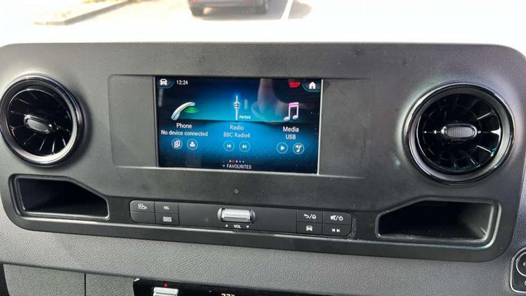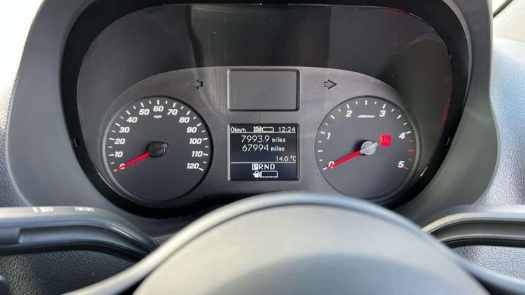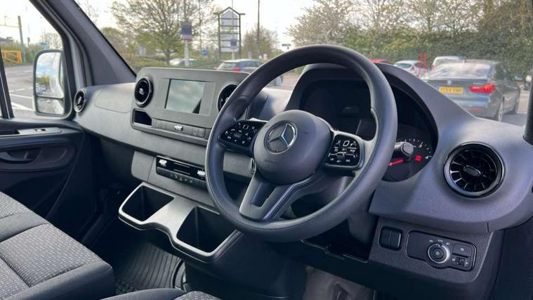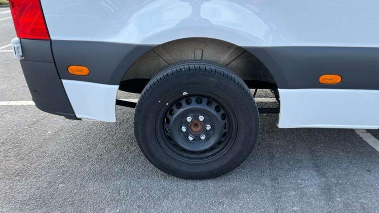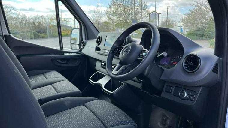 Bluetooth connectivity, Comfort overhead control panel, Communication module (LTE) for digital services, Cruise control, Outside temperature gauge, PAS, Prewiring for parameterizable special module (PSM), Rev counter, Speedometer, Terminal strip for electrical connection, Trip computer, Wifi hotspot, Additional USB-C socket, Apple Carplay/Android Auto, Digital radio (DAB), 270 degree double rear wing doors opening to side wall, Adaptive brake lights, Electric front windows, Entrance handle on right rear corner pillar, Headlight assistant, Heat insulating glass with filter band on windscreen, Lights for left hand traffic, Longitudinal member reinforcement, Third rear brake light, Door operated interior courtesy light, Driver's armrest, Grab handle at load compartment sliding door partition, Height and reach adjustable steering wheel, Hinged cover for centre storage compartment, Interior shelf above windscreen, Multi function steering wheel, Pre-installation for switch panel, Storage compartment under cockpit, Attention assist, Breakdown management, Crosswind assist, Driver's airbag, Jack, Mercedes-Benz emergency call system, Seat belt reminder for co-driver seat, Seat belt warning for driver's seat, Anti-theft alarm system, Double locking, Keyless start, VIN visible from outside, 6 speed manual transmission, ABS, Active brake assist, Adaptive ESP, Alternator - 14 V / 230A, ASR traction control, EBD, ECO Start/stop function, Front axle with increased load capacity, Fuel filter with water separator, Hill start assist, Jump start contact, Particulate filter (DPF), 225/65 R16 Tyres, Full wheel covers, Resistance-optimised tyres, Spare wheel bracket below frame end,