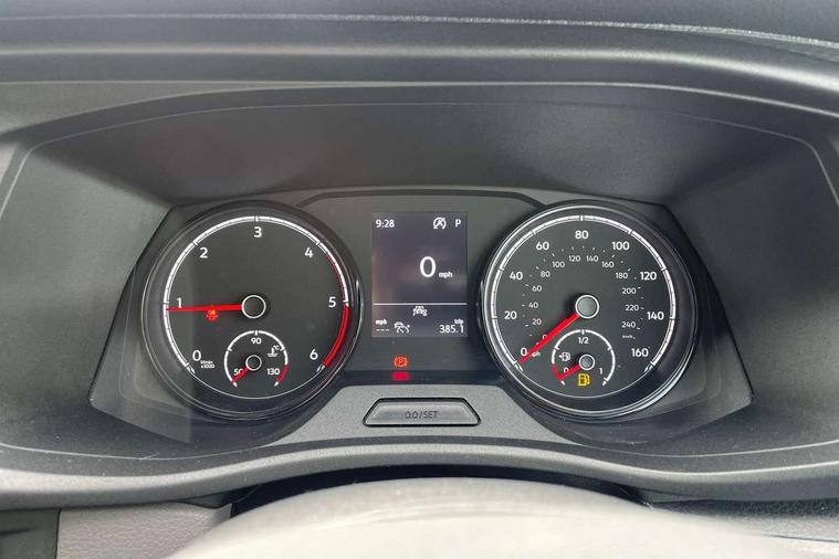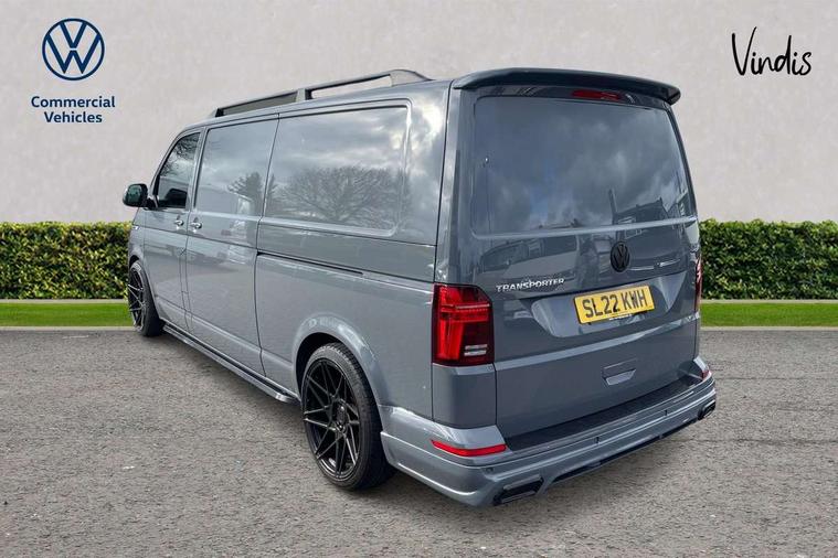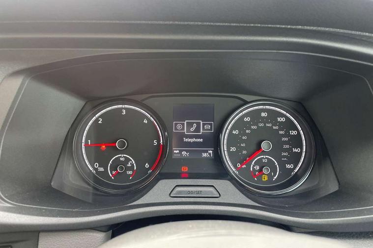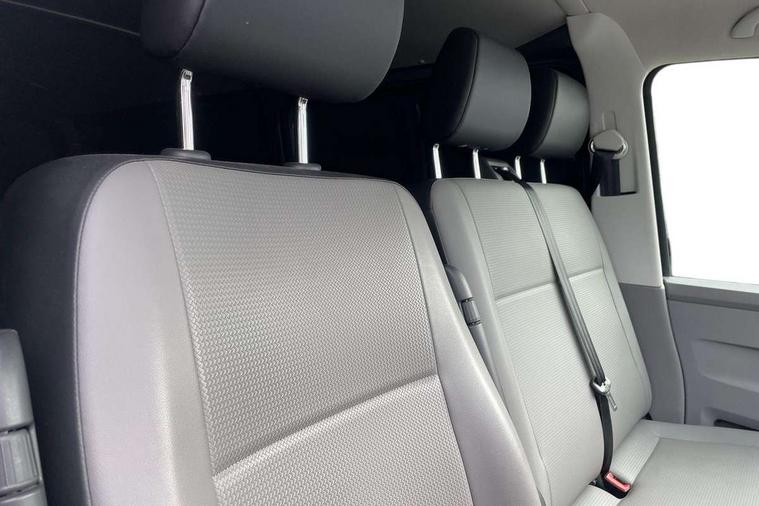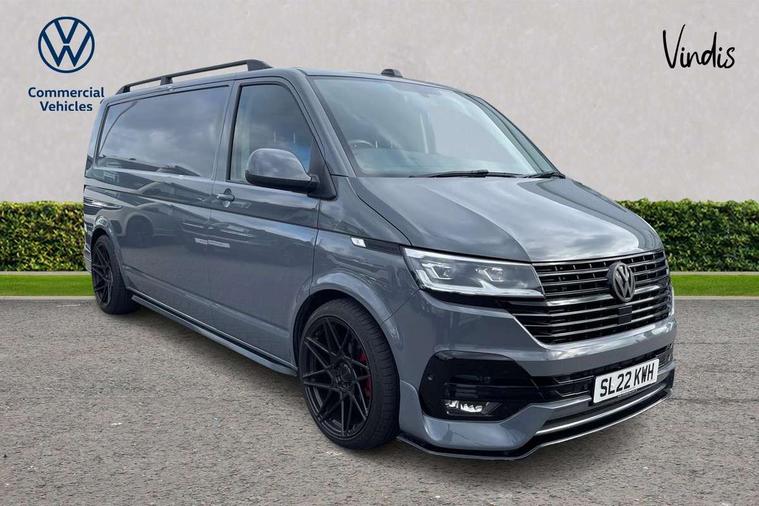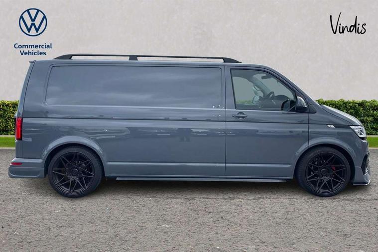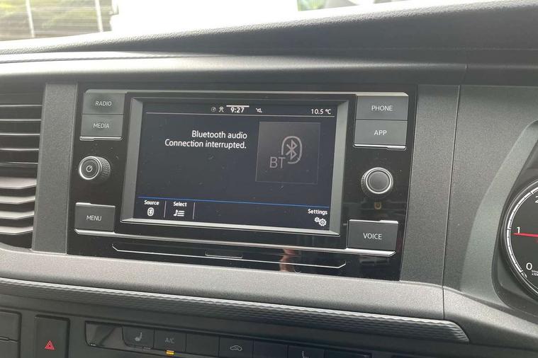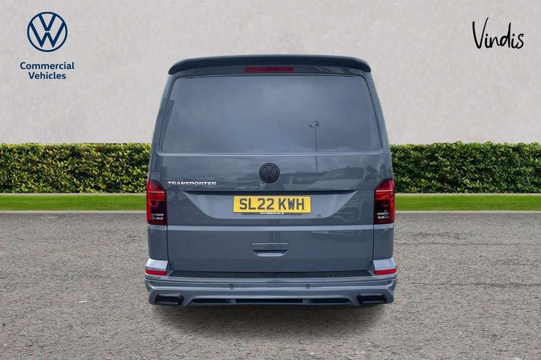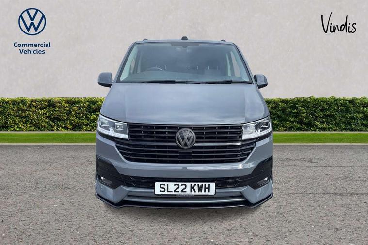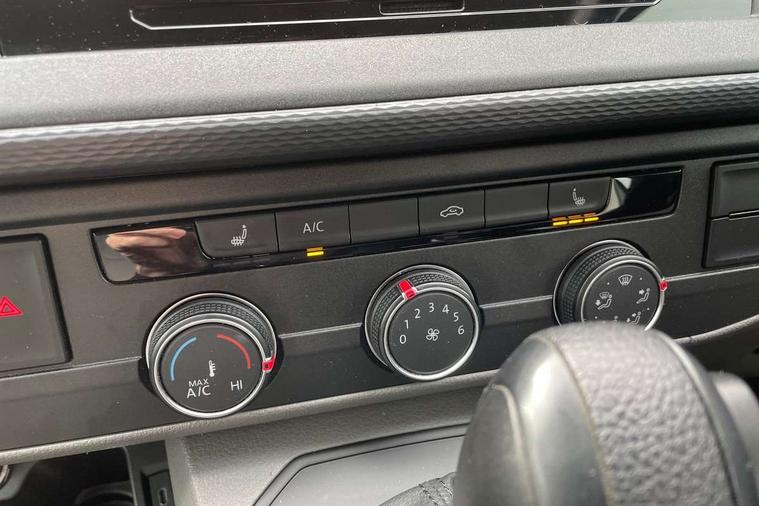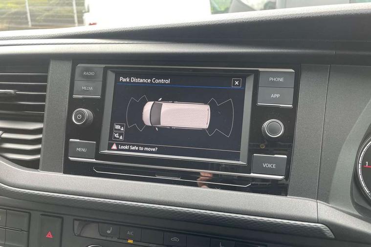 Adaptive cruise control, Cross wind assist, Dimmable illuminated instruments, Driver alert with Multi-function display plus, eCall emergency system, Electromechanical speed sensitive power steering, height and longitudinally adjustable steering column, Forward collision warning front assist with autonomous emergency braking, Mobile phone interface, Multi function display plus with black and white display, 2 USB interfaces type C in dashboard, 4 speakers with 2 tweeters and 2 woofers, Composition colour radio with 6.5" touchscreen, Digital radio reception (DAB+), Volkswagen app connect, Automatic headlight control, leaving home and manual coming home feature, Closing rear wing door with unlatching from the inside, Front fog lamps with cornering light, Heat insulating glass (green) in cab and passenger/load compartment, Heated front windscreen, Left convex exterior mirror, Power folding adjustable door mirrors with separately heated, Radiator grille with 2 chrome trims, Rear wing doors without window apertures, Right convex exterior mirror, Transporter nameplate on the rear fender, Windshield wiper intermittent control with rain sensor for windshield wipers, 3 spoke leather wrapped multi function steering wheel, Auto dimming breakaway interior rear view mirror, Comfort headliner in cab, hardboard roof trim in passenger and load compartment, Dust/pollen filter, Front and rear left without window closed side panel in load compartment, Front seats on the right in 1st row of seat, Glove compartment with illumination, Heavy duty tool kit and jack, High partition, Interior plastic loading edge protection, LED Interior lighting in load and passenger compartment, Manual adjustable lumbar support for right single seat in 1st row seats, Refrigerant R134a, Standard lower part dashboard in palladium, Storage compartments on cab seats and reading light, Without right side window apertures in passenger and load compartment, Comfort pack - Transporter, Exterior pack without fog light- Transporter, Non smoker pack - Transporter, 3 point height adjustable seat belts on outer seats cab with electric pretensioners, Driver and front passenger airbag with front passenger airbag deactivation, Warning buzzer and light for driver and front passenger seat belt not fastened, Without child safety lock in passenger compartment, Anti theft alarm system with interior monitoring in cab, backup horn and towing protection, Lockable wheel bolts, 16" chassis with 16" brake system, Additional 12V socket, Diesel particulate filter, Electronic stability control, ABS, ASR with deactivation button, hill start assist and brake assist system, Start/stop system with regenerative breaking, 16" Clayton alloy wheels,