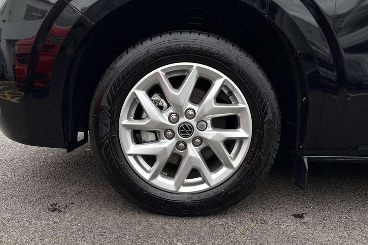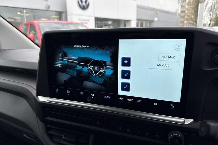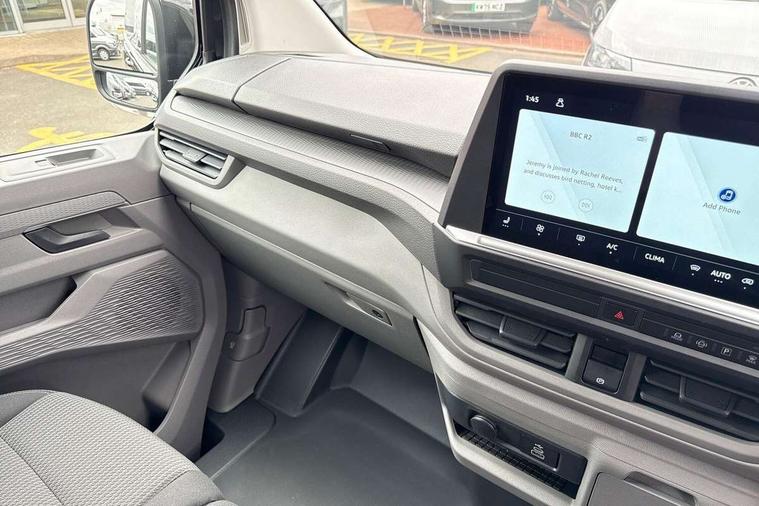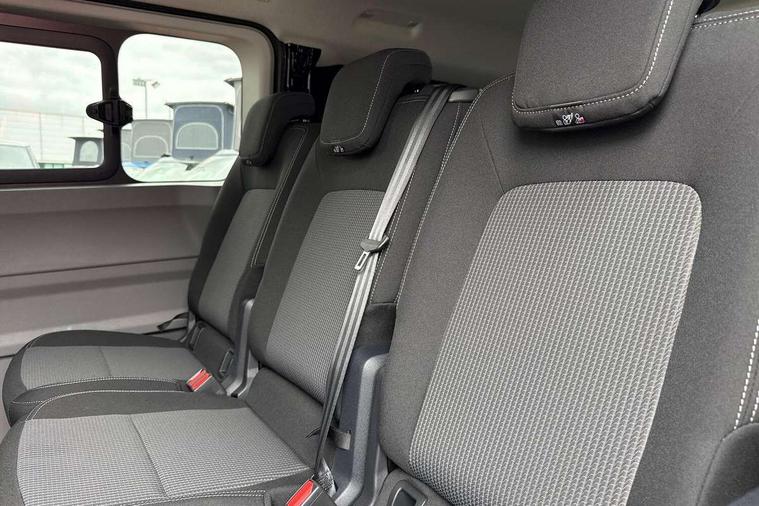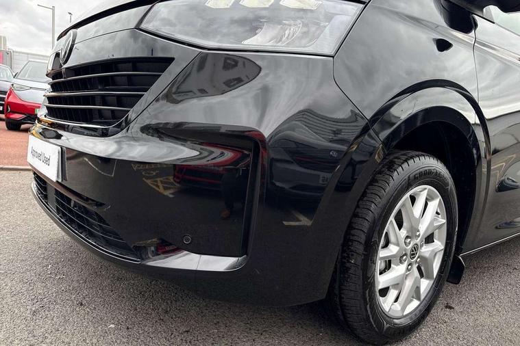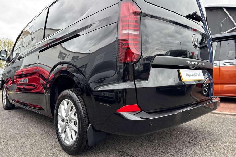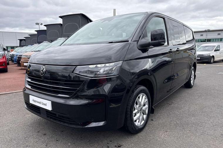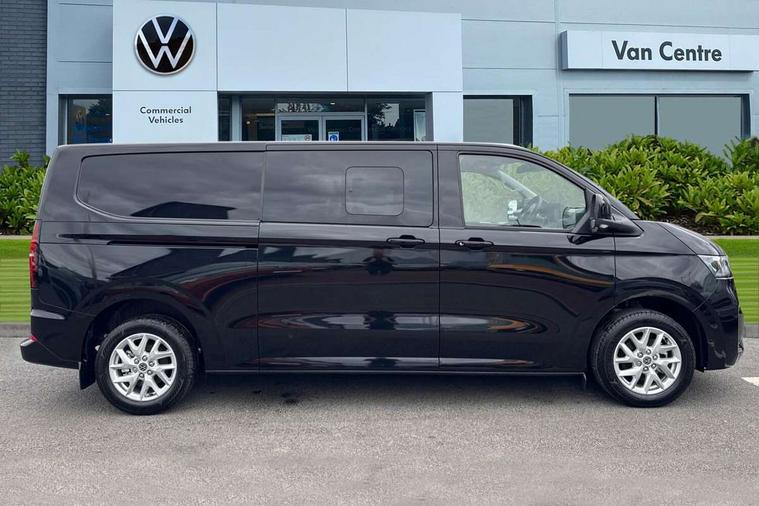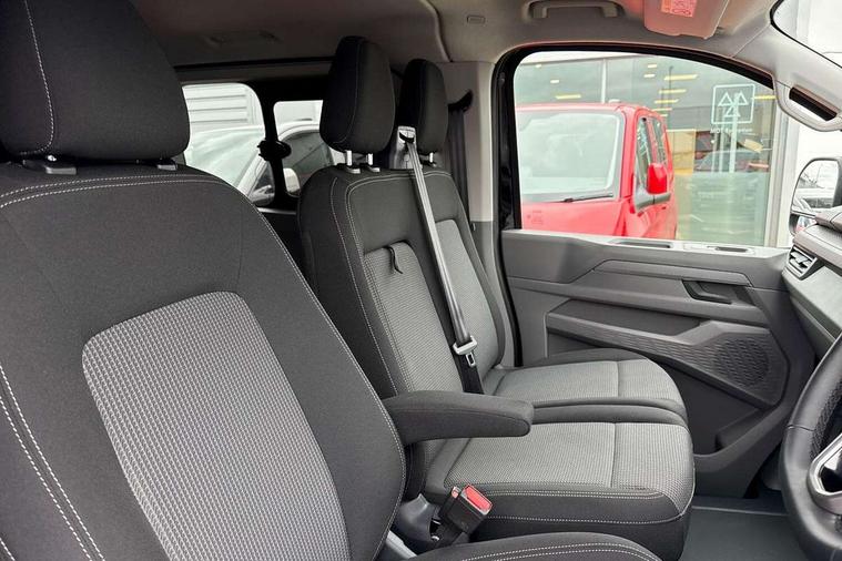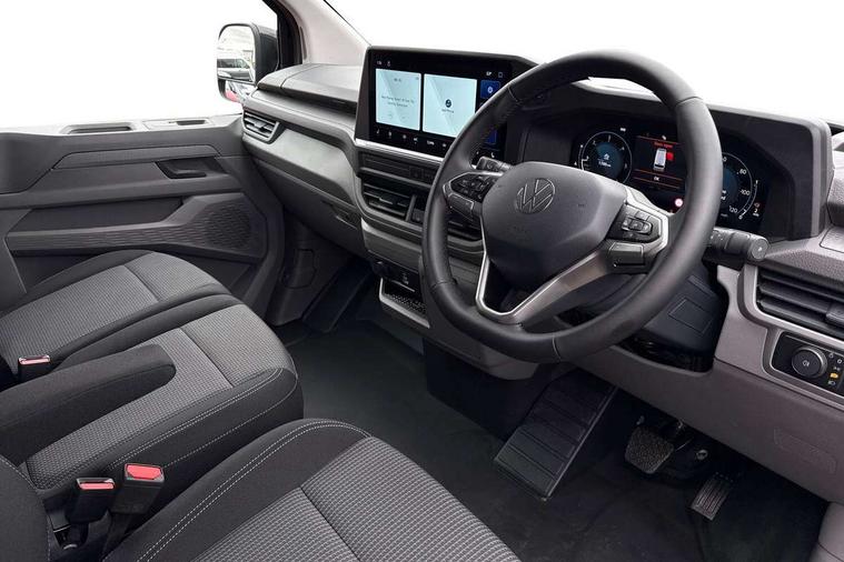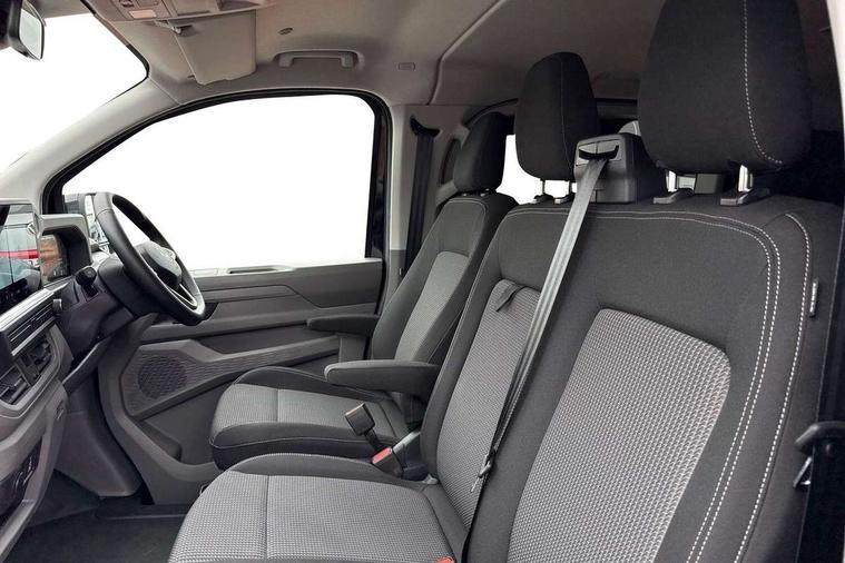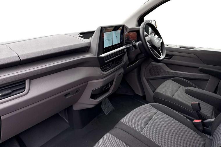 12" digital drivers display, 13" touchscreen infotainment display with wireless app connect and DAB radio, 5G Modem, Adaptive cruise control with predictive speed limiter and traffic jam assist, Dynamic road sign display, eCall emergency system, Front collision warning with braking, Identification label for N1 commercial vehicle registration, Lane assist with blind spot assist and exit warning system, PAS, Preparation of VW connect and connect plus, Wireless mobile phone charging, Wrong way driver warning, 6 speakers, Body colour bumpers front and rear, Body coloured add on parts, Body coloured door handles, Body coloured door mirrors, Body coloured radiator grille, Dual sliding doors with pop-out window vents (left and right) for 2nd row, Electrically heated, adjustable and folding door mirrors, Heat reflecting glass in front side windows, privacy glass in rear side windows and rear window, Heated rear window, Laminated windshield made of heat-reflecting glass, Mud flaps front and rear, Rear tailgate, Rear Transporter nameplate in black grained decorative trim, Rear window wiper with washer system, Sliding doors on driver and front passenger side, Vehicle opening configuration 1x 1st row of seats, 2x all doors, 12 pin terminal block, 12V outlet in centre console and 12V outlet on rear right D-pillar, 2 LED lights in roof of load compartment, 3 single seats in 2nd row, folding and tumbling, 2x isofix and top tether, 3x additional super bright LED lights in load compartment, 4 way height and tilt adjustable head restraints, 6 tie downs for securing goods in the passenger/load compartment, 7x USB in cab and 2x USB in passenger compartment, Black plastic scuff plate for sliding door in cargo, illuminated, Black plastic scuff plate in front without illumination, Covers in the bottom area of all side panels and doors in the load compartment, Dimming breakaway interior rear view mirror, Gear selector lever on steering wheel, Grab handle on A-pillar passenger side, Illuminated glove compartment with lockable lid, LED light units for cab and passenger compartment, Overhead storage compartment, Single driver and single passenger seat in cab, Striped fabric upholstery, Without bulkhead, Without floor covering in load compartment, Driver and front passenger airbag with front passenger airbag deactivation, Dual tone horn, Seat belt pretensioner for front seats, Side and curtain airbags in cab curtain airbags in passenger compartment, Anti theft alarm system with interior monitoring in cab, backup horn and towing protection, Anti-theft wheel bolts, Central locking, Preparation for alcohol ignition interlock, 5+ Promise, Alternator - 230A, Electromechanical brake booster, Electronic Stability Control (ESC),