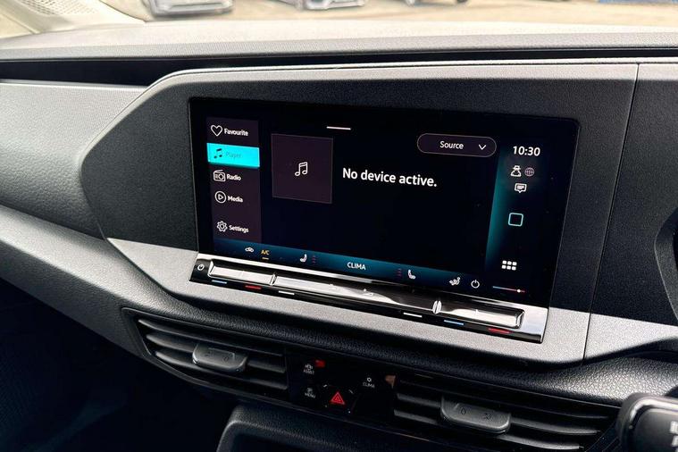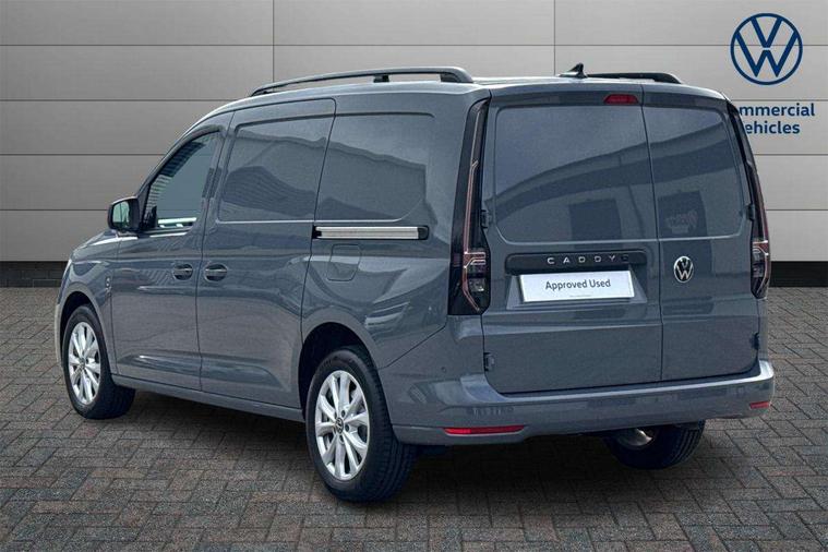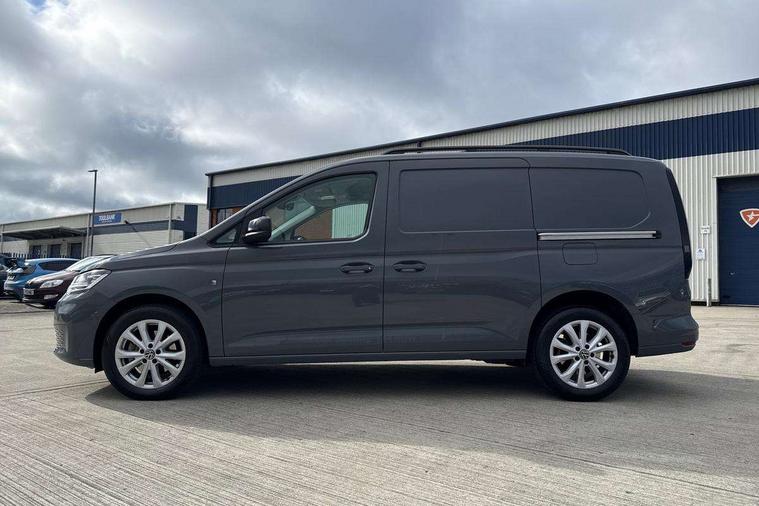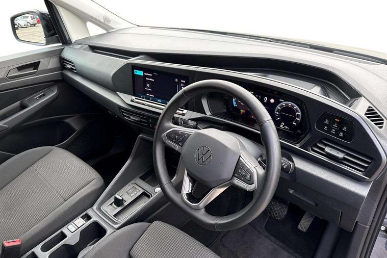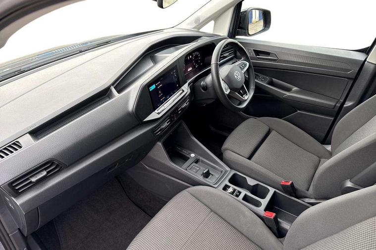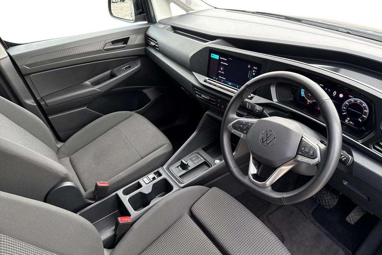 Bluetooth - Mobile phone interface, Car2X technology, Driver alert system, eCall emergency system, Intelligent Speed Assist, Lane assist, Seatbelt warning indicator, Service indicator, Start-stop system with regenerative braking, 2 USB interfaces type C in dashboard, App-Connect - Wireless for Apple CarPlay, DAB Radio, We Connect Plus Preparation, Automatic hazard light activation under emergency braking, Black painted exterior mirror housings, body-colored door handles and Silver sliding door rail, Body coloured bumpers, Electric front windows, LED rear combination lights, LED rear tail lights, Roof rail preparation, Windscreen wiper with variable intermittent delay and wash-wipe system, Dimming breakaway interior rear view mirror, Electronically controlled heating system, ergoComfort seats for driver, Interior light in headliner incorporting LED technology, Lockable glove compartment door with light, Manual heating and ventilation system, Manual height adjustment for front seats and seat cushion inclination and depth adjustment on drivers seat, Multi function leather steering wheel, Power-adjustable lumbar support for drivers seat, Reach and rake adjustable steering column, Six lashing points for securing loads, Steering wheel paddle shift, Storage compartments under driver and front passenger seats, Sun visors with mirror, airbag label on front passenger sun visor, Winter pack plus - Caddy, 3-point seat belts in front, with pretensioner and height adjustment, Driver and front passenger airbag with front passenger airbag deactivation, Tyre pressure monitoring system, Anti-theft alarm system, interior monitoring, backup horn, and towing protection, Electronic engine immobiliser, Remote central locking with deadlocks, interior locking, Anti locking braking system (ABS), Automatic post collision braking system, Brake assist, Diesel particulate filter, Electric parking brake with auto hold function, Electronic brake force distribution (EBD), Electronic differential lock (EDL), Electronic stabilisation programme (ESP), Engine drag torque control (MSR), Hill hold assist, Traction control system (TCS), Decorative beige birch vein inserts, Wheel bolts with anti-theft protection (unlockable),