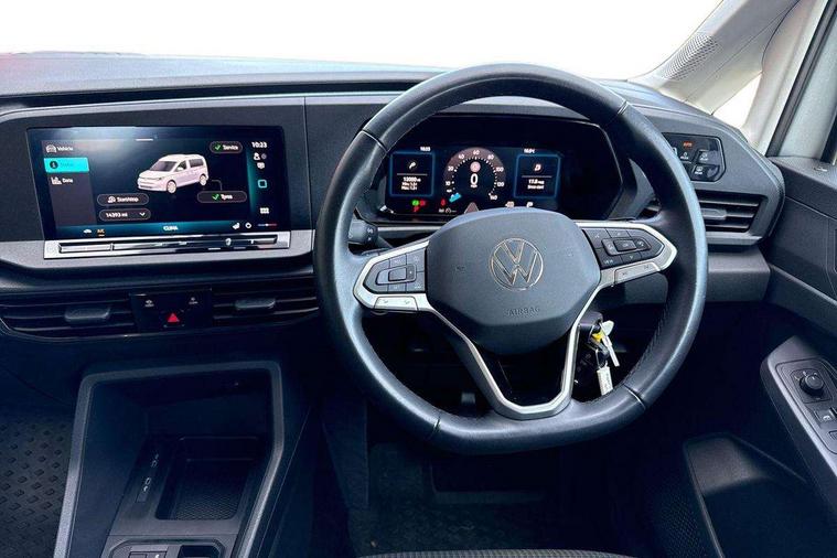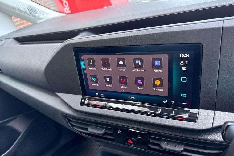 Bluetooth mobile phone interface, Driver alert system, Dynamic road sign display, eCall emergency call system, Gesture control, Lane assist, Multi function display, On board computer, Service interval indicator, Start/stop system with regenerative braking, Tailgate with window, We connect basic preparation, Diesel particulate filter, Electronic differential lock, 2 Type C USB, Anti dazzle rear view mirror, Automatic hazard lights activation under emergency braking, Black door mirrors, Body colour bumpers, Body coloured door handles, Electric front windows, Fixed side window in load/passenger compartment, Heated rear window, Rain sensor, Rear side wing doors, Rear window wiper and washer system with intermittent control, Roof rails preparation, Silver sliding door rail, Third high level brake light, Twin rear sliding doors, Windscreen wiper with variable intermittent delay and wash wipe system, 12V socket in passenger compartment, 3 seat bench in 2nd row, 5 standard interior lights in passenger compartment, Air conditioning - Climatic airconditioning system - manual in cab, Carpet floor covering in cab, Carpet floor covering in passenger compartment, Centre console with 2 cupholders, Double grid cloth upholstery, Electrically controlled heating system, Front head restraints, Front passenger seat, Height adjustable head restraints, Illumination lockable glovebox compartment, Interior light in headliner incorporating LED technology, Isofix on 2nd row outer seats, Manual front seats with height adjustment, Overhead storage compartment, Reach and rake adjustable steering column, Rear head restraints, Retractable luggage compartment cover, Seat occupied recognition for front seats, Sliding trunk cover, Split folding/removable rear seat, Sunvisors with vanity mirrors, 3-point seat belts in front with pretensioner and height adjustment, 3x3 point rear seatbelts, Anti-lock braking system (ABS), Automatic post collision braking system, Brake assist, Child locks on rear doors, Curtain airbag for outer seats in rear, Driver and front passenger airbag with front passenger airbag deactivation, Electric parking brake with auto hold function, Electronic brake force distribution, Engine drag torque control, ESP, First aid kit with warning triangle and safety vest, Front Assist with pedestrian monitoring and city emergency braking system, Front centre airbag, Power operated child safety locks, Seat belt warning if unfastened, front and rear, Side and curtain airbag for driver and front passenger, Traction control system (TCS), Tyre pressure loss indicator, Anti theft alarm system with interior monitoring, backup horn and towing protection, Electronic engine immobiliser, Decorative inserts birch vein,