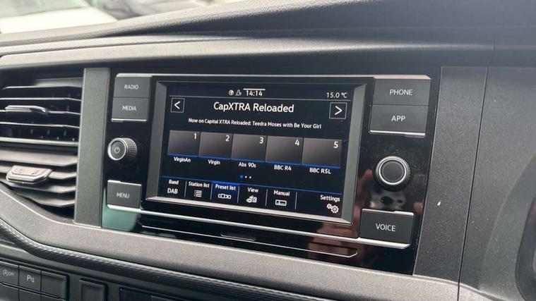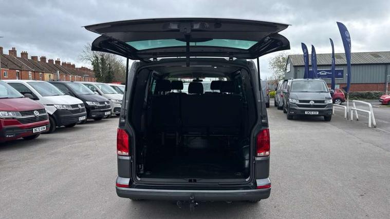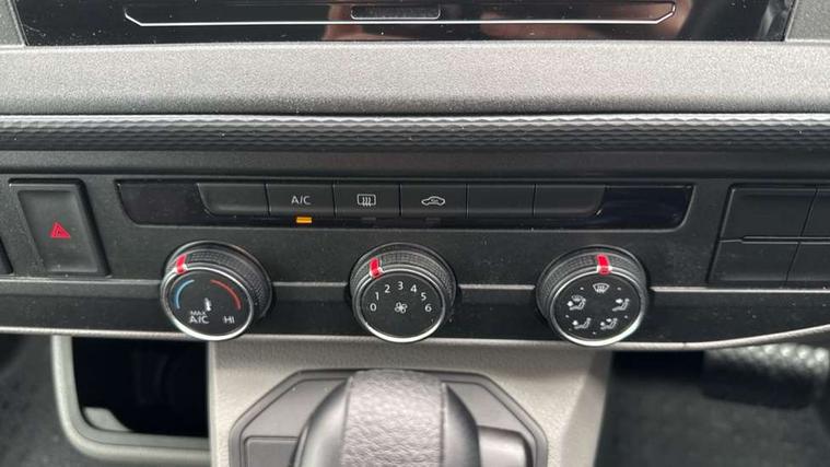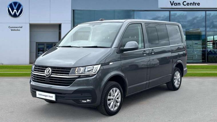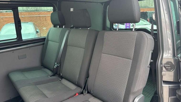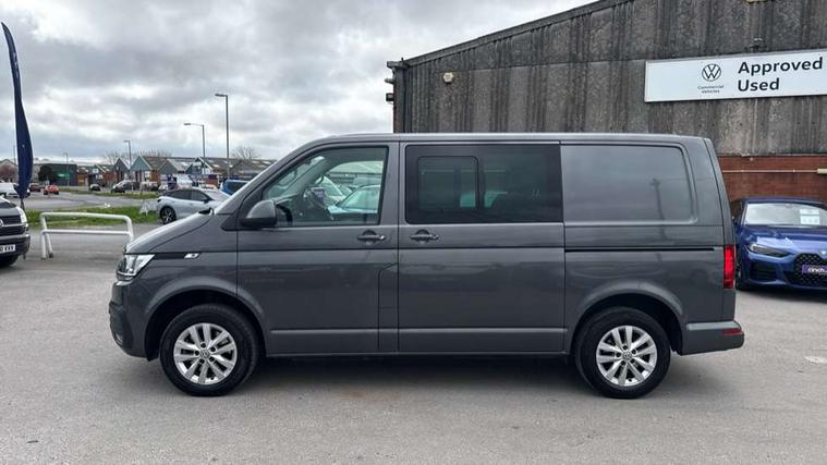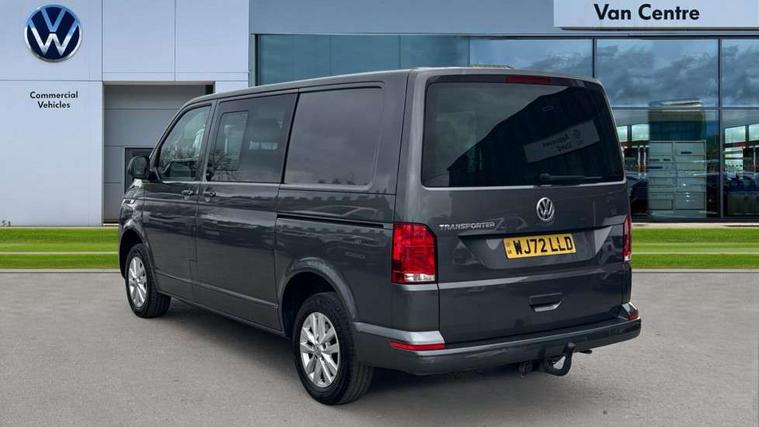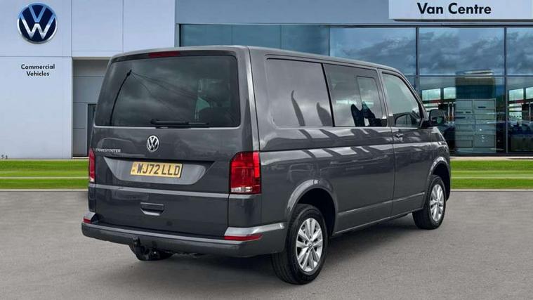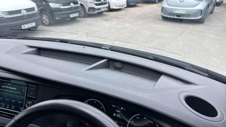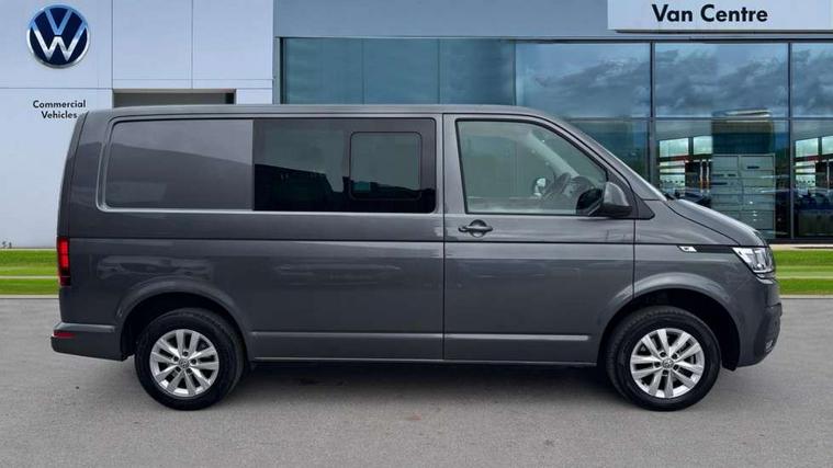 Adaptive cruise control, Child seat anchors ISOFIX and top tether in 2nd row of seats, Cross wind assist, Dimmable illuminated instruments, Driver alert with black and white multi function display plus, eCall emergency system, Electromechanical speed sensitive power steering, height and longitudinally adjustable steering column, Forward collision warning front assist with autonomous emergency braking, Headlight range control, Mobile phone interface, Without voice control, 2 USB interfaces type C in dashboard, 4 speakers with 2 tweeters and 2 woofers, Composition colour radio with 6.5" touchscreen, Digital radio reception (DAB+), Volkswagen app connect, Automatic headlight control, leaving home and manual coming home feature, Front fog lamps with cornering light, Green heat insulating glass, Heated front windscreen, Illuminated steps in passenger/load compartment, Left convex exterior mirror, Power folding adjustable door mirrors with separately heated, Privacy glass from the B-pillar and heat-insulating glass in front, Radiator grille with 2 chrome trims, Rear window with heated insulating glass, heated rear window wiper and washer system, Right convex exterior mirror, Tailgate closing with unlatching from the inside, Transporter nameplate on the rear fender, Windshield wiper intermittent control with rain sensor for windshield wipers, Without adhesive film, 3 spoke leather wrapped multi function steering wheel, Additional sound deadening measures in cab and passenger compartment, Auto dimming breakaway interior rear view mirror, Comfort headliner in cab, hardboard roof trim in passenger and load compartment, Dust/pollen filter, Folding grab handles and storage compartments on cab seats, reading light, Front seats on the right in 1st row of seat, Glove compartment with illumination, Heavy duty tool kit and jack, Interior plastic loading edge protection, Lashing rings for load restraint system, LED Interior lighting in load and passenger compartment, Medium height for vehicles with window aperture hardboard side trim panels in passenger/load compartment, Refrigerant R134a, Standard lower part dashboard in palladium, Without partition, Without seats in 3rd row of seats, Comfort pack - Transporter, Exterior pack without fog light- Transporter, Light and vision pack - Transporter, Non smoker pack - Transporter, 3 point height adjustable seat belts on outer seats cab with electric pretensioners, Driver and front passenger airbag with front passenger airbag deactivation, Power operated child safety lock, Warning buzzer and light for driver seat belt not fastened, Anti theft alarm system with interior monitoring in cab, backup horn and towing protection, Lockable wheel bolts, 16" chassis with 16" brake system, 70 L volume fuel tank, Diesel particulate filter, Electronic stability control, ABS, ASR with deactivation button, hill start assist and brake assist system, Speed limiter, Start/stop system with regenerative breaking, 16" Clayton alloy wheels, Wheel trims,