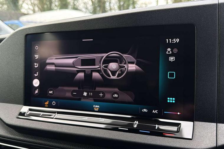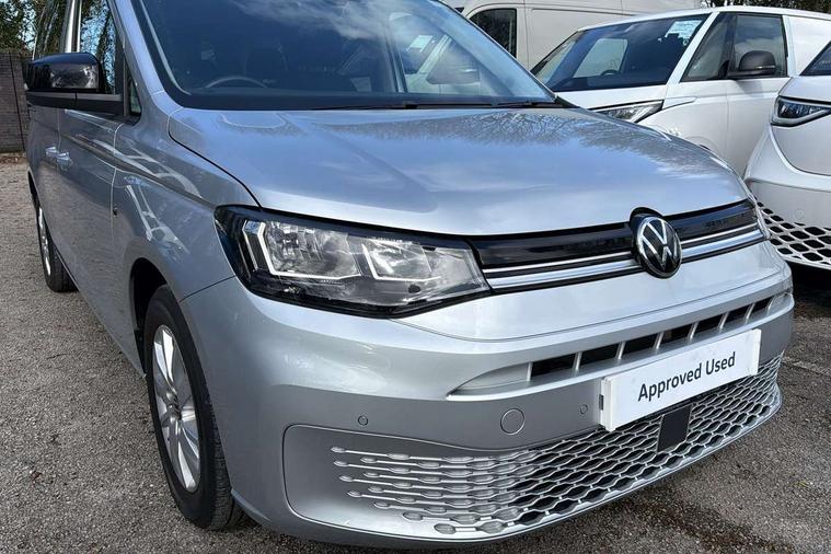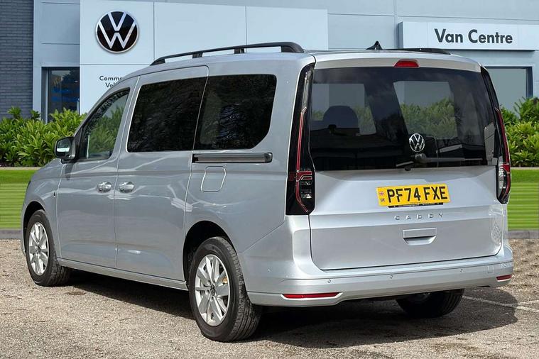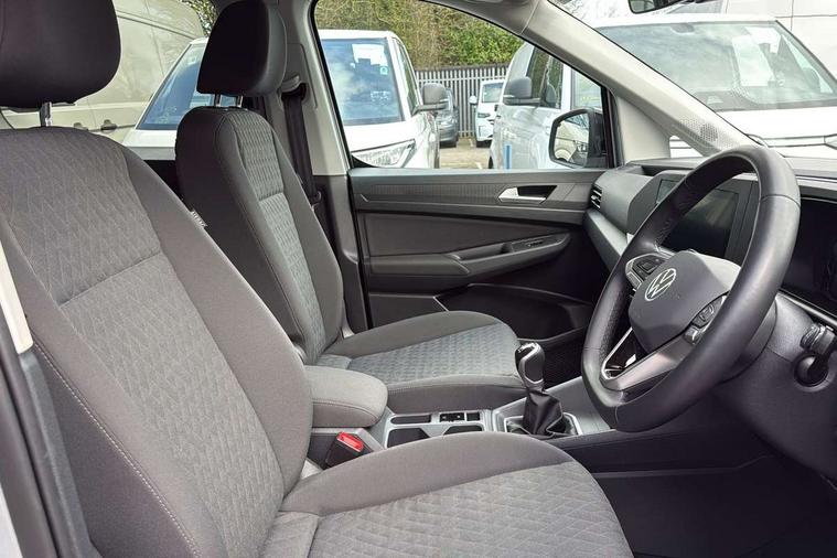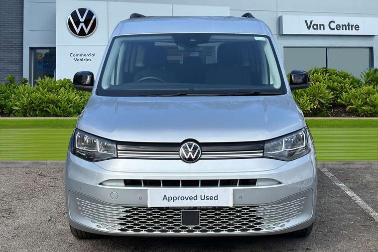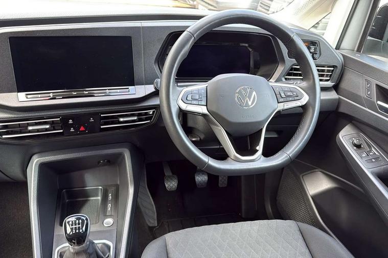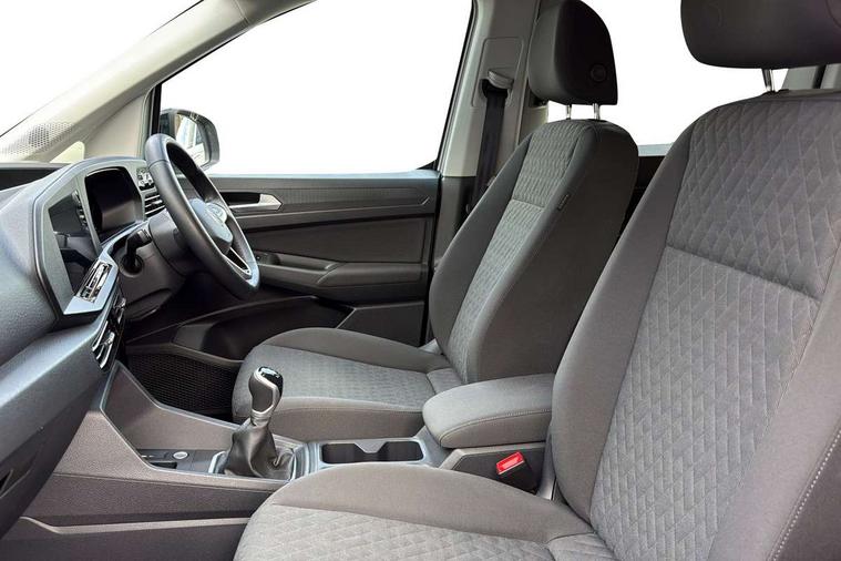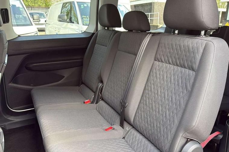 Driver alert system, eCall emergency call system, Gesture control, Lane keeping system, Multi function display, On board computer, Service interval indicator, Start/stop system with regenerative braking, We connect plus preparation, Diesel particulate filter, Electronic differential lock, 2 Type C USB, DAB Digital radio, Anti dazzle rear view mirror, Automatic hazard lights activation under emergency braking, Automatic headlight levelling system, Body colour bumpers, Electric front windows, Electrically adjustable and folding door mirrors, Fixed side window in load/passenger compartment, Heat insulating windscreen, Heated door mirrors, Heated rear window, LED rear combination lights, Rear window wiper and washer system with intermittent control, Third high level brake light, Twin near side and off side sliding doors, Windscreen wiper with variable intermittent delay and wash wipe system, 12V socket in passenger compartment, 5 standard interior lights in passenger compartment, Backrest release for front passenger seat, Carpet floor covering in cab, Carpet floor covering in passenger compartment, Centre console high with armrests adjustable, Centre console with 2 cupholders, Door and side trim panel in fabric, Electrically controlled heating system, Folding table on front seat backrests, Front head restraints, Front passenger seat foldable, Height adjustable head restraints, Isofix on 2nd row outer seats, Leather gearshift knob/handle, LED interior light in headlining, Lockable glove compartment with light, Manual adjustable lumbar support in front seats, Manual front seats with height adjustment, Multifunction steering wheel, Reach and rake adjustable steering column, Rear head restraints, Removable waste bin with cover for cab, Retractable luggage compartment cover, Seat occupied recognition for front seats, Sliding trunk cover, Split folding/removable rear seat, Storage drawers under front seats, Sun visors with mirror and airbag label on front passenger, Trialog cloth upholstery, 7 seat pack - Caddy, 3-point seat belts in front with pretensioner and height adjustment, 3x3 point rear seatbelts, Anti-lock braking system (ABS), Automatic post collision braking system, Autonomous emergency braking front assist with pedestrian and cyclist monitoring, Brake assist, Child locks on rear doors, Curtain airbag for outer seats in rear, Direct tyre pressure monitoring system, Driver and front passenger airbag with front passenger airbag deactivation, Electric parking brake with auto hold function, Electronic brake force distribution, Engine drag torque control, ESP, First aid kit with warning triangle and safety vest, Front centre airbag, Power operated child safety locks, Seat belt reminder, Side and curtain airbag for driver and front passenger, Traction control system (TCS), Anti theft alarm system with interior monitoring, backup horn and towing protection, Electronic engine immobiliser, Wheel bolts unlockable anti-theft protection, Decorative inserts in beige birch vein,