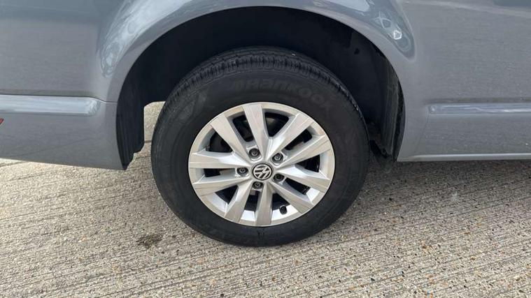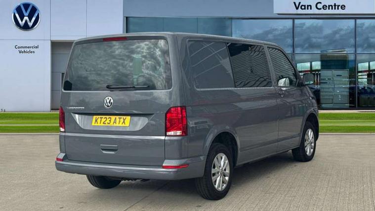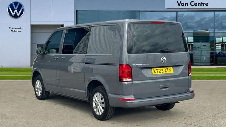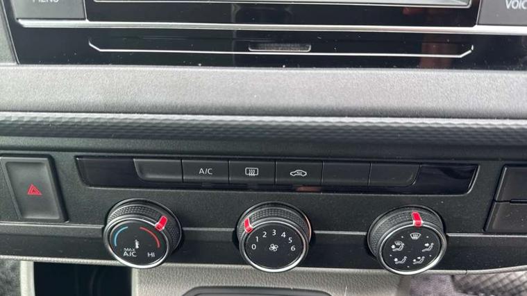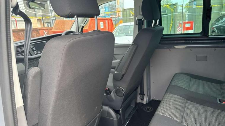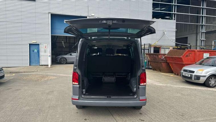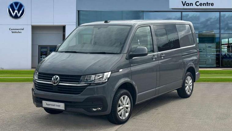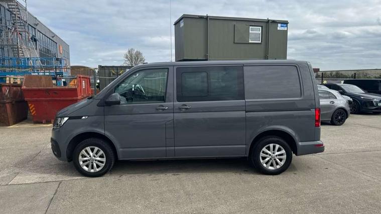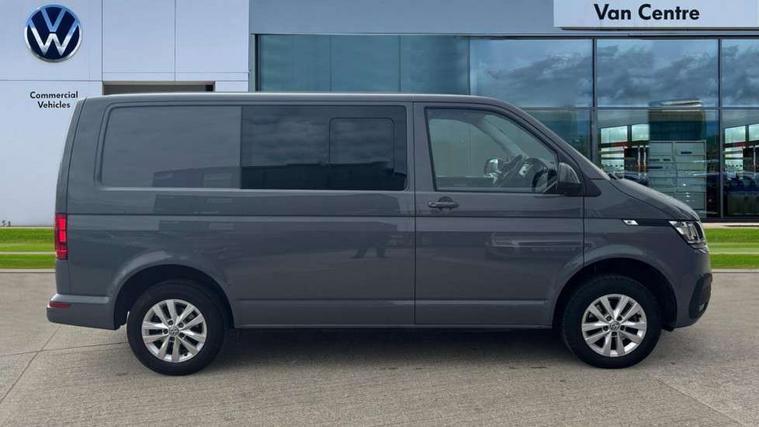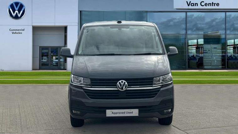 Adaptive cruise control, Child seat anchors ISOFIX and top tether in 2nd row of seats, Cross wind assist, Dimmable illuminated instruments, Driver alert with black and white multi function display plus, eCall emergency system, Forward collision warning front assist with autonomous emergency braking, Headlight range control, Mobile phone interface, Without voice control, 2 USB interfaces type C in dashboard, 4 speakers with 2 tweeters and 2 woofers, Composition colour radio with 6.5" touchscreen, Digital radio reception (DAB+), Volkswagen app connect, Automatic headlight control, leaving home and manual coming home feature, Front fog lamps with cornering light, Green heat insulating glass, Heated front windscreen, Illuminated steps in passenger/load compartment, Left convex exterior mirror, Power folding adjustable door mirrors with separately heated, Privacy glass from the B-pillar and heat-insulating glass in front, Radiator grille with 2 chrome trims, Rear window with heated insulating glass, heated rear window wiper and washer system, Right convex exterior mirror, Tailgate closing with unlatching from the inside, Transporter nameplate on the rear fender, Windshield wiper intermittent control with rain sensor for windshield wipers, Without adhesive film, 3 spoke leather wrapped multi function steering wheel, Additional sound deadening measures in cab and passenger compartment, Auto dimming breakaway interior rear view mirror, Comfort headliner in cab, hardboard roof trim in passenger and load compartment, Dust/pollen filter, Folding grab handles and storage compartments on cab seats, reading light, Front seats on the right in 1st row of seat, Glove compartment with illumination, Heavy duty tool kit and jack, Interior plastic loading edge protection, Lashing rings for load restraint system, LED Interior lighting in load and passenger compartment, Medium height for vehicles with window aperture hardboard side trim panels in passenger/load compartment, Refrigerant R134a, Standard lower part dashboard in palladium, Without partition, Without seats in 3rd row of seats, Comfort pack - Transporter, Exterior pack without fog light- Transporter, Non smoker pack - Transporter, 3 point height adjustable seat belts on outer seats cab with electric pretensioners, Driver and front passenger airbag with front passenger airbag deactivation, Power operated child safety lock, Warning buzzer and light for driver seat belt not fastened, Anti theft alarm system with interior monitoring in cab, backup horn and towing protection, Lockable wheel bolts, 16" chassis with 16" brake system, Diesel particulate filter, Electronic stability control, ABS, ASR with deactivation button, hill start assist and brake assist system, Speed limiter, Start/stop system with regenerative breaking, 16" Clayton alloy wheels, Wheel trims,