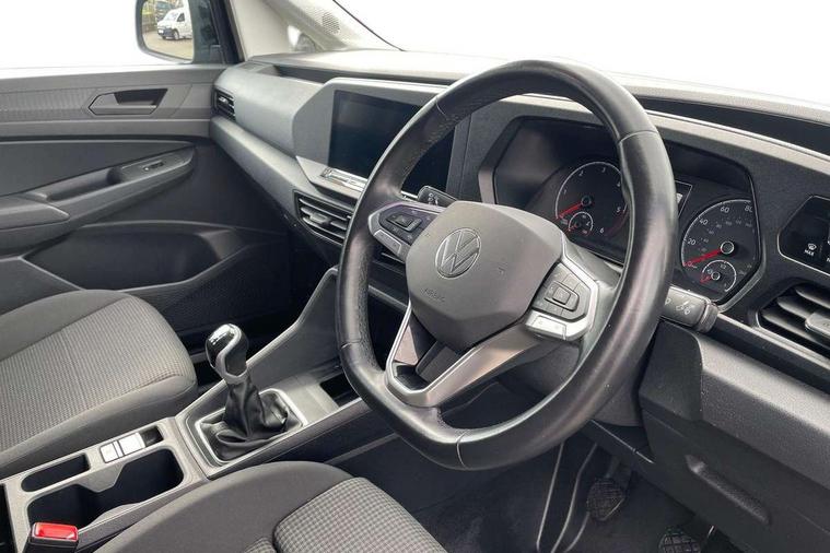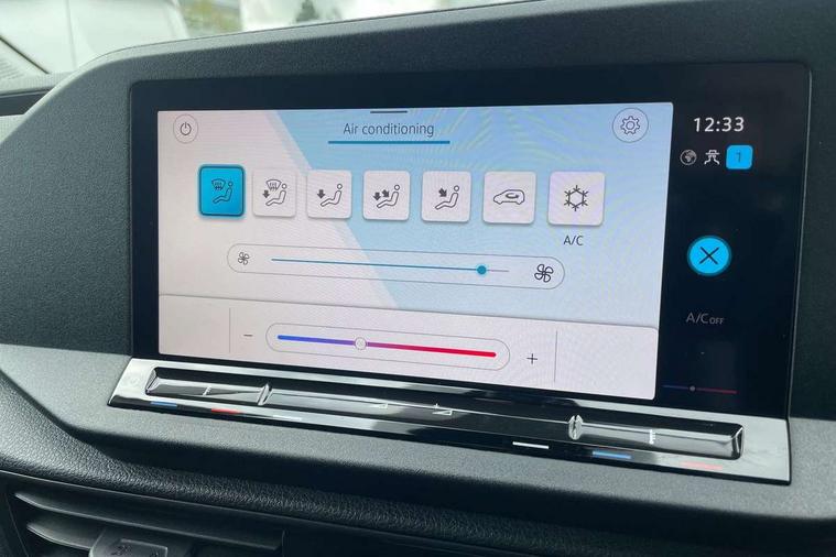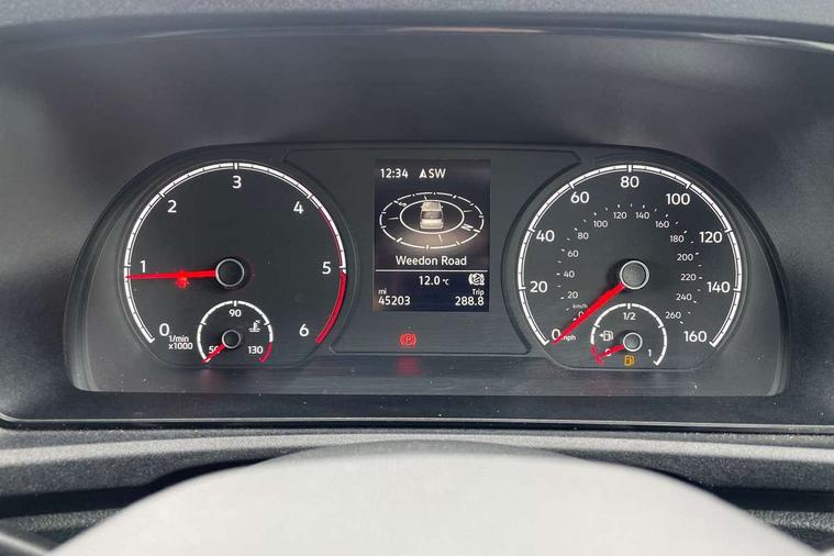 Driver alert system includes drowsiness detection, Emergency call control unit with eCall, Multi-function Display, Seatbelt warning indicator, Service indicator, Start-stop system with regenerative braking, DAB Radio, Navigation system "Discover Media" with 25.4-cm (10-inch) colour touch screen incl. Streaming & Internet, 4 speakers, We Connect Plus Preparation, Automatic hazard light activation under emergency braking, Black painted exterior mirror housings, body-colored door handles and Silver sliding door rail, Body coloured bumpers, Electric front windows, Exterior mirrors, power-folding, power-adjustable, separately heated, Heated windscreen, LED rear combination lights, LED rear tail lights, Roof rail preparation, Windscreen wiper with variable intermittent delay and wash-wipe system, Armrests for both front seats, Dimming breakaway interior rear-view mirror, Electronically controlled heating system, ergoComfort seats for driver, Interior light in headlining, Lockable glove compartment door with light, Manual height adjustment for front seats and seat cushion inclination and depth adjustment on drivers seat, Multi function leather steering wheel, Power-adjustable lumbar support for drivers seat, Reach and rake adjustable steering column, Six lashing points for securing loads, Storage compartments under driver and front passenger seats, Sun visors with mirror, airbag label on front passenger sun visor, 3-point seat belts in front, with pretensioner and height adjustment, Driver and front passenger airbag with front passenger airbag deactivation, Anti-theft alarm system, interior monitoring, backup horn, and towing protection, Electronic engine immobiliser, Remote central locking with deadlocks, interior locking, Anti locking braking system (ABS), Automatic post collision braking system, Autonomous Emergency Braking Front Assist with Pedestrian Monitoring, Electric parking brake with auto hold function, Electronic brake force distribution (EBD), Electronic differential lock (EDL), Electronic stabilisation programme (ESP), Emergency brake assist, Engine drag torque control (MSR), Hill hold assist, Traction control system (TCS), Decorative beige birch vein inserts, Wheel bolts with anti-theft protection (unlockable),