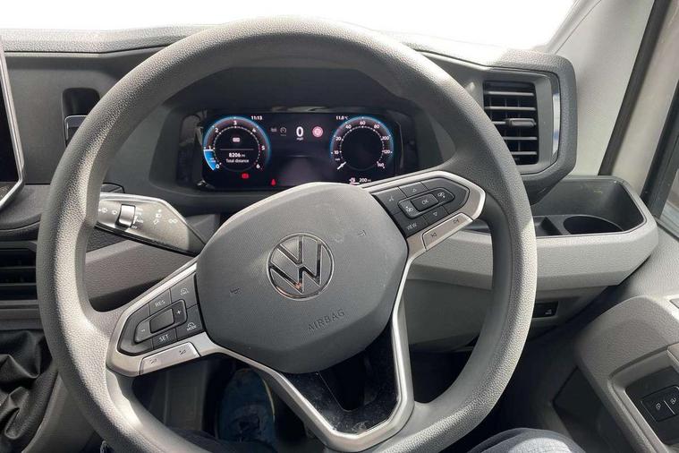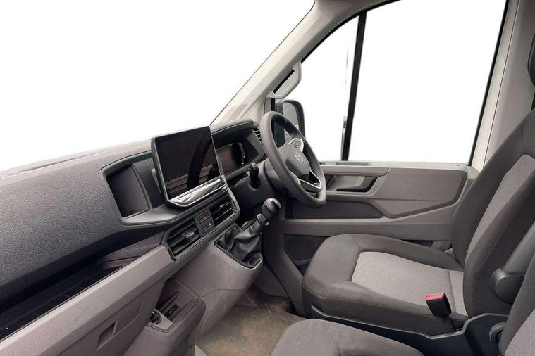 Bluetooth, Digital clock, Driver alert system, E-call + We connect basic preparation, Instrument cluster, Lights on warning buzzer, Locking fuel cap, Multi-function Display Plus, Rev counter, Service indicator, Speedometer, Voice control system, Composition media with 6.5" with we connect plus prep, 4 speaker, multifun display plus, USB, mob interface, app con, "We connect function", DAB Radio, Auto low beam mode, Leaving home function and manual coming home function, Cab doors, Convex and wide angle mirror, Driver seatbelt warning light, Electric windows, Electrically heated and adjustable door mirrors, Half painted front bumper, Heat insulating glass, Indicators in front door mirrors, One towing eye in front, Rear wing doors with 270 degree hinges, Special identification plate, Unpainted radiator grille, Air recirculation system, Ashtray, Centre console storage tray, CFCU preparation, Charcoal filter, Climatic air conditioning, Document holder on centre console, Drinks holders, Electromechanical Servotronic steering, Electronically controlled heating system, Fully adjustable suspension type driver seat, Grab handles on rear entry pillars, Height adjustable head restraints, Height and reach adjustable steering wheel, Illuminated glove compartment with lockable lid, Interior light, including 2 reading lights, Interior light, switchable by door, Jack and tool kit, Preparation for interface for external use with terminal block, Storage compartments in doors and in step, right, Storage tray on dashboard, Two 12V outlets in the cab (in the dashboard), Without rear side trim panel passenger load compartment, Non-smokers pack - Crafter, 3 point inertia reel belt on all seats, Automatic hazard light with emergency braking, Crosswind assist, Driver and front passenger airbag with front passenger airbag deactivation, Height adjustable seatbelts for outer cab seats, 1 rigid key, Anti-theft alarm with interior monitor, back up horn and tow away protect, overhead storage with two 1-DIN, reading light, SAFELOCK with 2 remote keys, Engine immobiliser, ABS, Automatic post collision braking system, EBA, EBD, EDL, ESP, Front disc brakes, HBA, Hill start assist, Parking brake - hill hold control, Start and stop system with regenerative braking, TCS, Hub cap covers,