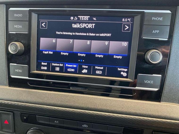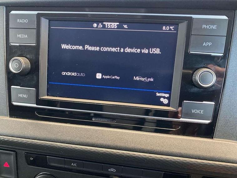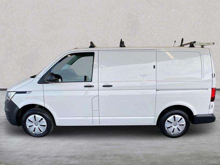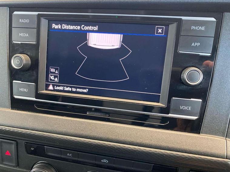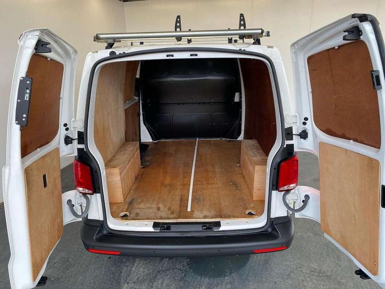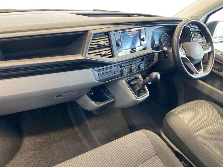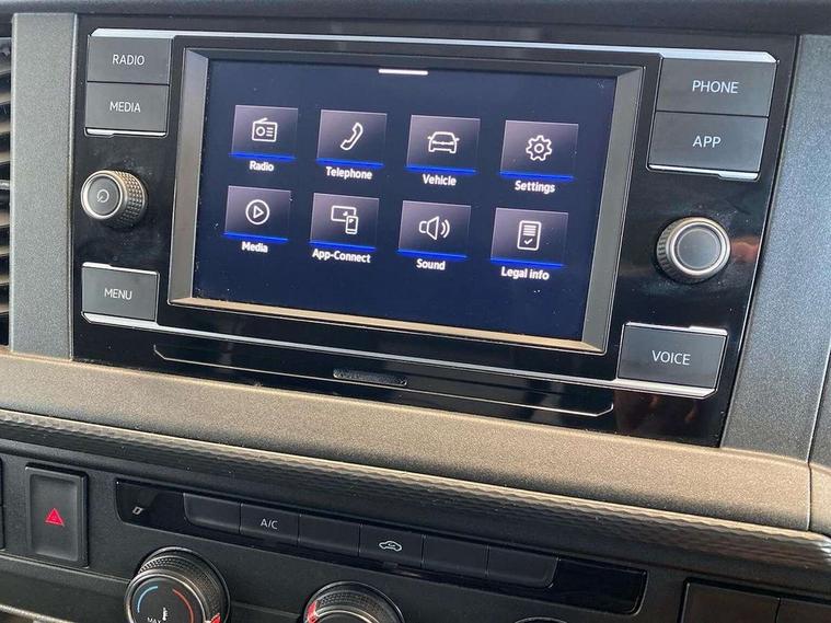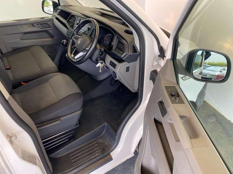Cross wind assist, Dimmable illuminated instruments, Driver alert with Multi-function display plus, eCall emergency system, Forward collision warning front assist with autonomous emergency braking, Mobile phone interface, Multi function display plus with black and white display, 2 USB interfaces type C in dashboard, 4 speakers with 2 tweeters and 2 woofers, Composition colour radio with 6.5" touchscreen, Digital radio reception (DAB+), Volkswagen app connect, 4 stages windshield wiper intermittent control for windshield wipers, Closing rear wing door with unlatching from the inside, H7 twin halogen headlamps, Heat insulating glass (green) in cab and passenger/load compartment, Heat insulating windshield made of laminated glass, Left convex exterior mirror, Rear wing doors without window apertures, Right convex exterior mirror, Separate Daytime running lights, Transporter nameplate on the rear fender, Unpainted radiator grille with 2 chrome trims, 3 spoke leather wrapped multi function steering wheel, Comfort headliner in cab, hardboard roof trim in passenger and load compartment, Dust/pollen filter, Folding grab handles on roof frame, Front and rear left without window closed side panel in load compartment, Front seats on the right in 1st row of seat, Glove compartment without illumination, Heavy duty tool kit and jack, High partition, Interior plastic loading edge protection, LED Interior lighting in load and passenger compartment, Manual adjustable lumbar support for right single seat in 1st row seats, Standard lower part dashboard in palladium, Without breakaway interior rear view mirror, Without refrigerant, Without right side window apertures in passenger and load compartment, Non smoker pack - Transporter, 3 point height adjustable seat belts on outer seats cab with electric pretensioners, Driver and front passenger airbag with front passenger airbag deactivation, Warning buzzer and light for driver and front passenger seat belt not fastened, Without child safety lock in passenger compartment, Electronic immobiliser, Wheel bolts without wheel locks, 16" chassis with 16" brake system, Diesel particulate filter, Electronic stability control, ABS, ASR with deactivation button, hill start assist and brake assist system, Standard anti drum measures, Start/stop system with regenerative breaking,