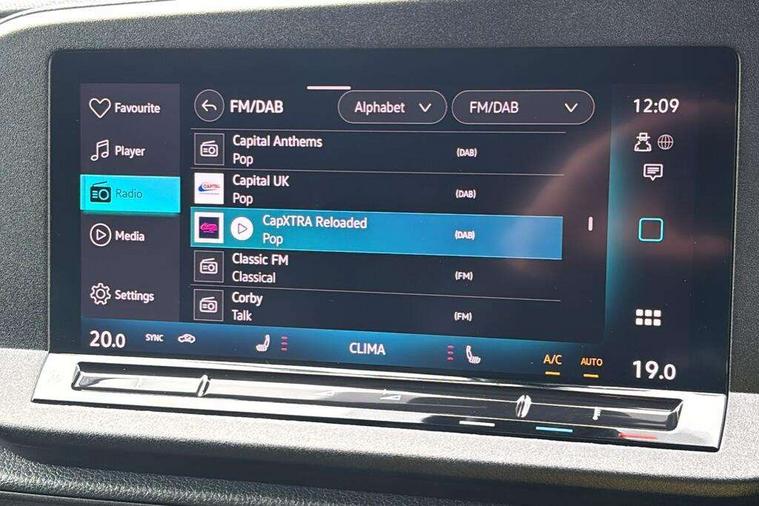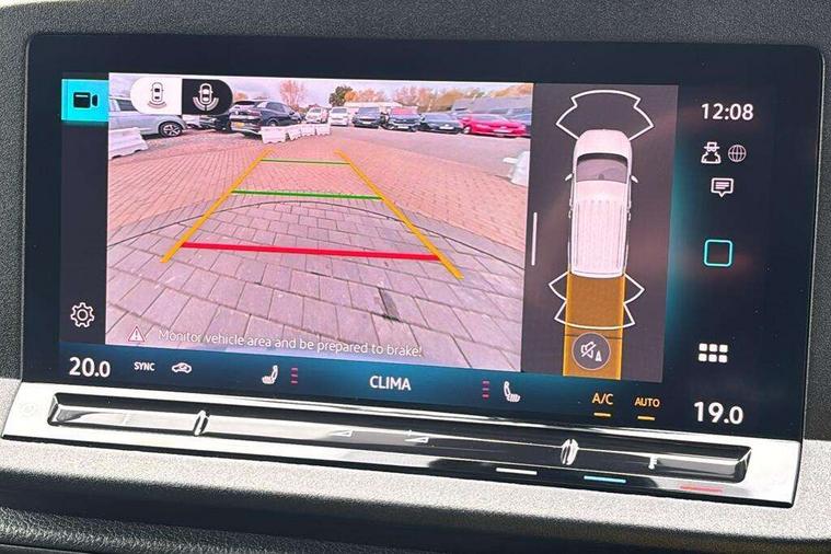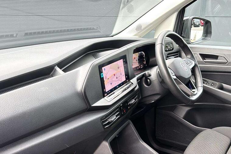 Bluetooth - Mobile phone interface, Car2X technology, Driver alert system, eCall emergency system, Intelligent Speed Assist, Lane assist, Seatbelt warning indicator, Service indicator, Start-stop system with regenerative braking, 2 USB interfaces type C in dashboard, App-Connect - Wireless for Apple CarPlay, DAB Radio, We Connect Plus Preparation, Automatic hazard light activation under emergency braking, Black painted exterior mirror housings, body-colored door handles and Silver sliding door rail, Body coloured bumpers, Electric front windows, LED rear combination lights, LED rear tail lights, Roof rail preparation, Windscreen wiper with variable intermittent delay and wash-wipe system, Dimming breakaway interior rear view mirror, Electronically controlled heating system, ergoComfort seats for driver, Interior light in headliner incorporting LED technology, Lockable glove compartment door with light, Manual heating and ventilation system, Manual height adjustment for front seats and seat cushion inclination and depth adjustment on drivers seat, Multi function leather steering wheel, Power-adjustable lumbar support for drivers seat, Reach and rake adjustable steering column, Six lashing points for securing loads, Steering wheel paddle shift, Storage compartments under driver and front passenger seats, Sun visors with mirror, airbag label on front passenger sun visor, Winter pack plus - Caddy, 3-point seat belts in front, with pretensioner and height adjustment, Driver and front passenger airbag with front passenger airbag deactivation, Tyre pressure monitoring system, Anti-theft alarm system, interior monitoring, backup horn, and towing protection, Electronic engine immobiliser, Remote central locking with deadlocks, interior locking, Anti locking braking system (ABS), Automatic post collision braking system, Brake assist, Diesel particulate filter, Electric parking brake with auto hold function, Electronic brake force distribution (EBD), Electronic differential lock (EDL), Electronic stabilisation programme (ESP), Engine drag torque control (MSR), Hill hold assist, Traction control system (TCS), Decorative beige birch vein inserts, Wheel bolts with anti-theft protection (unlockable),