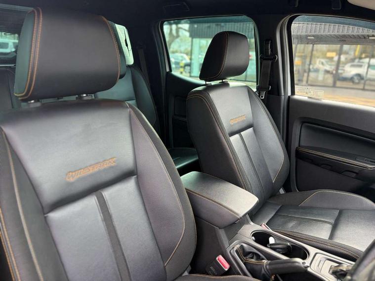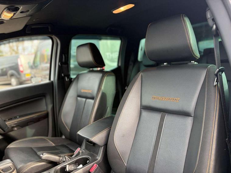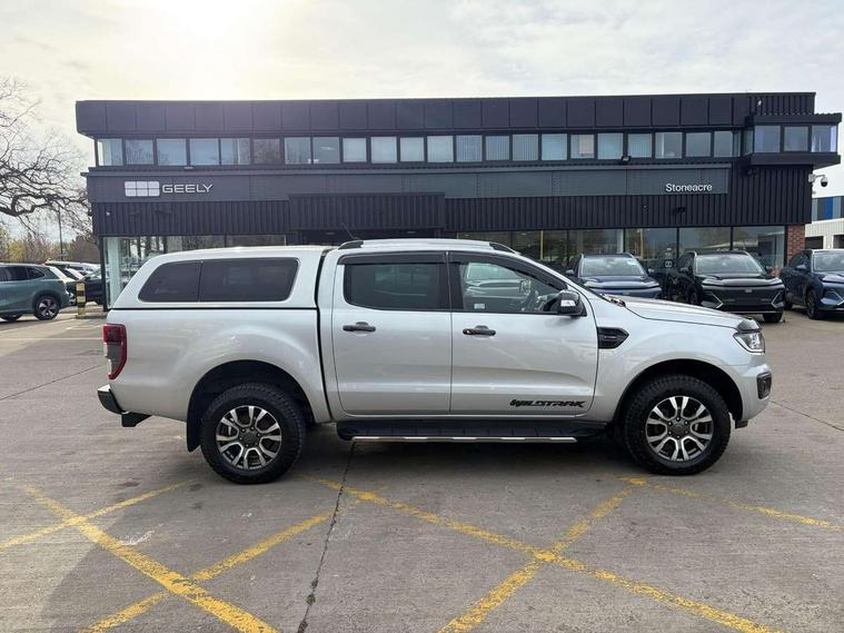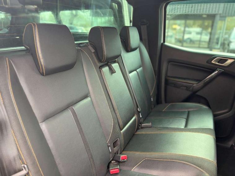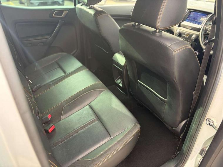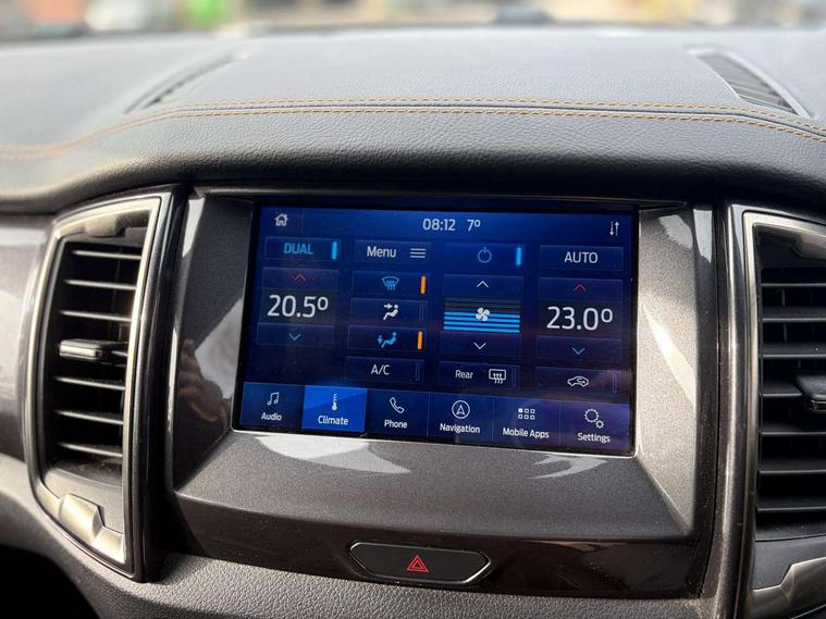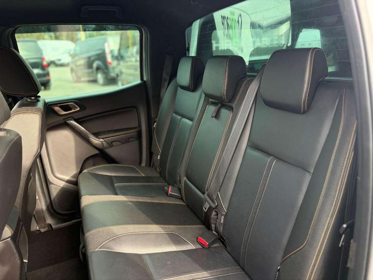 2 key fob, Collision mitigation braking system, Electric power assisted steering, Fixed rear view camera, Intelligent speed assistant, Lane keeping aid, Traffic sign recognition, Trip computer, Automatic headlights, Body coloured plastic front bumper, Boulder grey exterior door handle, Boulder grey exterior door mirror, Boulder grey radiator grille, Daytime running lights, Dual power heated fold back door mirror with puddle lamp and signal, Electrically operated windows with one shot driver's window, Electrochromic interior mirror, Front splash guard and mud flaps, Heated windshield and rear window, High mounted stop lamp with cargo area light, LED Front fog lamp, LED projector headlamps, Moulded in colour tailgate handle, Painted front fender grille, Privacy glass, Rain sensitive windshield wipers, Rear bumper chrome under-bar, Rear bumper step in boulder grey, Rear mudflaps, Roof rails, Side step with brushed inserts, Sports bar, Tailgate - Easy-lift/lower mechanism, Under hood engine cover, Underbody protection, Centre console coolbox, Chrome interior door handle, Driver seat back mounted map pocket, Dual control system - Electronic air temperature control (EATC), Ebony headliner, Heated front seat, Journey grain partial leather upholstery with Wildtrak logo, Leather gearknob, LED ambient interior lighting, Power adjustable 8 way driver seat, Premium front and rear floor mats with Wildtrak logo, Reach and rake adjustable steering column, Roof storage for driver sunglasses, Sport leather stitched steering wheel, Tie down rails and rope hooks, Wildtrak door trim panel insert, ICE feature pack 129 - Ranger, 3 point inertia rear seatbelts, Driver and front passenger airbag, side airbag, curtain airbag and driver knee airbag, ISOFIX child safety seat attachment, Seatbelt reminders for driver and front passenger, Tyre pressure sensors, Double locking power door lock with flip key, Immobiliser, Locking wheel nuts, Passive anti theft system, Passive keyless entry and start system, Power tailgate lock, Spare wheel lock, Thatcham category 1 alarm security system, ABS, ESP and roll over mitigation, Emergency brake assist, Engine start/stop system, Locking rear axle, Power converter,