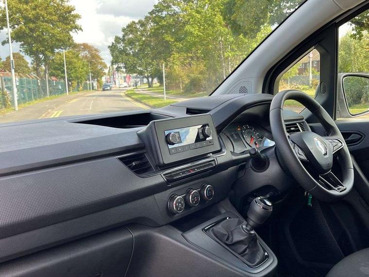 3.5" monochrome TFT driver information display, E-call, Power assisted steering, Automatic headlights and rain sensitive front wipers, Driver side one touch descending electric front windows, Electrically adjustable + heated door mirrors, Full halogen headlights and daytime running lights, Roof bar fixings, 10 anchorage points in load area, 12V power socket in front, 2 additional anchorage points in load area, Closed glovebox, Height adjustable drivers seat, Kangoo cloth upholstery, Driver and passenger seatbelt reminder, Driver's airbag, 3 button folding key with selective opening and superlocking feature, Deadlocking, ESC + Hill start assist, Increased payload,