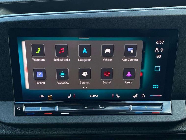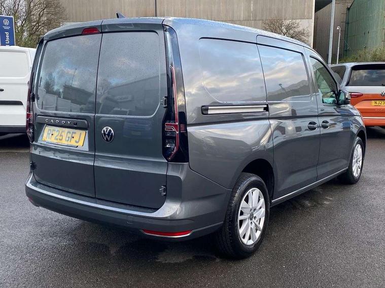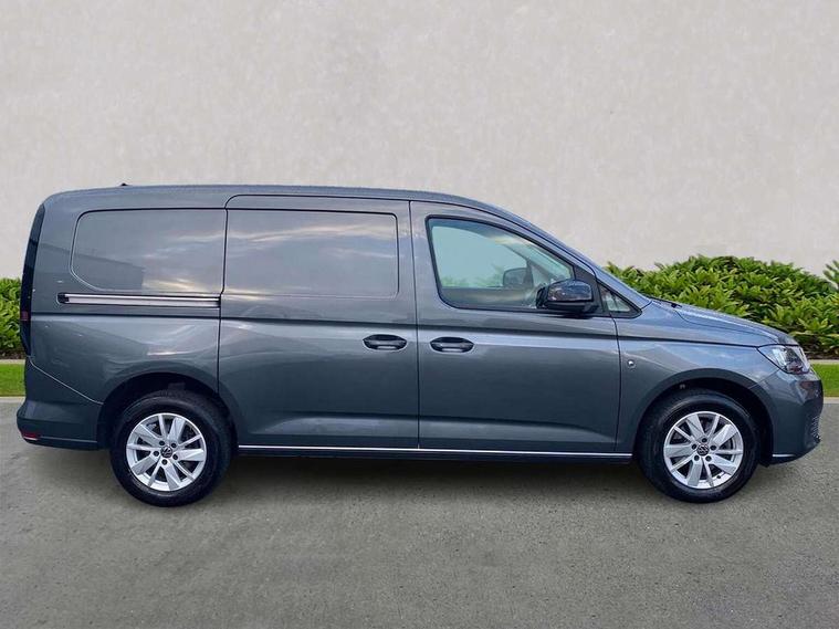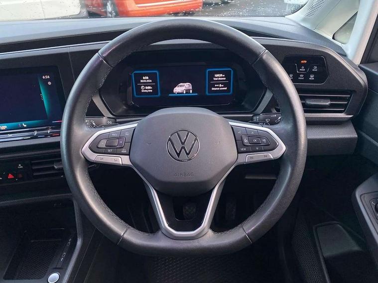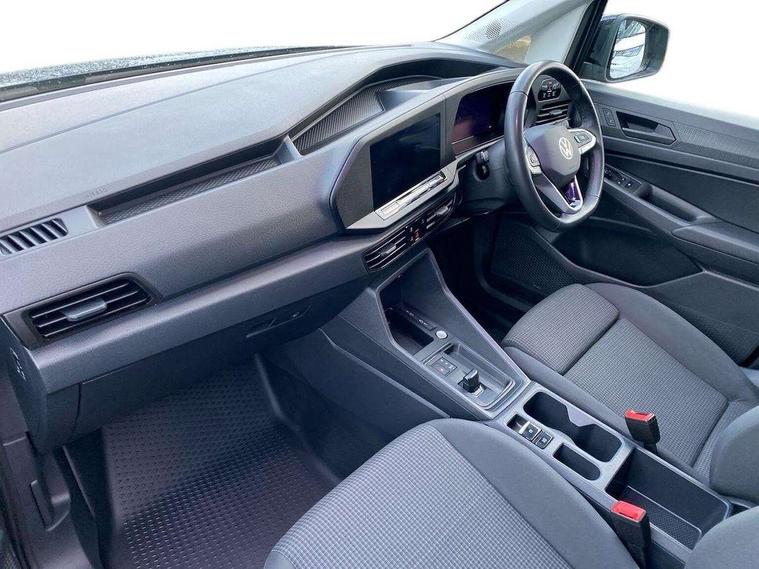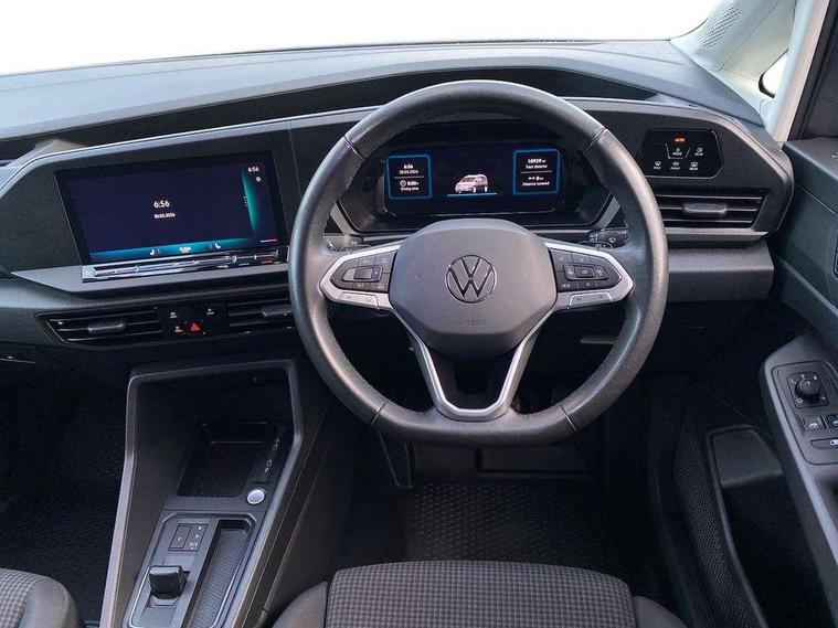 Bluetooth - Mobile phone interface, Car2X technology, Driver alert system, eCall emergency system, Intelligent Speed Assist, Lane assist, Seatbelt warning indicator, Service indicator, Start-stop system with regenerative braking, 2 USB interfaces type C in dashboard, App-Connect - Wireless for Apple CarPlay, DAB Radio, We Connect Plus Preparation, Automatic hazard light activation under emergency braking, Black painted exterior mirror housings, body-colored door handles and Silver sliding door rail, Body coloured bumpers, Electric front windows, LED rear combination lights, LED rear tail lights, Roof rail preparation, Windscreen wiper with variable intermittent delay and wash-wipe system, Dimming breakaway interior rear view mirror, Electronically controlled heating system, ergoComfort seats for driver, Interior light in headliner incorporting LED technology, Lockable glove compartment door with light, Manual heating and ventilation system, Manual height adjustment for front seats and seat cushion inclination and depth adjustment on drivers seat, Multi function leather steering wheel, Power-adjustable lumbar support for drivers seat, Reach and rake adjustable steering column, Six lashing points for securing loads, Steering wheel paddle shift, Storage compartments under driver and front passenger seats, Sun visors with mirror, airbag label on front passenger sun visor, Winter pack plus - Caddy, 3-point seat belts in front, with pretensioner and height adjustment, Driver and front passenger airbag with front passenger airbag deactivation, Tyre pressure monitoring system, Anti-theft alarm system, interior monitoring, backup horn, and towing protection, Electronic engine immobiliser, Remote central locking with deadlocks, interior locking, Anti locking braking system (ABS), Automatic post collision braking system, Brake assist, Diesel particulate filter, Electric parking brake with auto hold function, Electronic brake force distribution (EBD), Electronic differential lock (EDL), Electronic stabilisation programme (ESP), Engine drag torque control (MSR), Hill hold assist, Traction control system (TCS), Decorative beige birch vein inserts, Wheel bolts with anti-theft protection (unlockable),