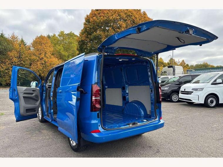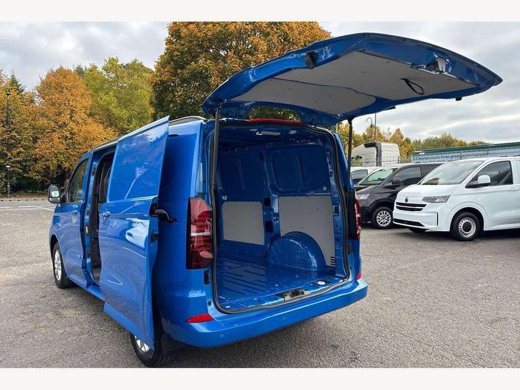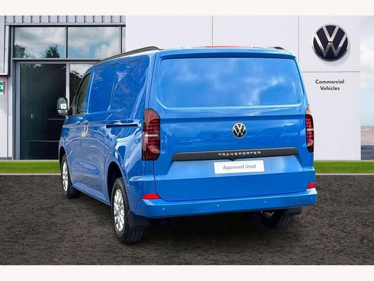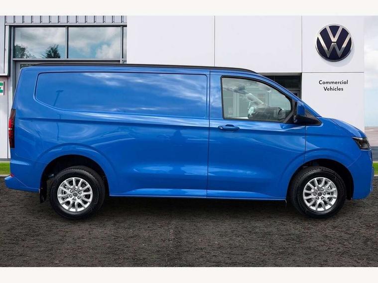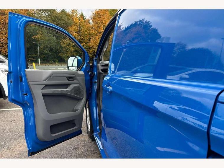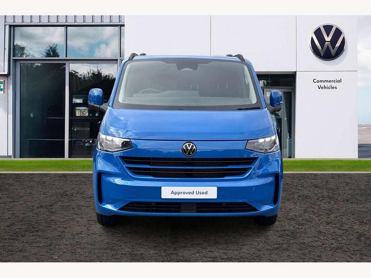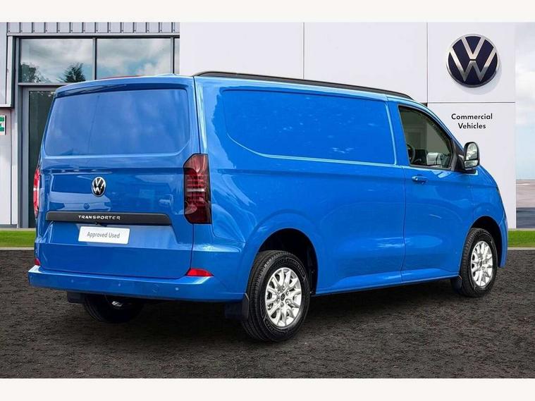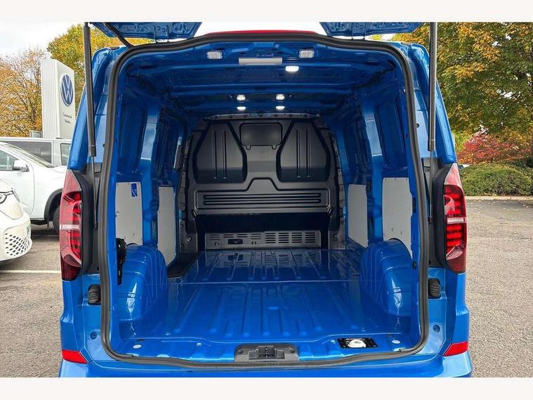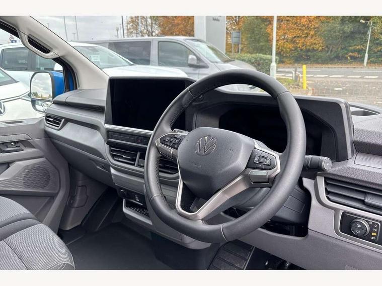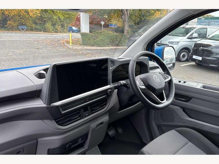 12" digital drivers display, 13" touchscreen infotainment display with wireless app connect and DAB radio, 5G Modem, Adaptive cruise control, Apple CarPlay and Android Auto, Dynamic road sign display, eCall emergency system, Electromechanical speed sensitive power steering, height and longitudinally adjustable steering column, Lane and blind spot assist with exit warning system, Preparation of VW connect and connect plus, Traffic jam assist, Wireless mobile phone charging, Wrong way driver warning, Body colour bumpers, Body coloured door handles, Body coloured door mirrors, Body coloured radiator grille, Electrically heated, adjustable and folding door mirrors, Heat reflecting side window glass, Mud flaps front and rear, Rear Transporter nameplate in black grained decorative trim, Vehicle opening configuration 1x 1st row of seats, 2x all doors, 12V outlet in centre console and 12V outlet on rear right D-pillar, 2x 15-W USB data/charging ports in dashboard and 1x USB-C, 1x USB-A center bottom, 2x LED lights in load compartment, 3x additional super bright LED lights in load compartment, 4 way height and tilt adjustable head restraints, 5 additional USB-C charging ports, Black plastic scuff plate for sliding door in cargo without illumination, Cabin interior lighting, Gear selector lever on steering wheel, Glasses compartment in driver side roof, Grab handle on A-pillar passenger side, Illuminated lockable glovebox, Lashing rings for reinforced floor covering, Narrow centre console with cup holder and compartment for mobile phone, Overhead storage compartment, Rubber floor covering in cab, Striped fabric upholstery, Without passenger seats in load compartment, Driver and front passenger airbag with front passenger airbag deactivation, Dual tone horn, Front and curtain airbags for driver and front passenger, Seat belt pretensioner for driver seat, Anti theft alarm system with interior monitoring in cab, backup horn and towing protection, Electronic immobiliser, Lockable wheel bolts, Preparation for alcohol ignition interlock, 5+ Promise, Alternator - 230A, Electromechanical brake booster, Electronic stability control, ABS, ASR with deactivation button, hill start assist and brake assist system,