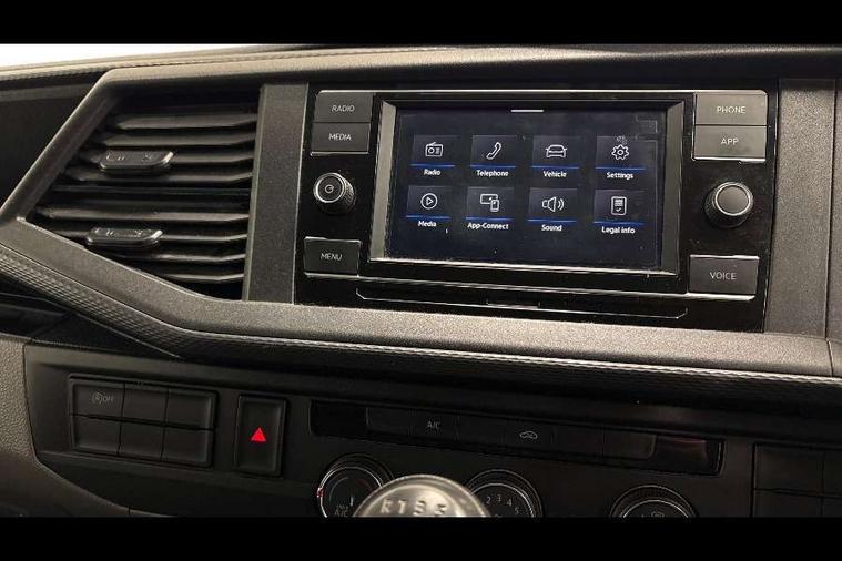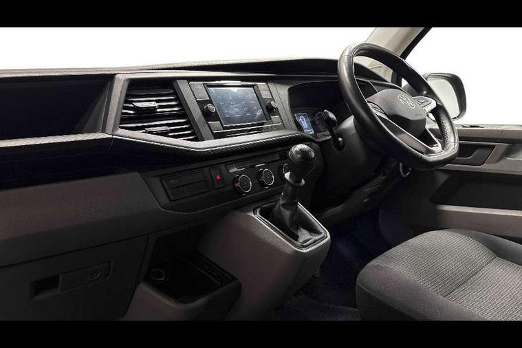 Cross wind assist, Dimmable illuminated instruments, Driver alert with Multi-function display plus, eCall emergency system, Forward collision warning front assist with autonomous emergency braking, Mobile phone interface, Multi function display plus with black and white display, 2 USB interfaces type C in dashboard, 4 speakers with 2 tweeters and 2 woofers, Composition colour radio with 6.5" touchscreen, Digital radio reception (DAB+), Volkswagen app connect, 4 stages windshield wiper intermittent control for windshield wipers, Closing rear wing door with unlatching from the inside, H7 twin halogen headlamps, Heat insulating glass (green) in cab and passenger/load compartment, Heat insulating windshield made of laminated glass, Left convex exterior mirror, Rear wing doors without window apertures, Right convex exterior mirror, Separate Daytime running lights, Transporter nameplate on the rear fender, Unpainted radiator grille with 2 chrome trims, 3 spoke leather wrapped multi function steering wheel, Comfort headliner in cab, hardboard roof trim in passenger and load compartment, Dust/pollen filter, Folding grab handles on roof frame, Front and rear left without window closed side panel in load compartment, Front seats on the right in 1st row of seat, Glove compartment without illumination, Heavy duty tool kit and jack, High partition, Interior plastic loading edge protection, LED Interior lighting in load and passenger compartment, Manual adjustable lumbar support for right single seat in 1st row seats, Standard lower part dashboard in palladium, Without breakaway interior rear view mirror, Without refrigerant, Without right side window apertures in passenger and load compartment, Non smoker pack - Transporter, 3 point height adjustable seat belts on outer seats cab with electric pretensioners, Driver and front passenger airbag with front passenger airbag deactivation, Warning buzzer and light for driver and front passenger seat belt not fastened, Without child safety lock in passenger compartment, Electronic immobiliser, Wheel bolts without wheel locks, 16" chassis with 16" brake system, Diesel particulate filter, Electronic stability control, ABS, ASR with deactivation button, hill start assist and brake assist system, Standard anti drum measures, Start/stop system with regenerative breaking,